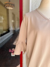 ハリがある糸を使用しているので、ベルスリーブのフォルムが崩れず