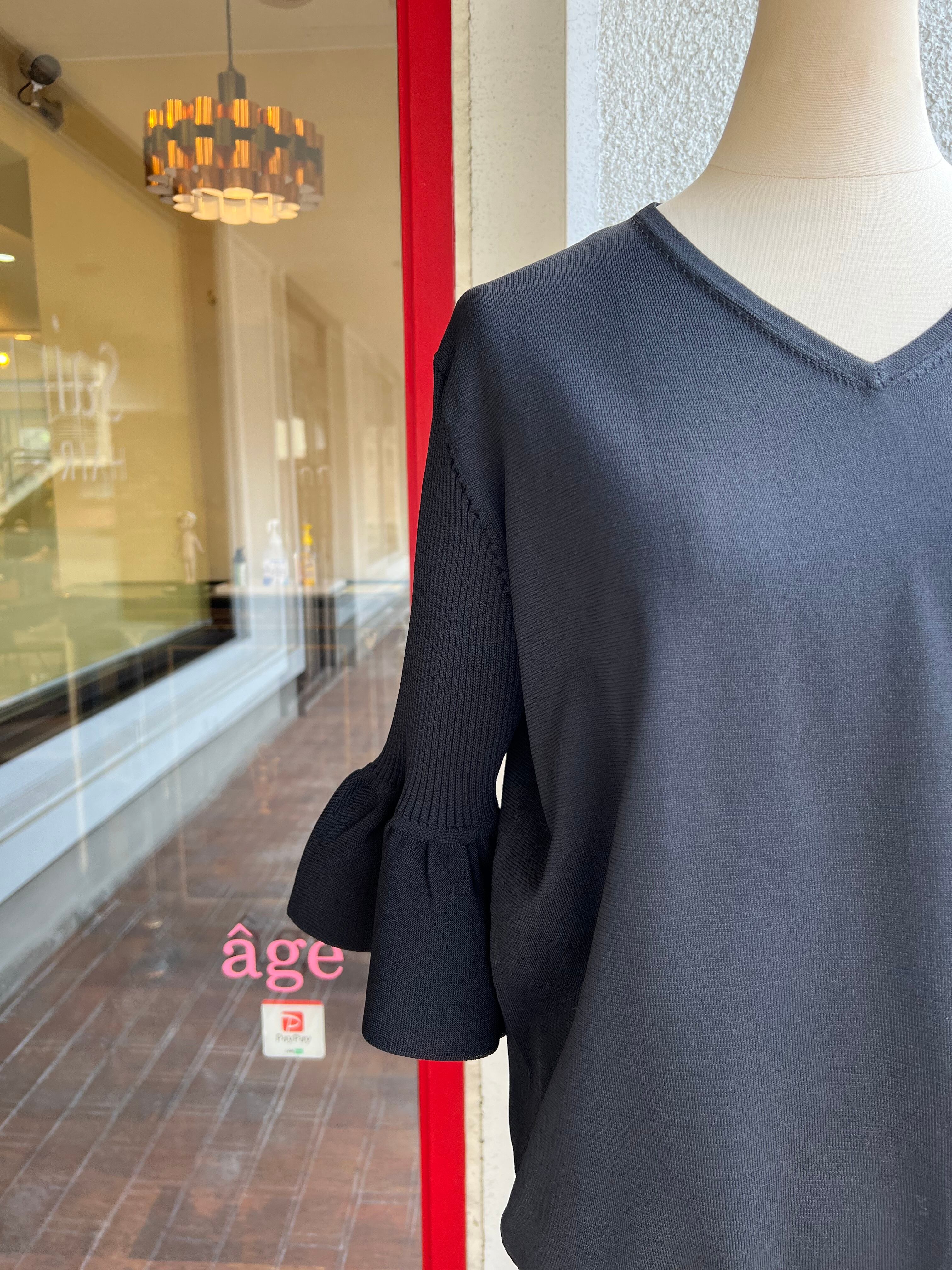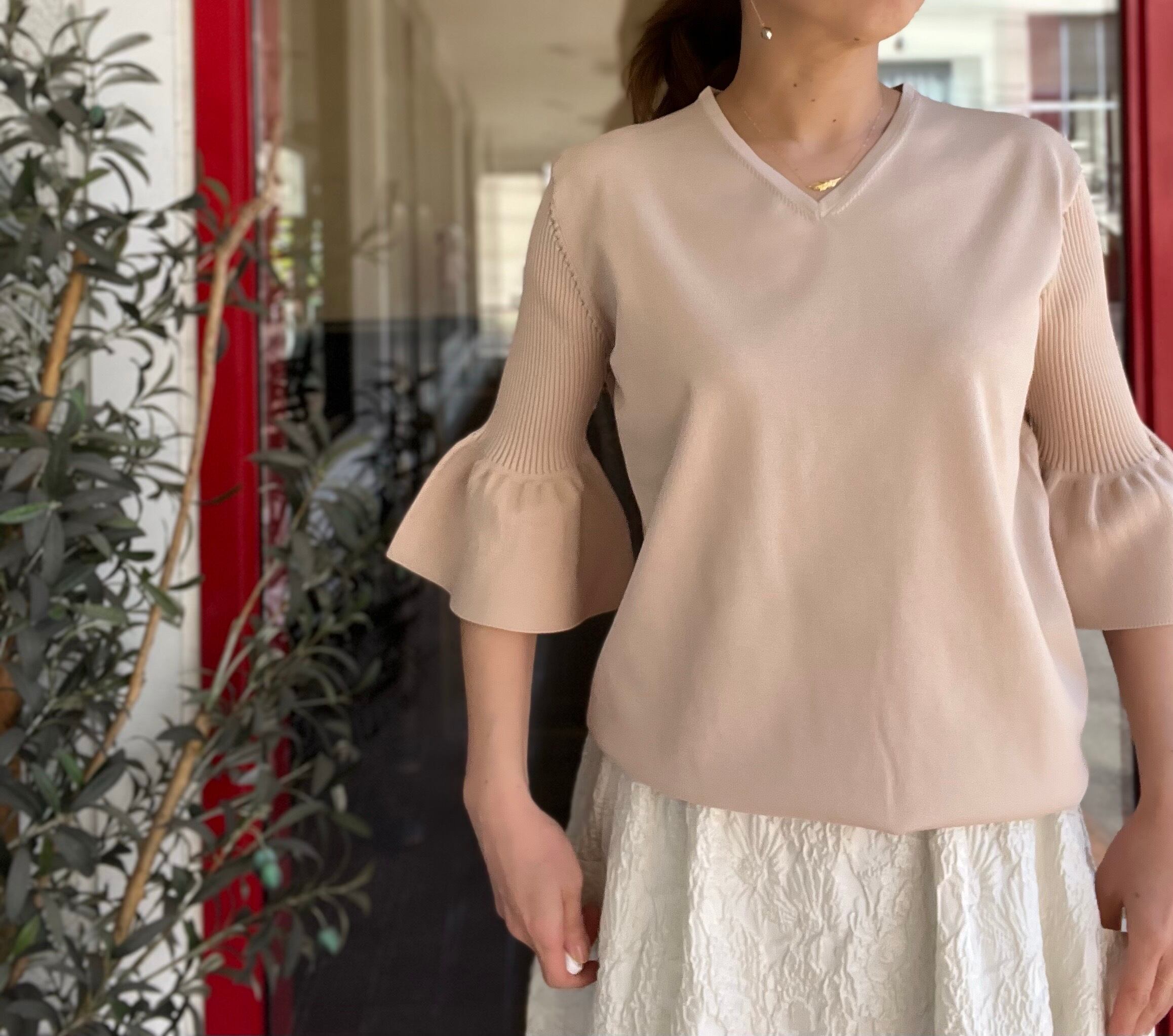 一枚で着映えするベルスリーブのVネックプルオーバー