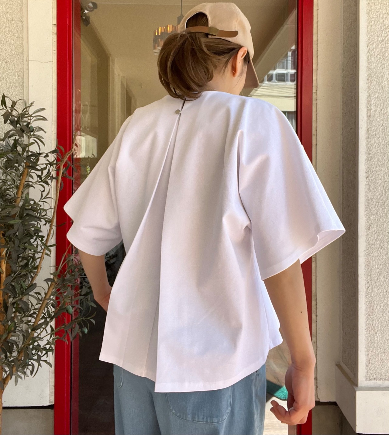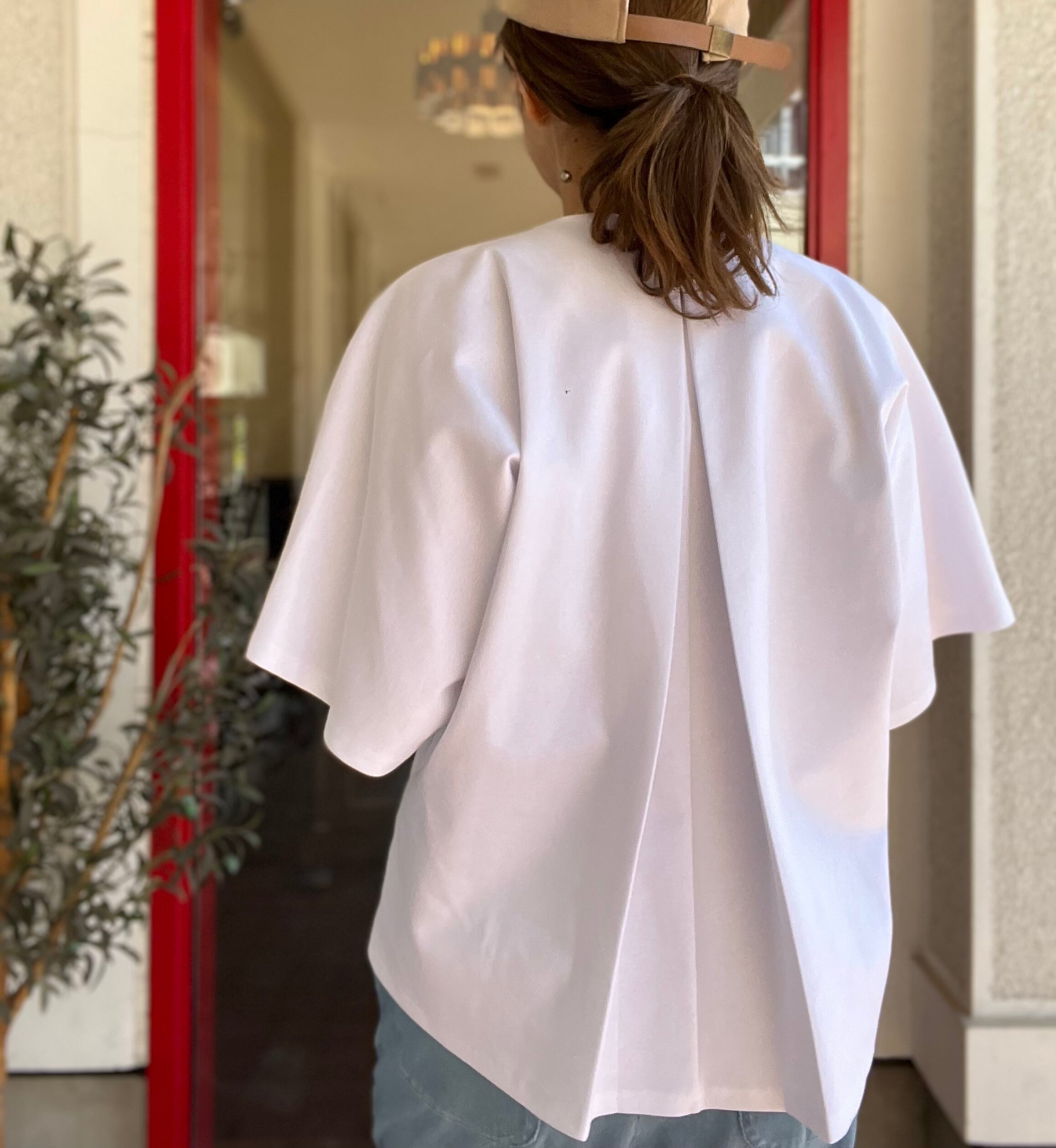 後ろタックのふんわりシルエットは、身体のラインを拾わず