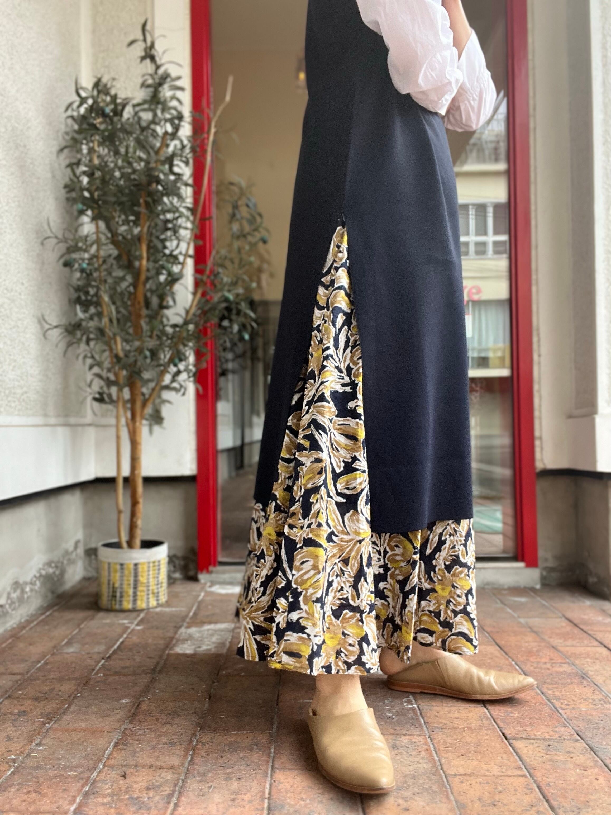 サイドスリットが深く入り、ワイドパンツやロングスカートと合わせて頂けます