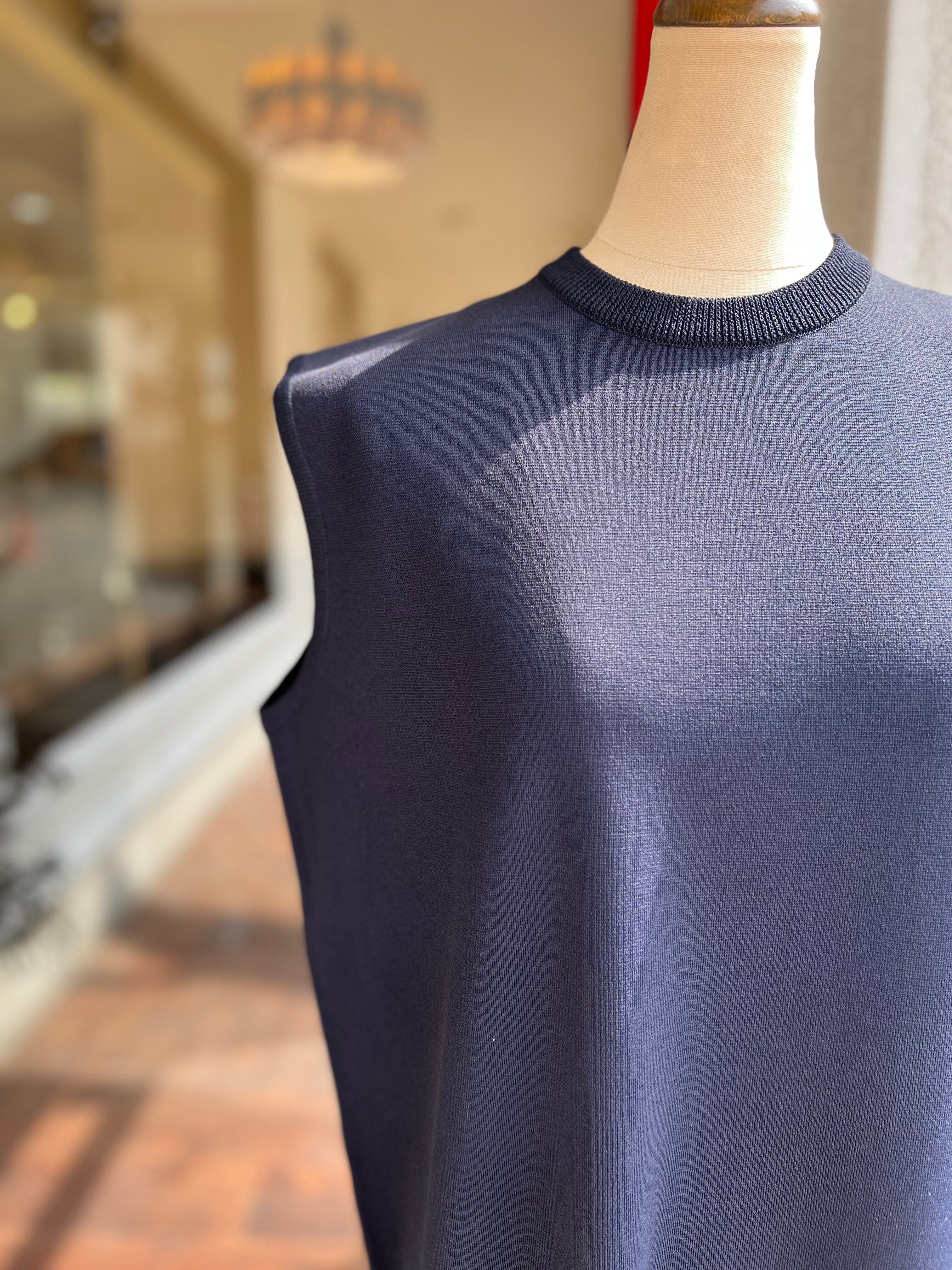 網目のキレイなストレッチ感のあるロング丈のニットジレ