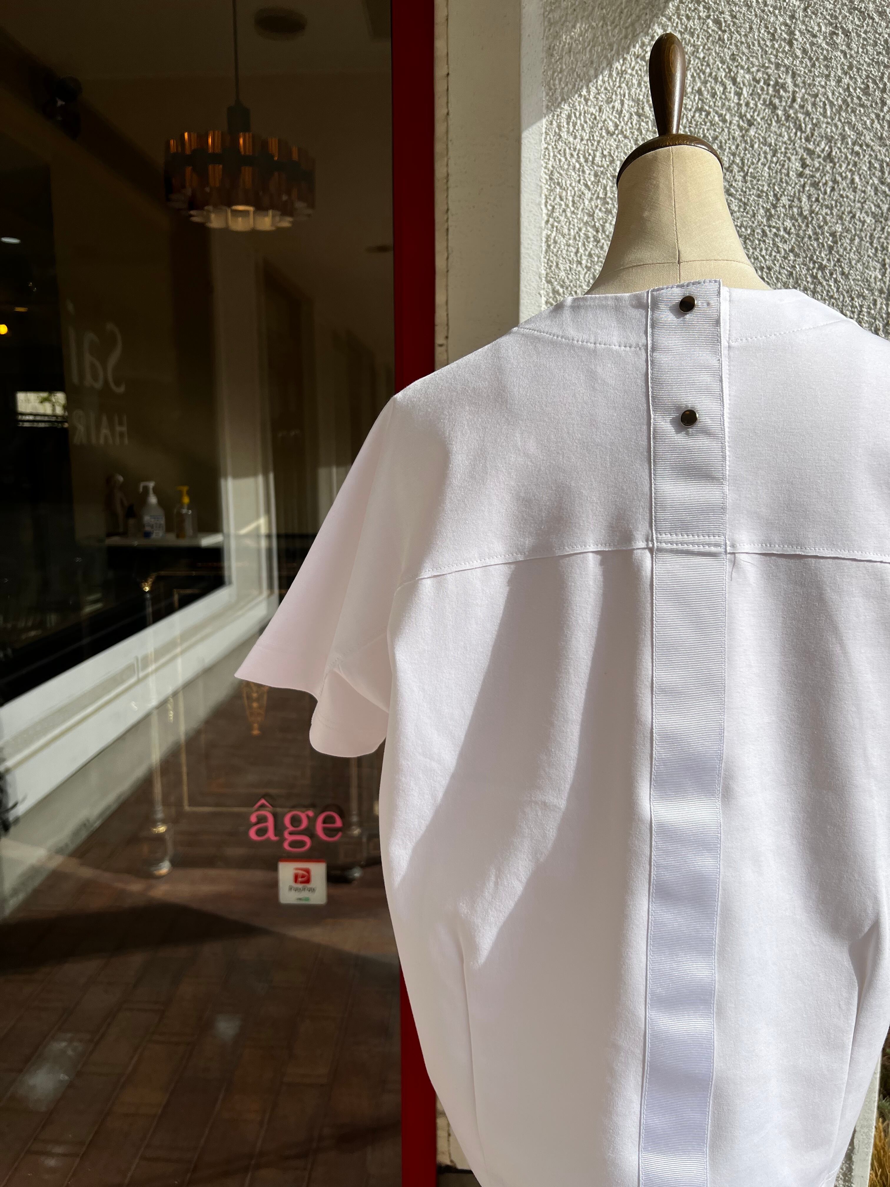 後ろのグログランテープが目を惹く綺麗めなTシャツ