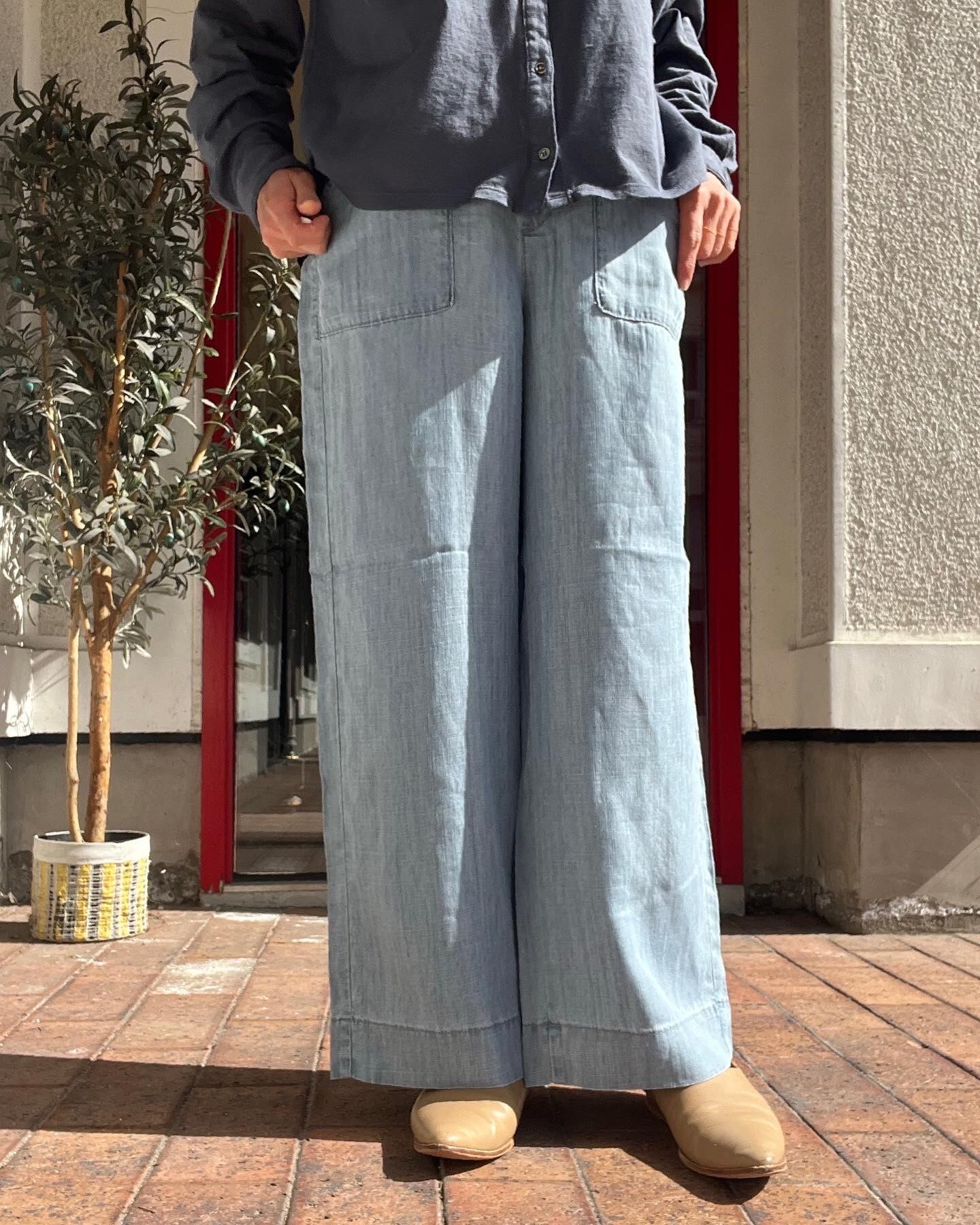 しなやかなドレープと、麻の持つ清涼感が魅力のデニムワイドパンツ
