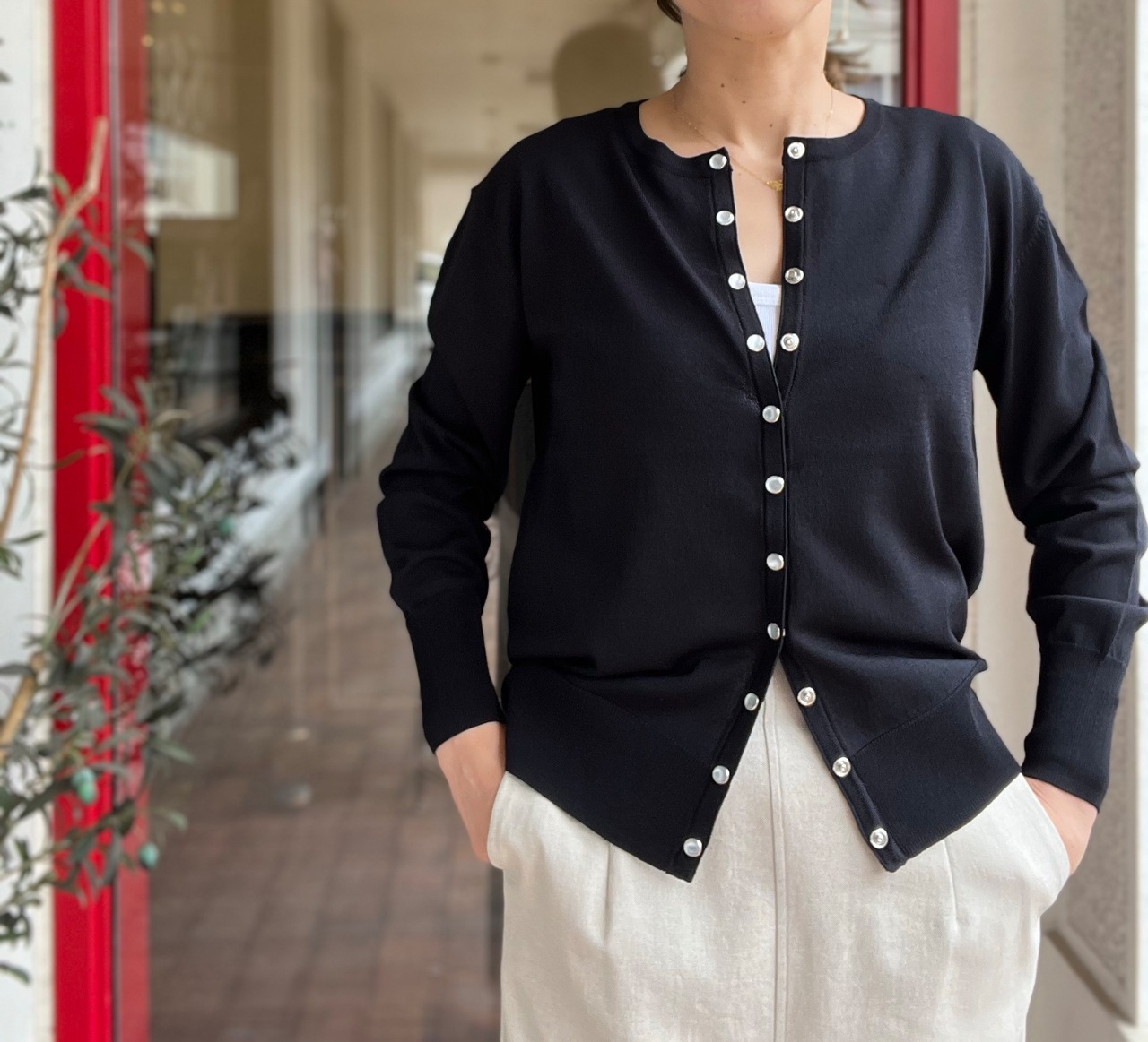 シアー感のあるカーディガンは