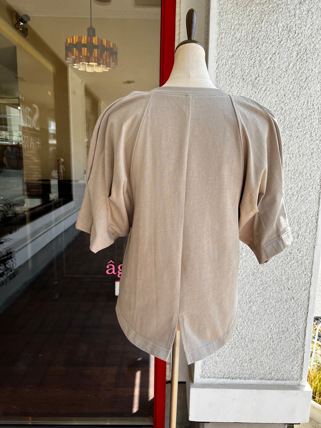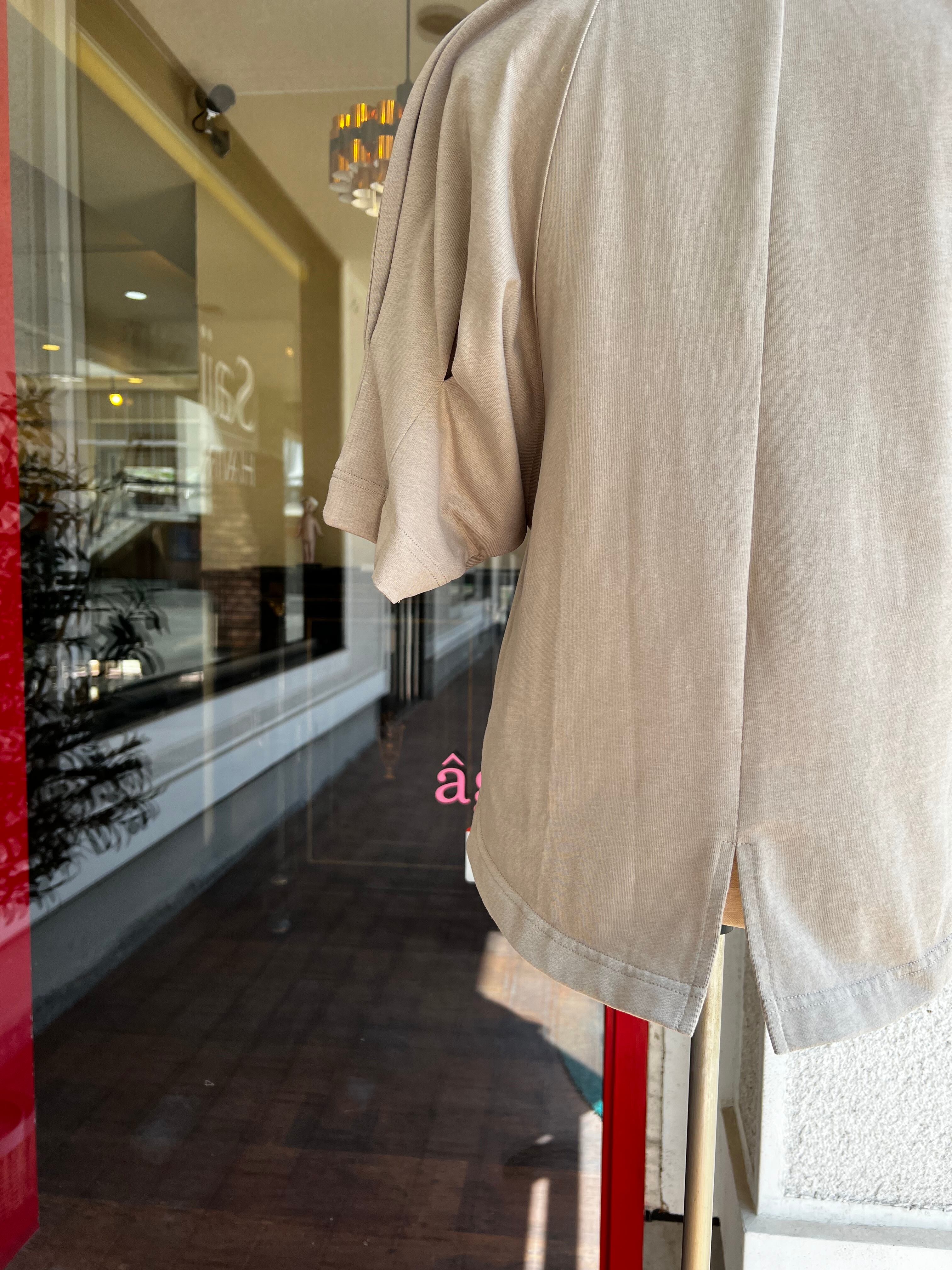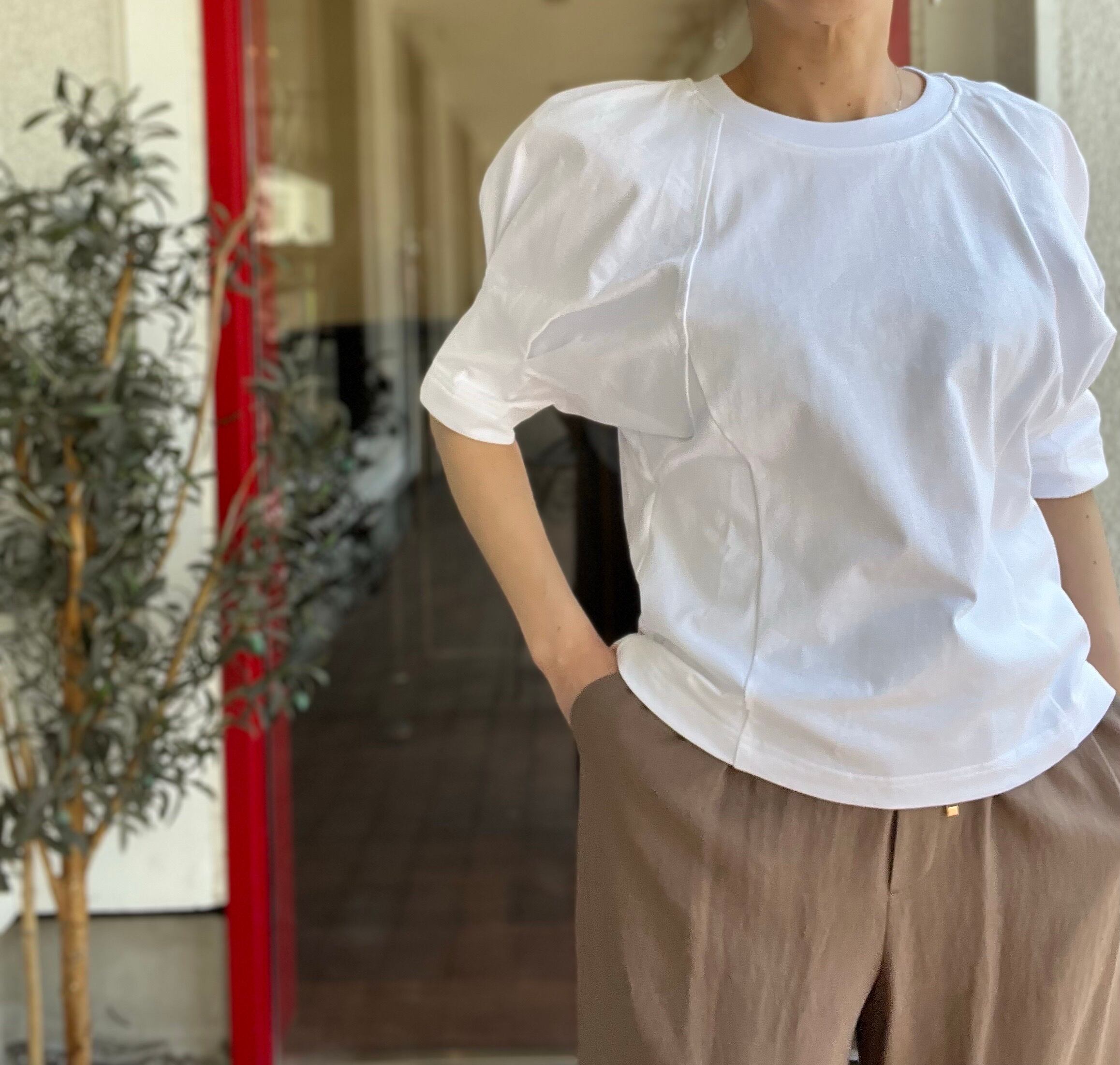 やや厚手の生地は透け感がなく、コットン100%なのでカジュアルな雰囲気でデイリーにTシャツ感覚で着て頂けながら着映えするデザイン