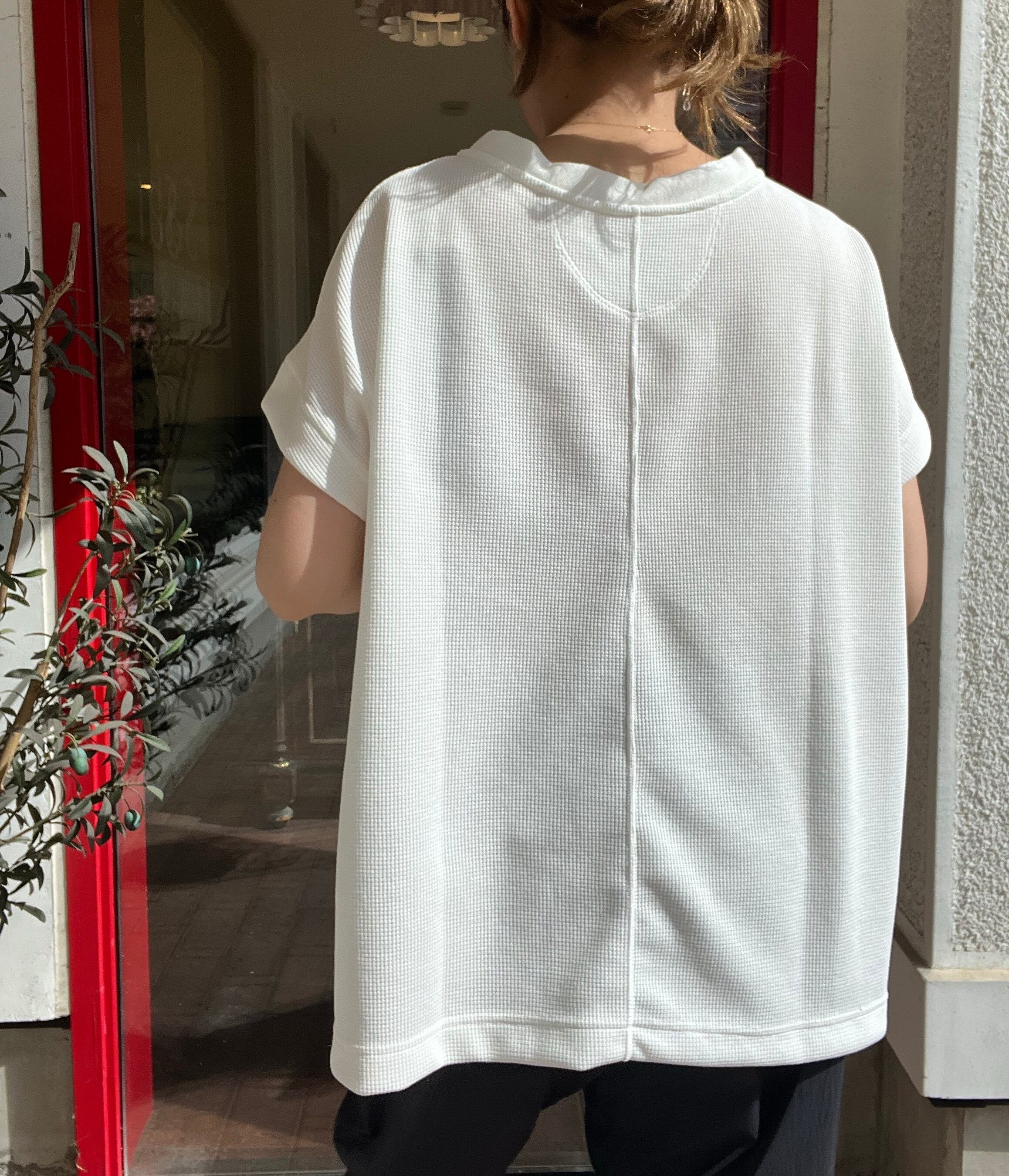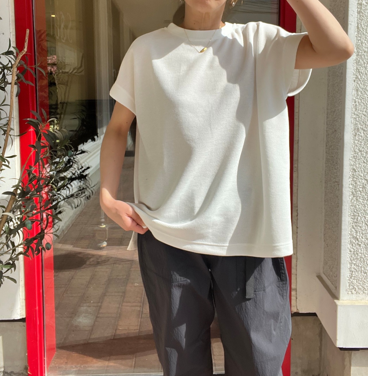 高い吸湿速乾性とUVカットを兼ね備え、汗染みも即座に乾き、大量の汗をかいても目立たないワッフル組織なので、盛夏でも安心して着て頂けます