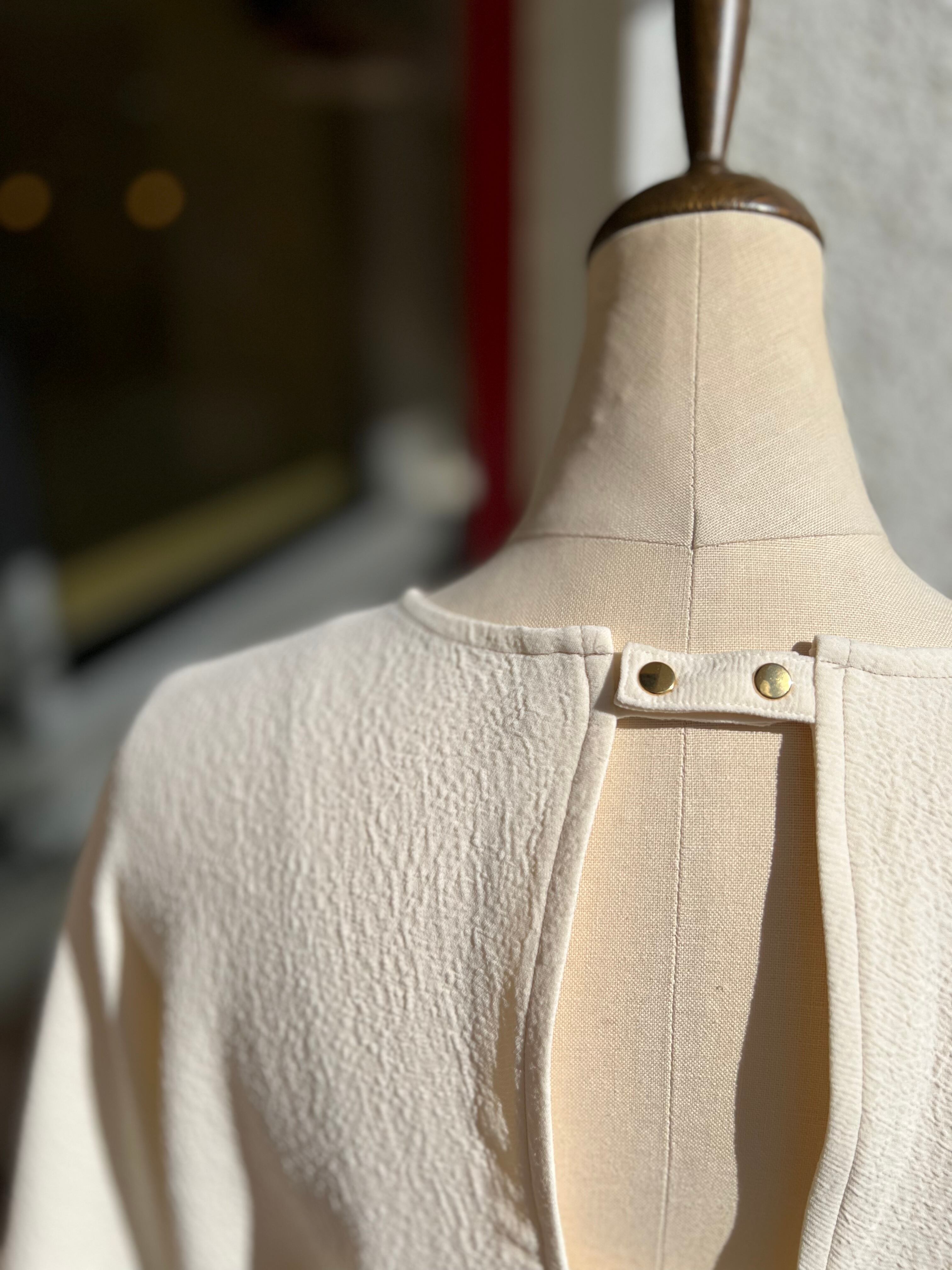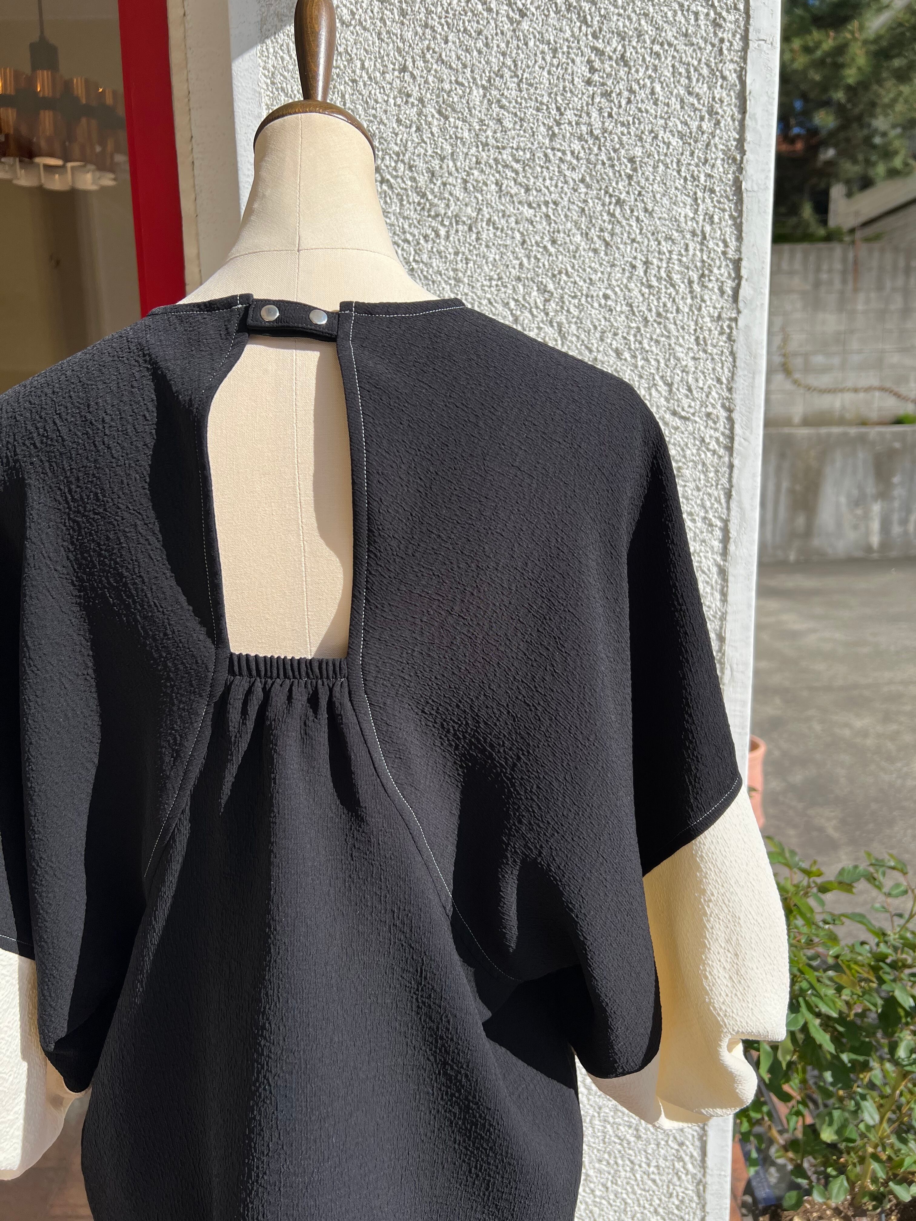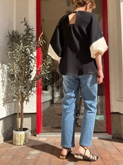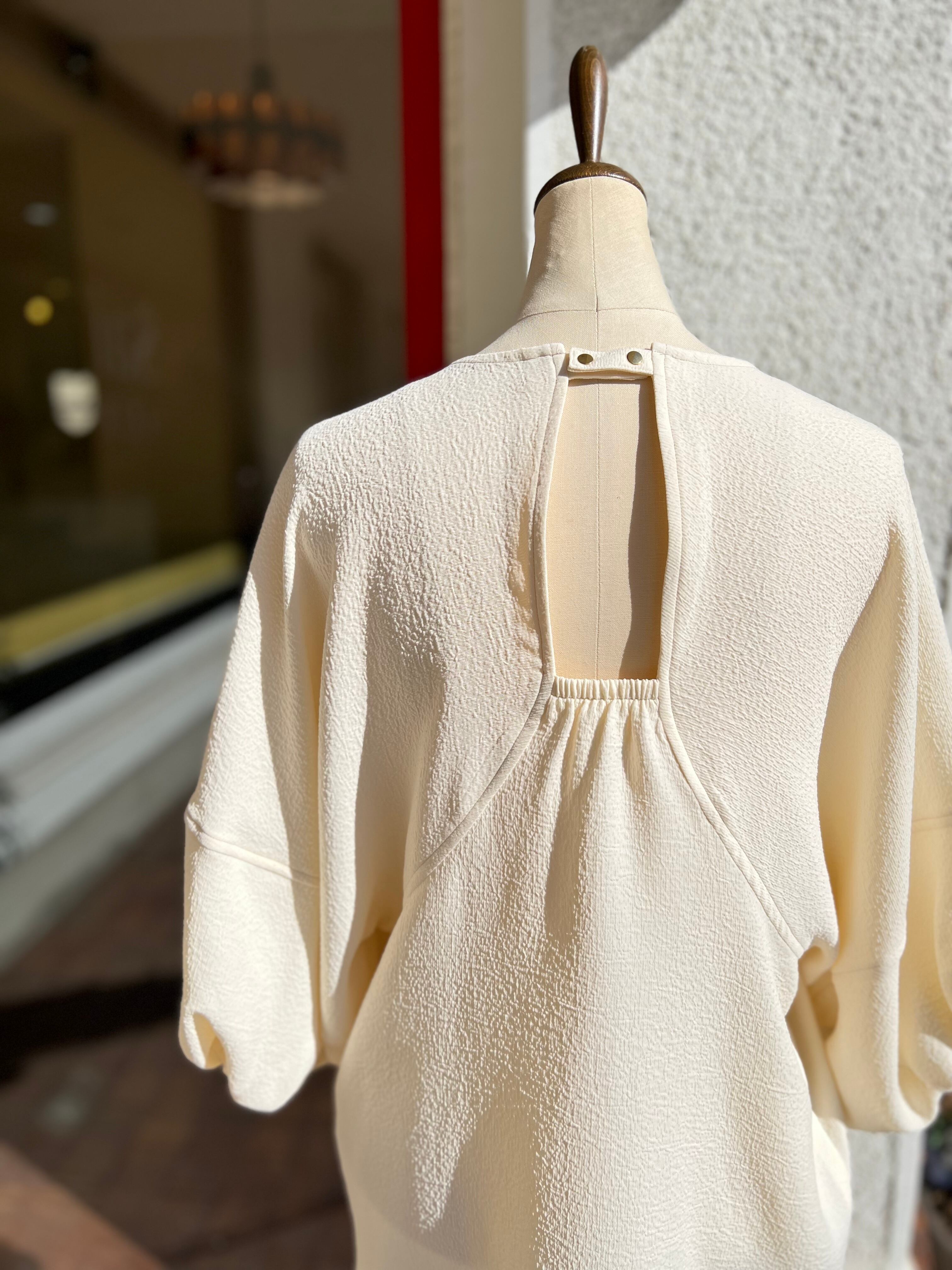 バックコンシャスなデザインが目を引くブラウス
