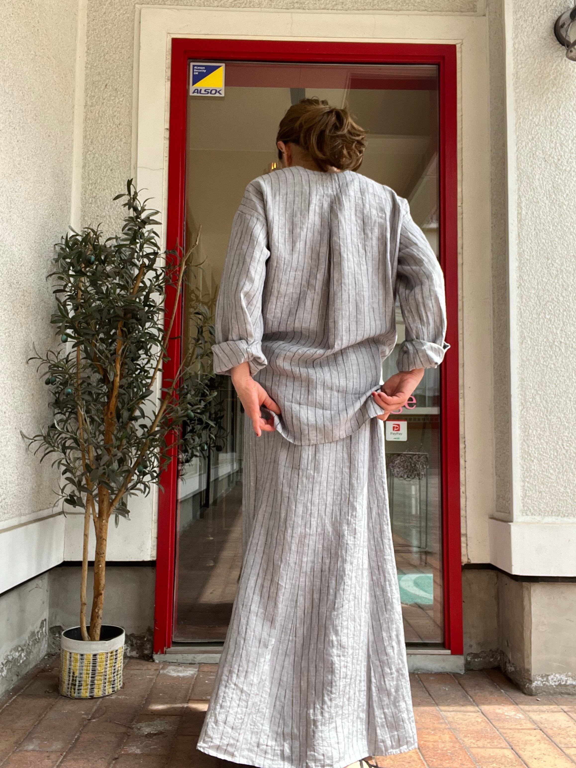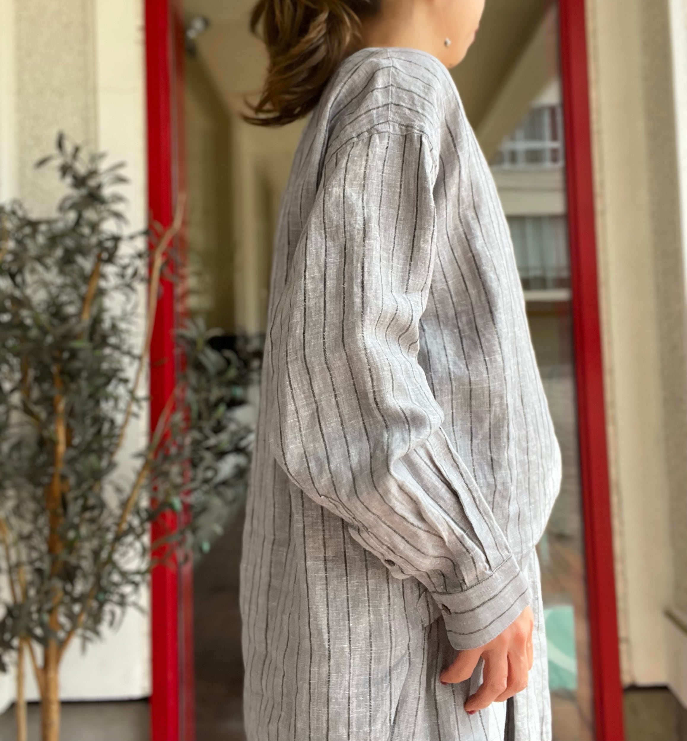 しっかりと厚みのある100%リネンタフタは光沢感も高く、透け感も少ない贅沢仕様