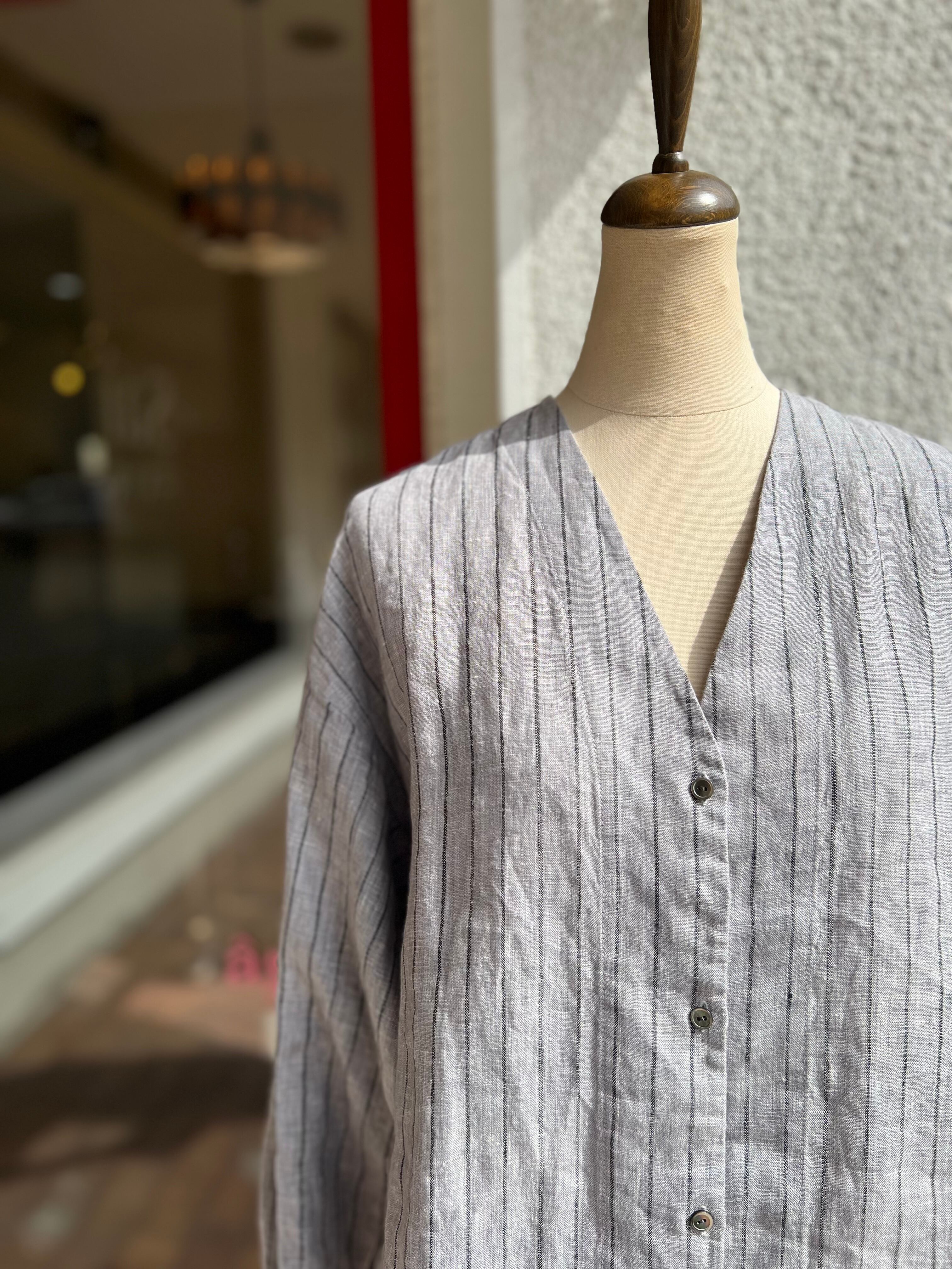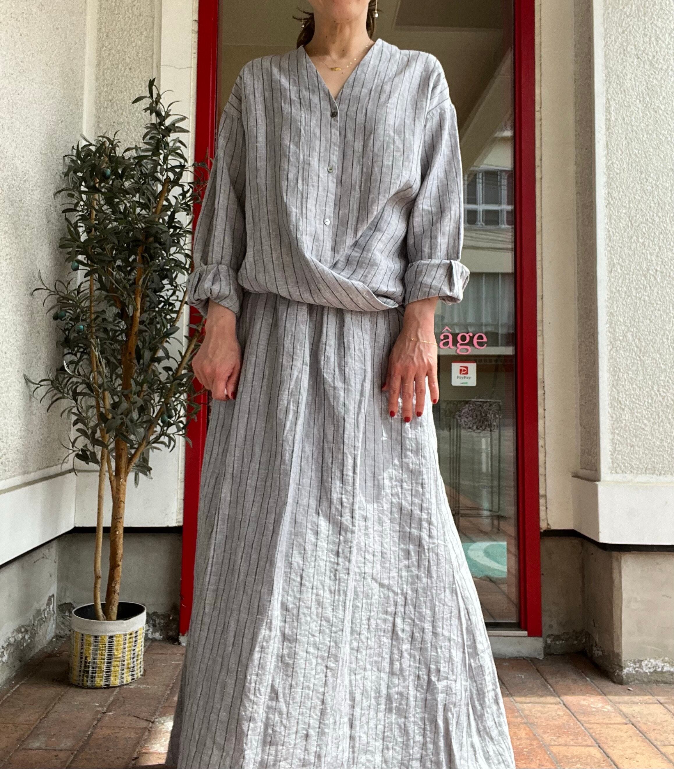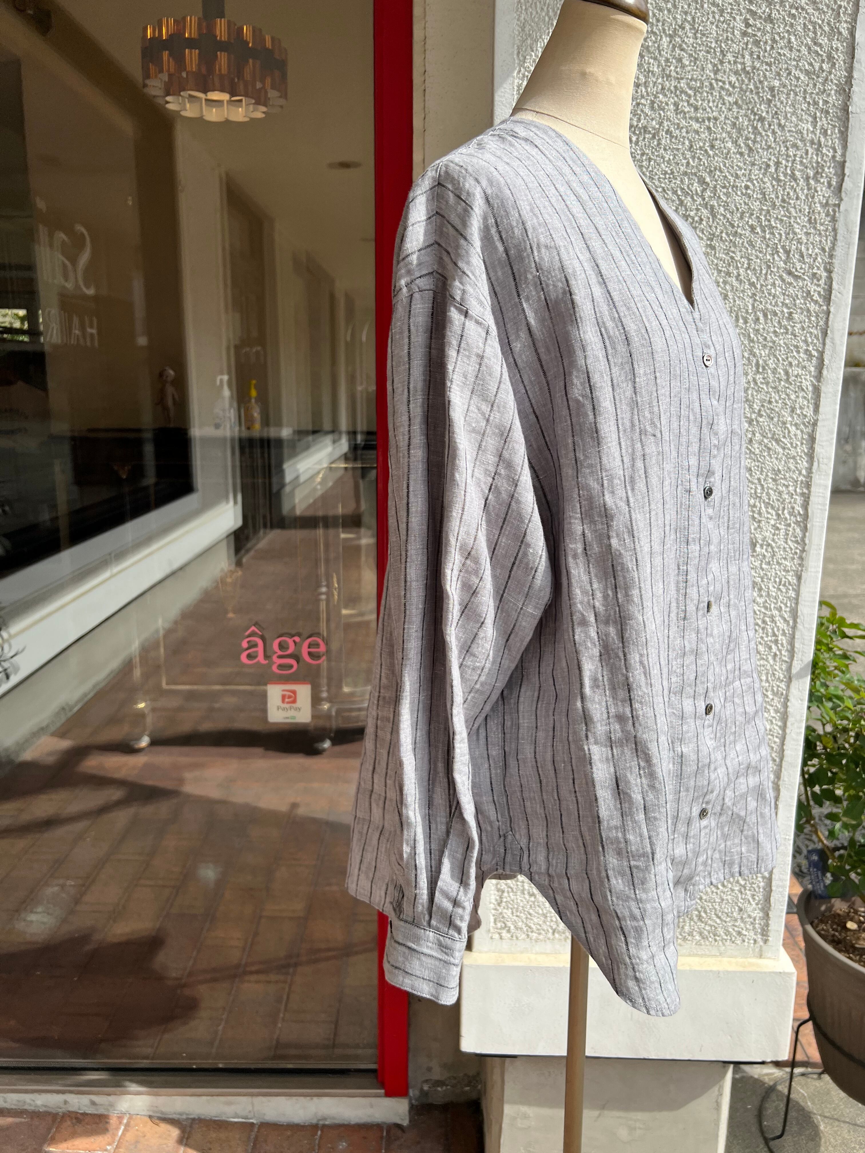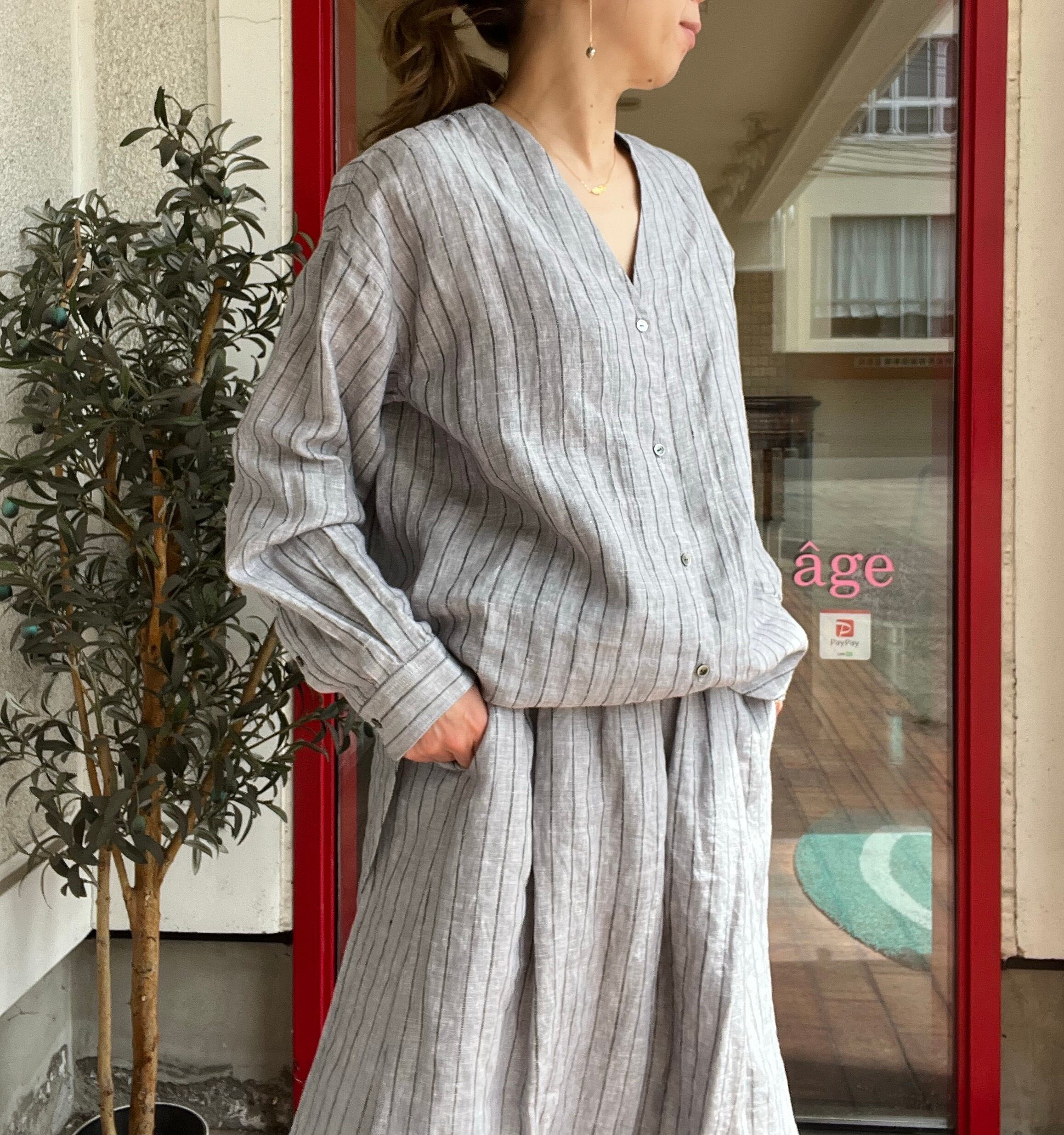 夏でもシャツを楽しみたい方に向け、出来るだけ涼しげに見えるVネックを採用しているのもポイントです