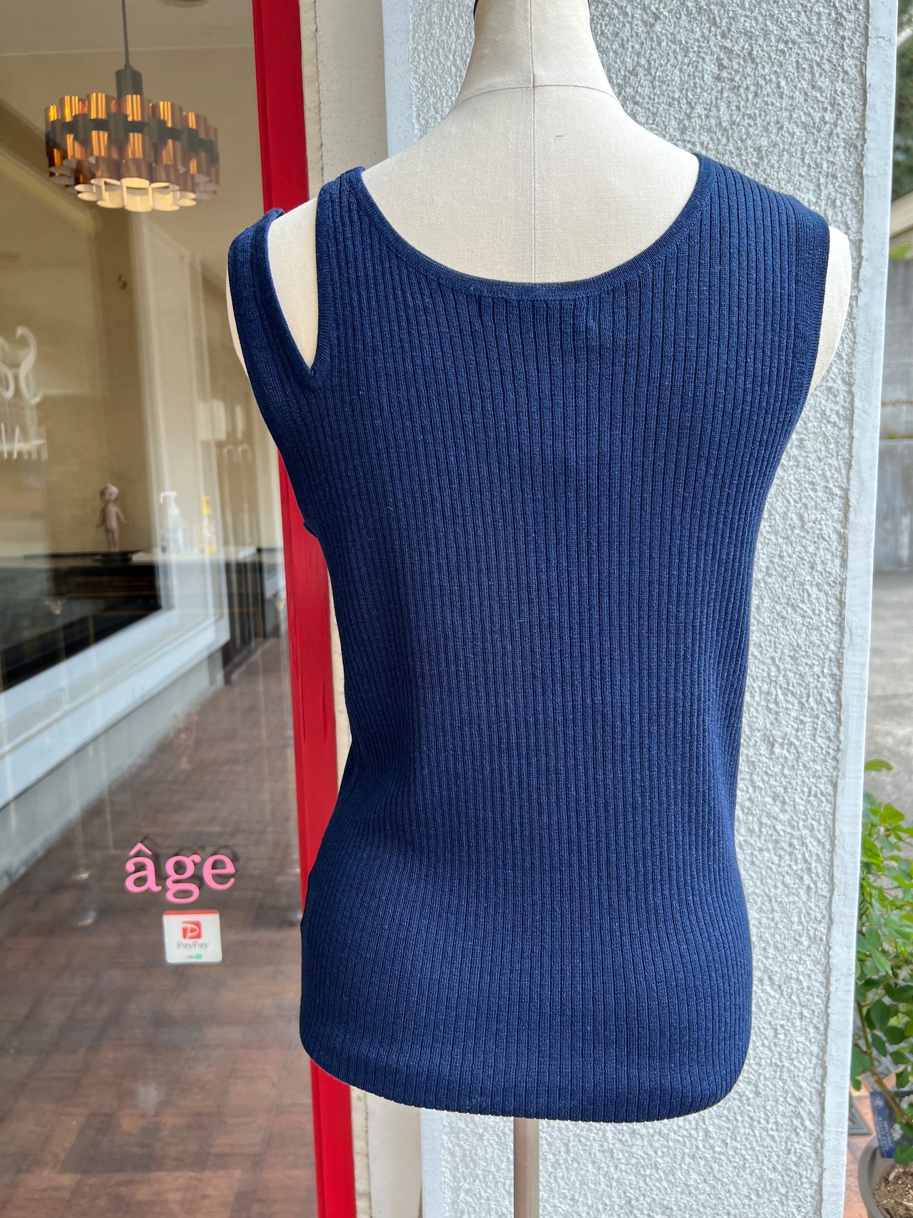 シャリ感の高いビスコースに安定性の高いポリエステル糸と、天然見えに欠かせないリネンをミックした糸をリブ編みにして仕様しているので、盛夏でも肌離れの良いドライ感の高いタッチと型崩れにも強さを発揮します