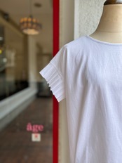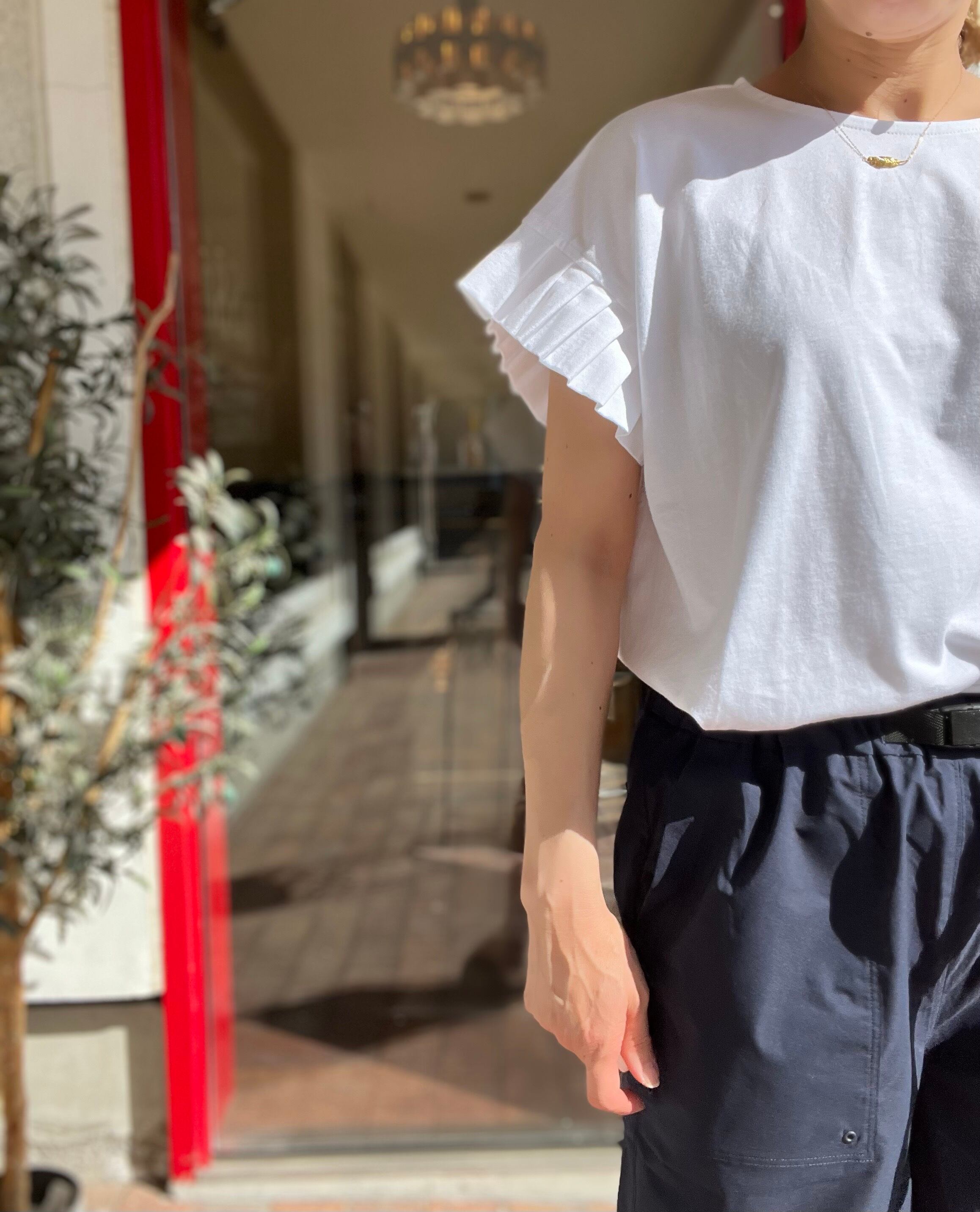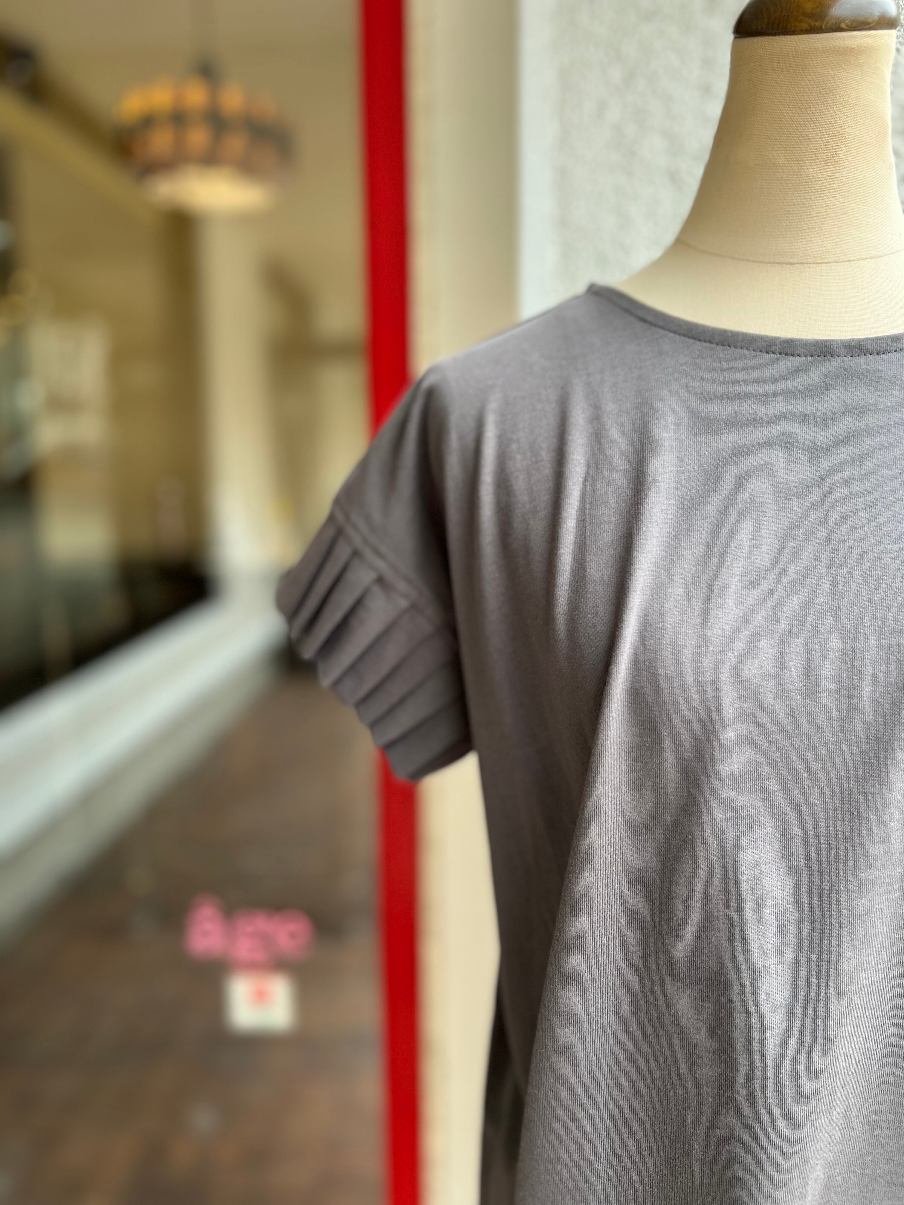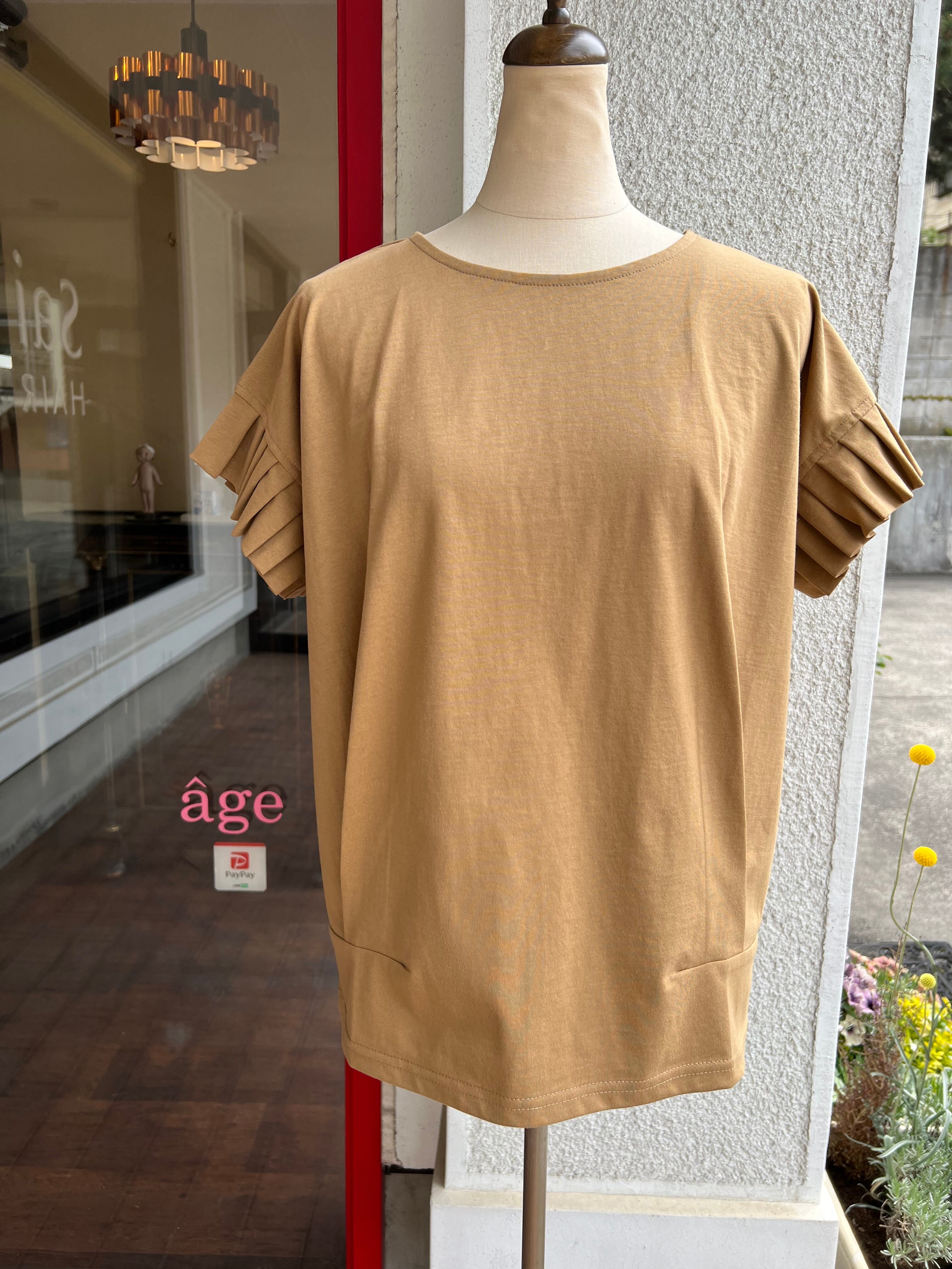 身頃にタックが入り、立体感のあるフォルムと袖のプリーツがアイキャッチなTシャツです