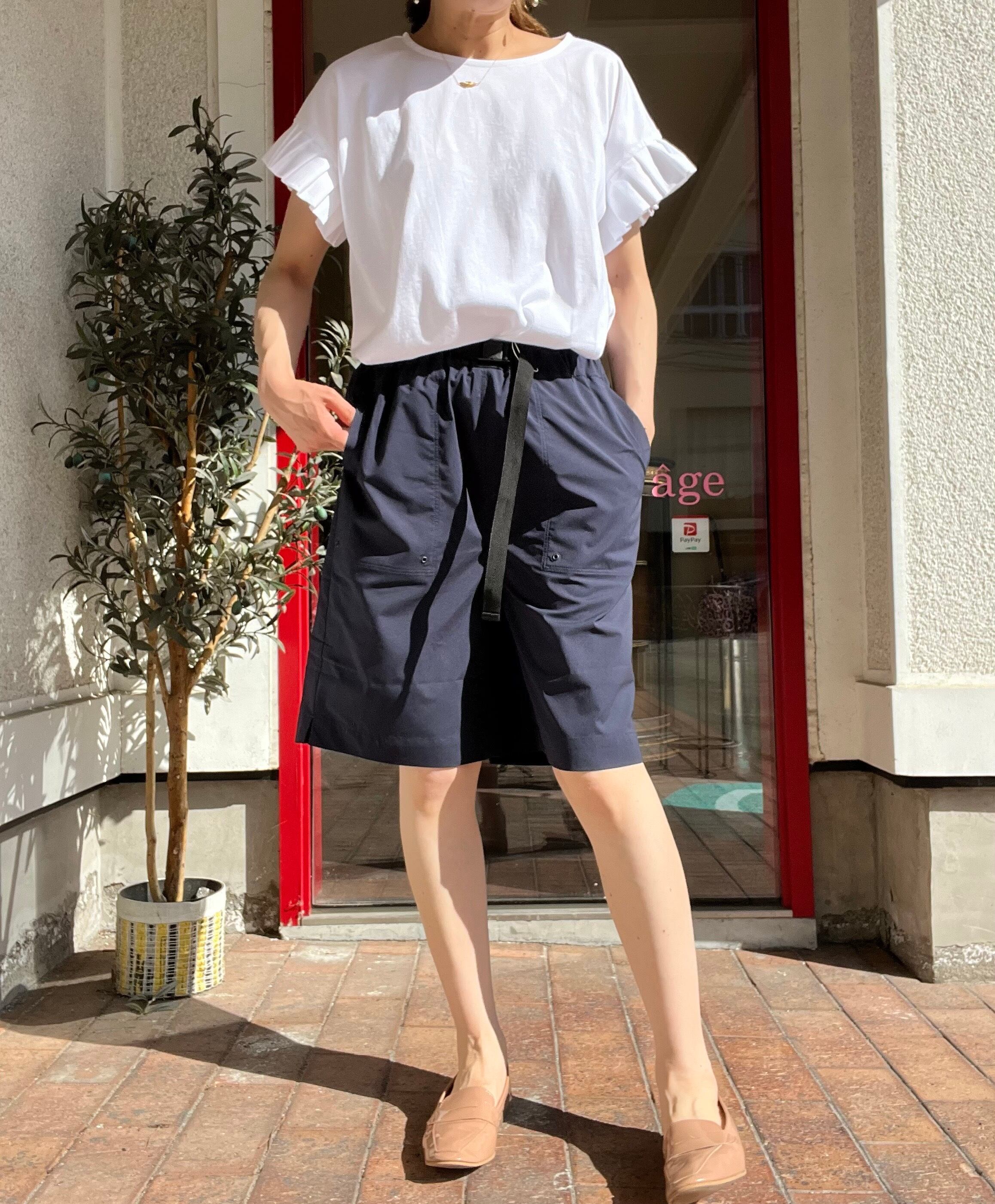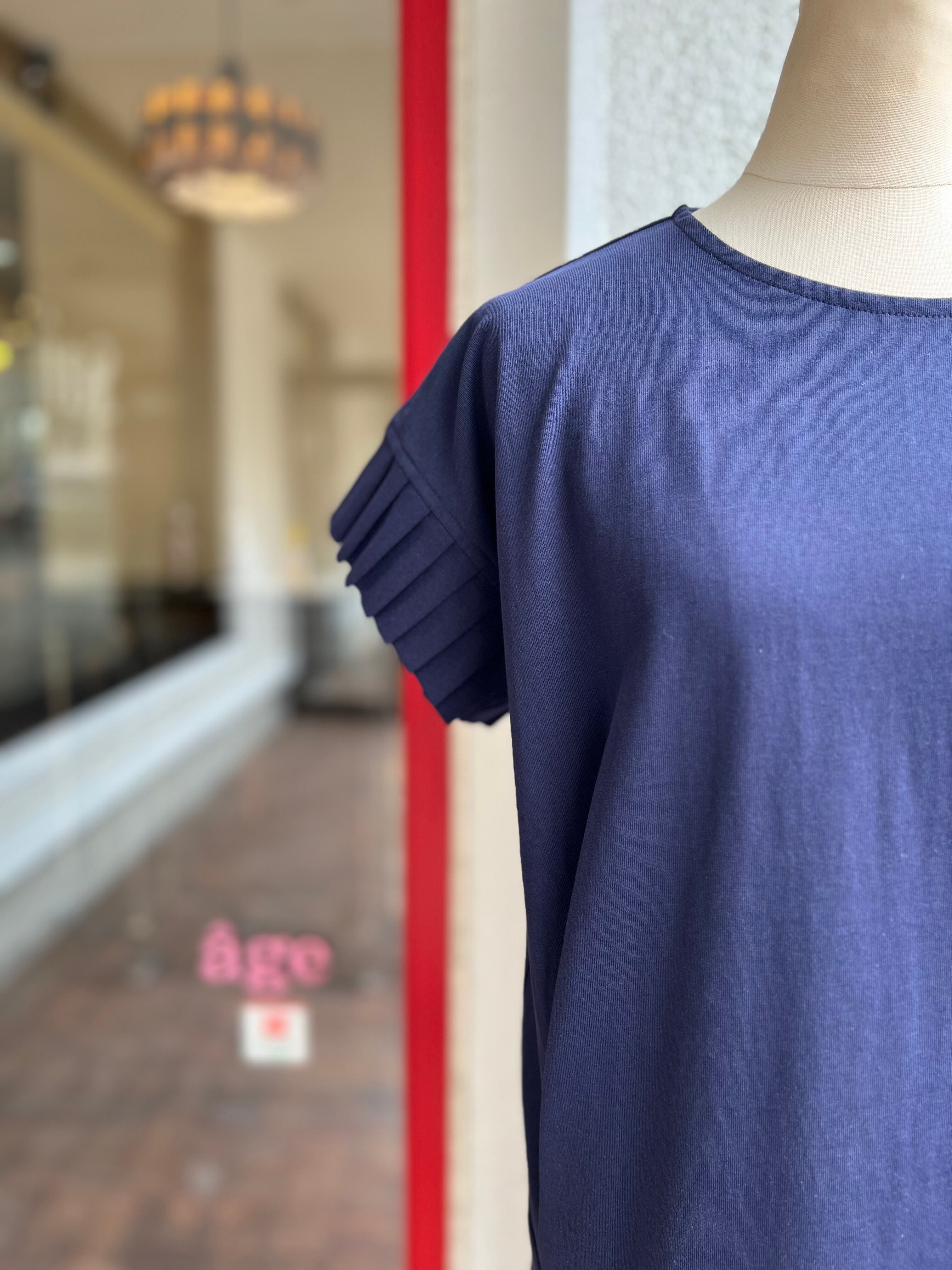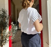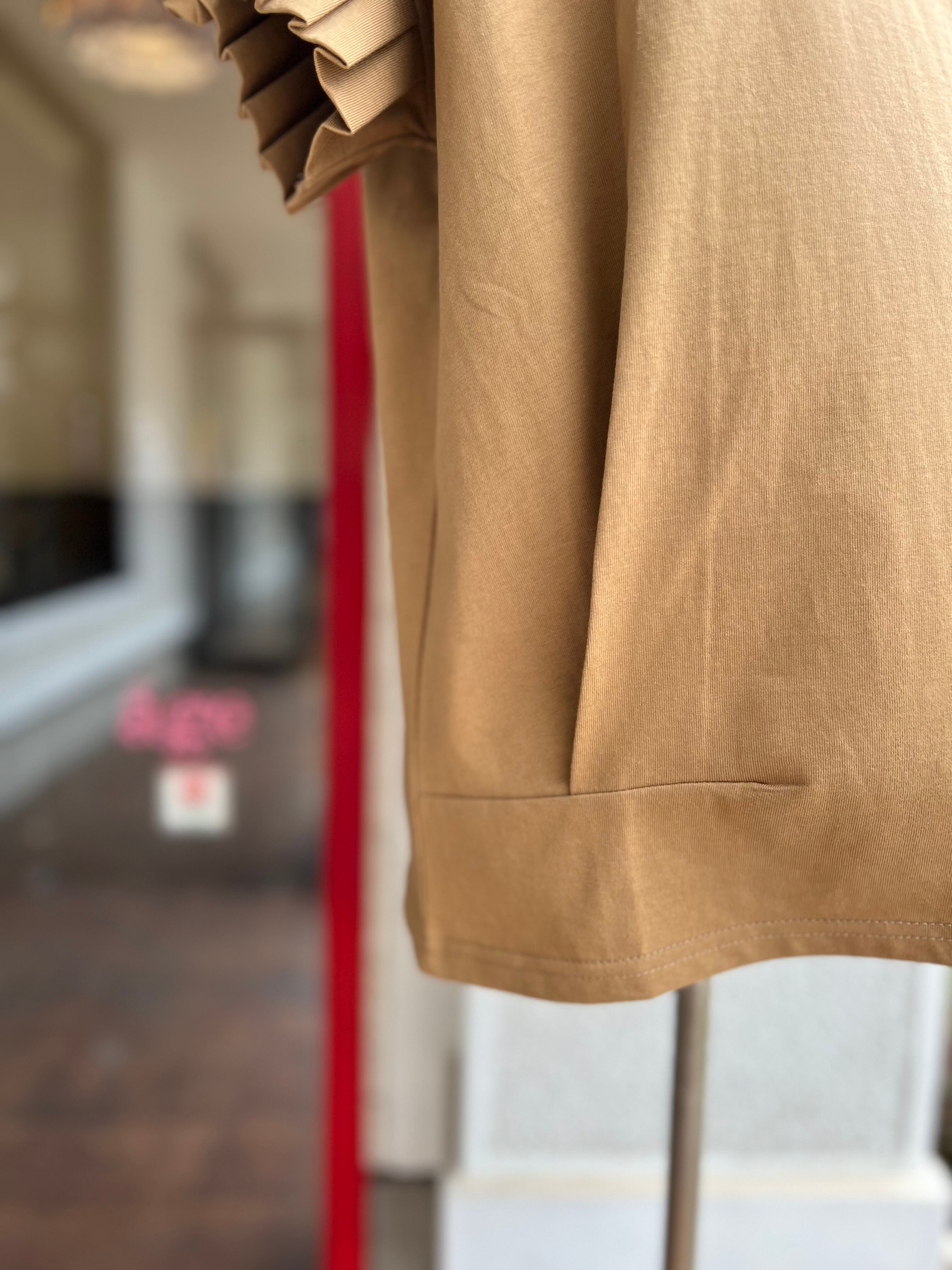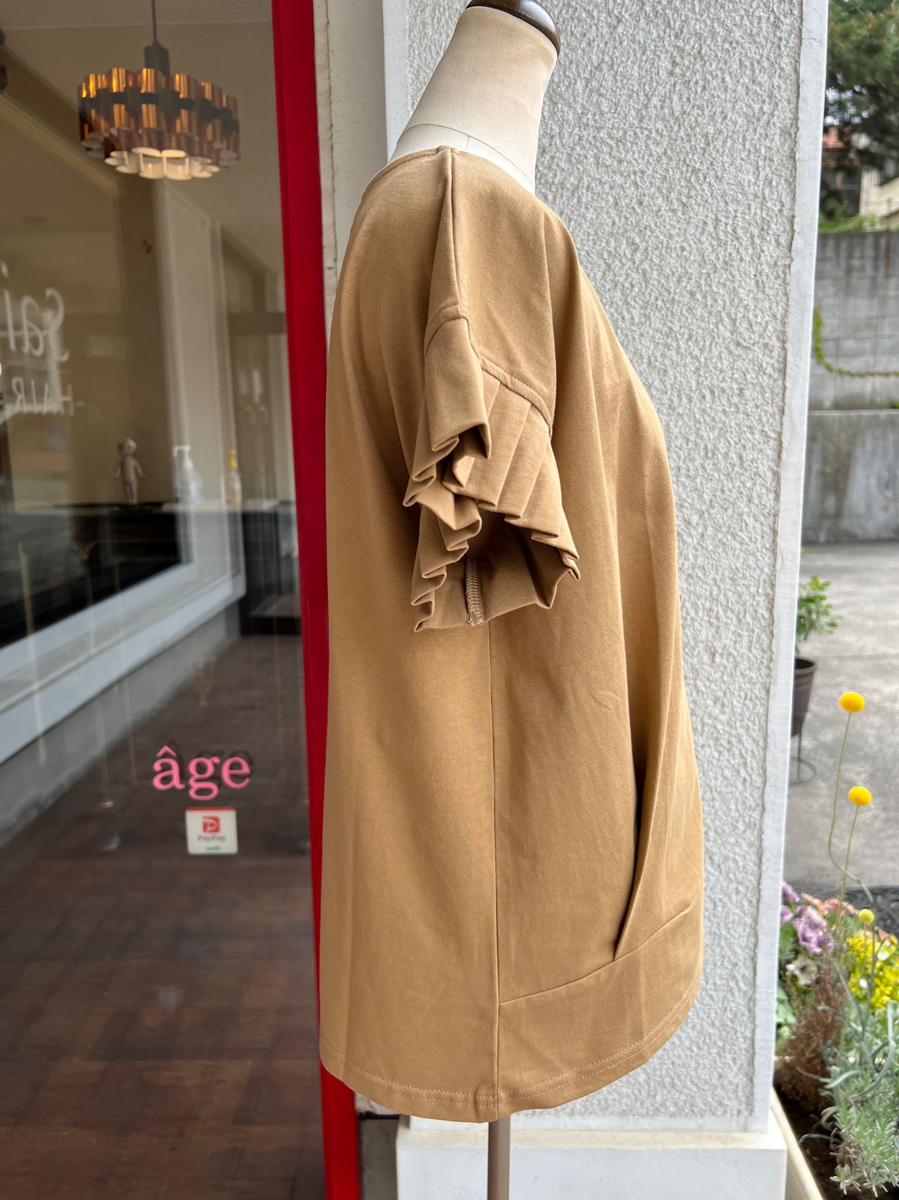 身頃にタックが入り、立体感のあるフォルムと袖のプリーツがアイキャッチなTシャツです