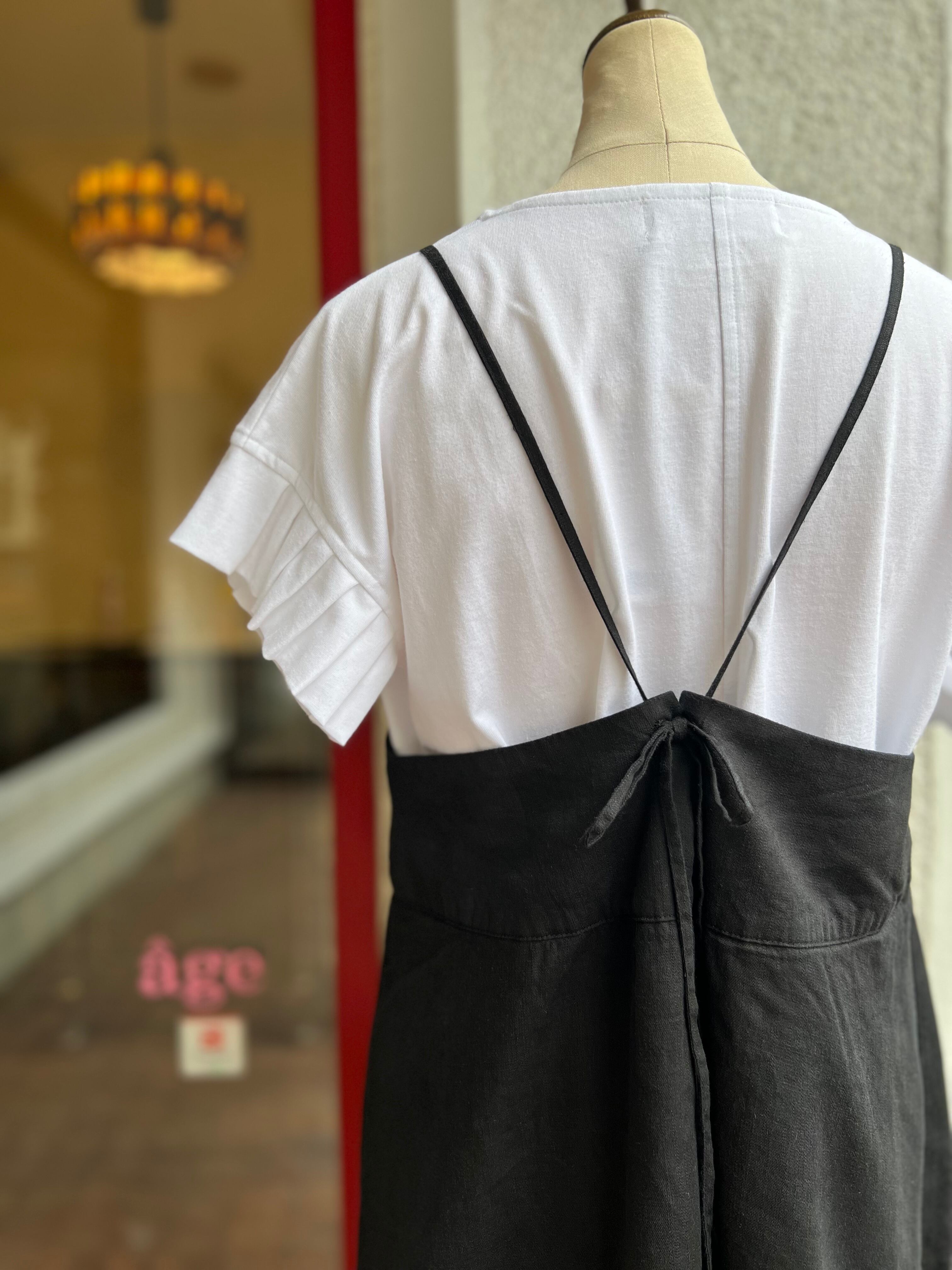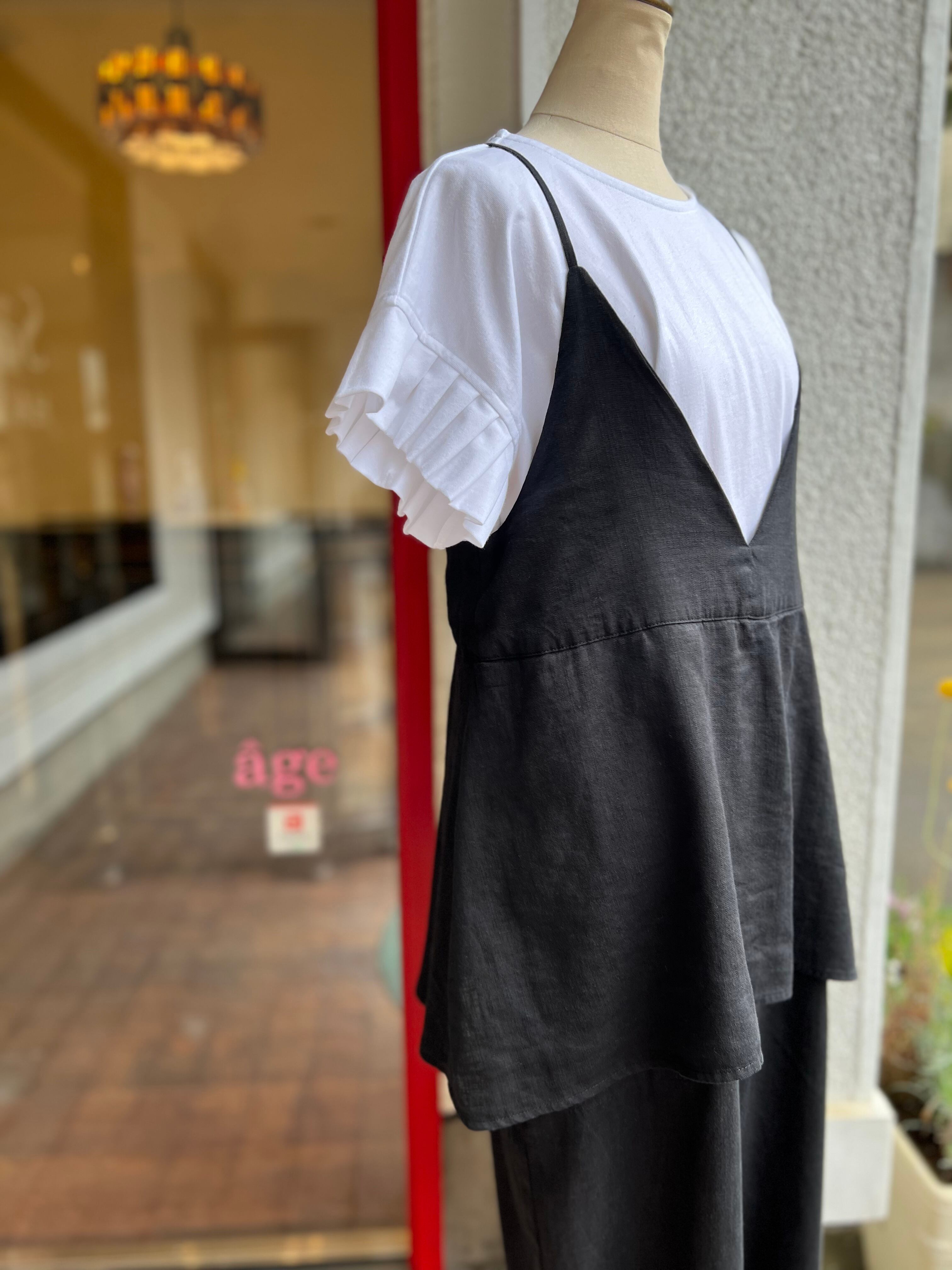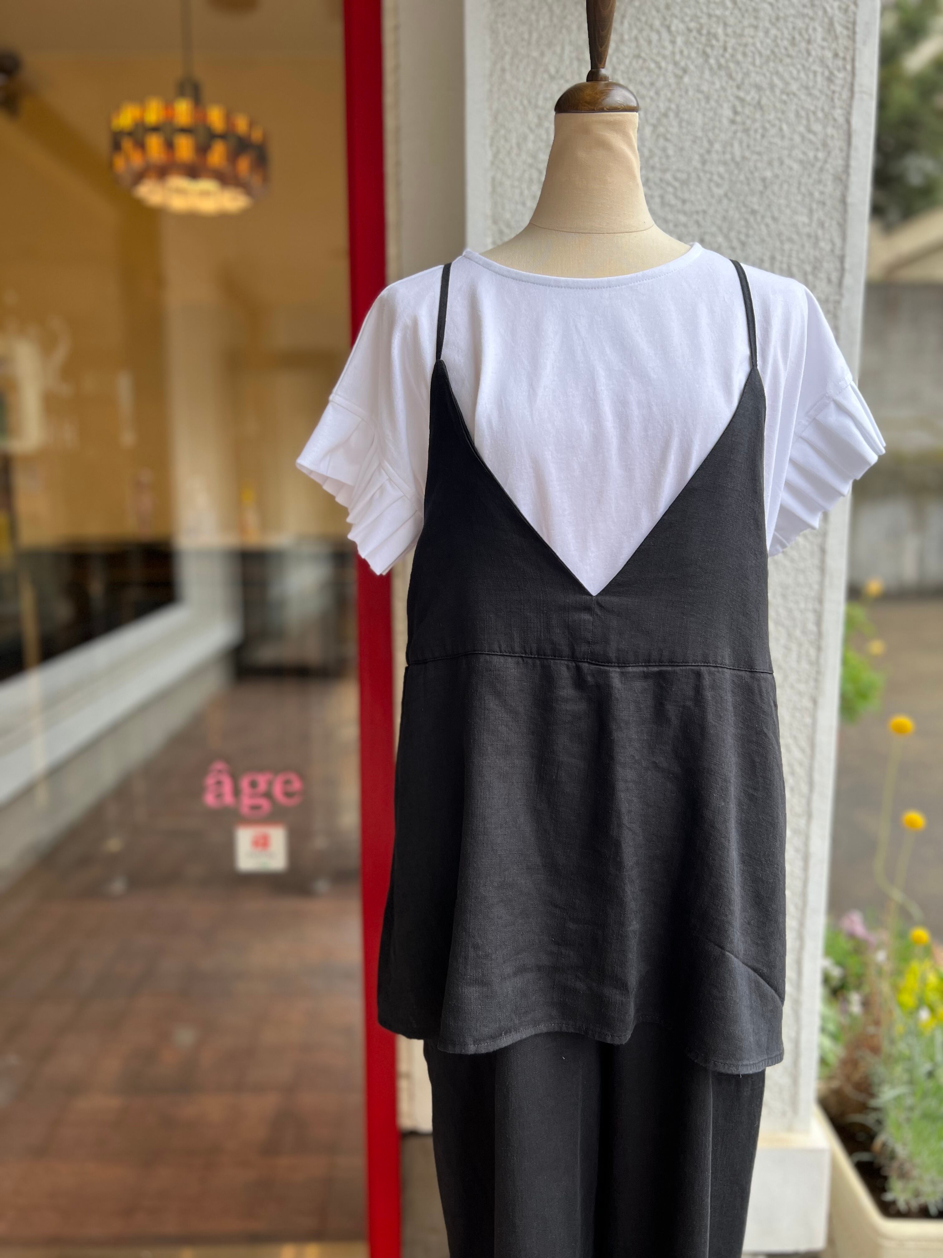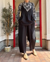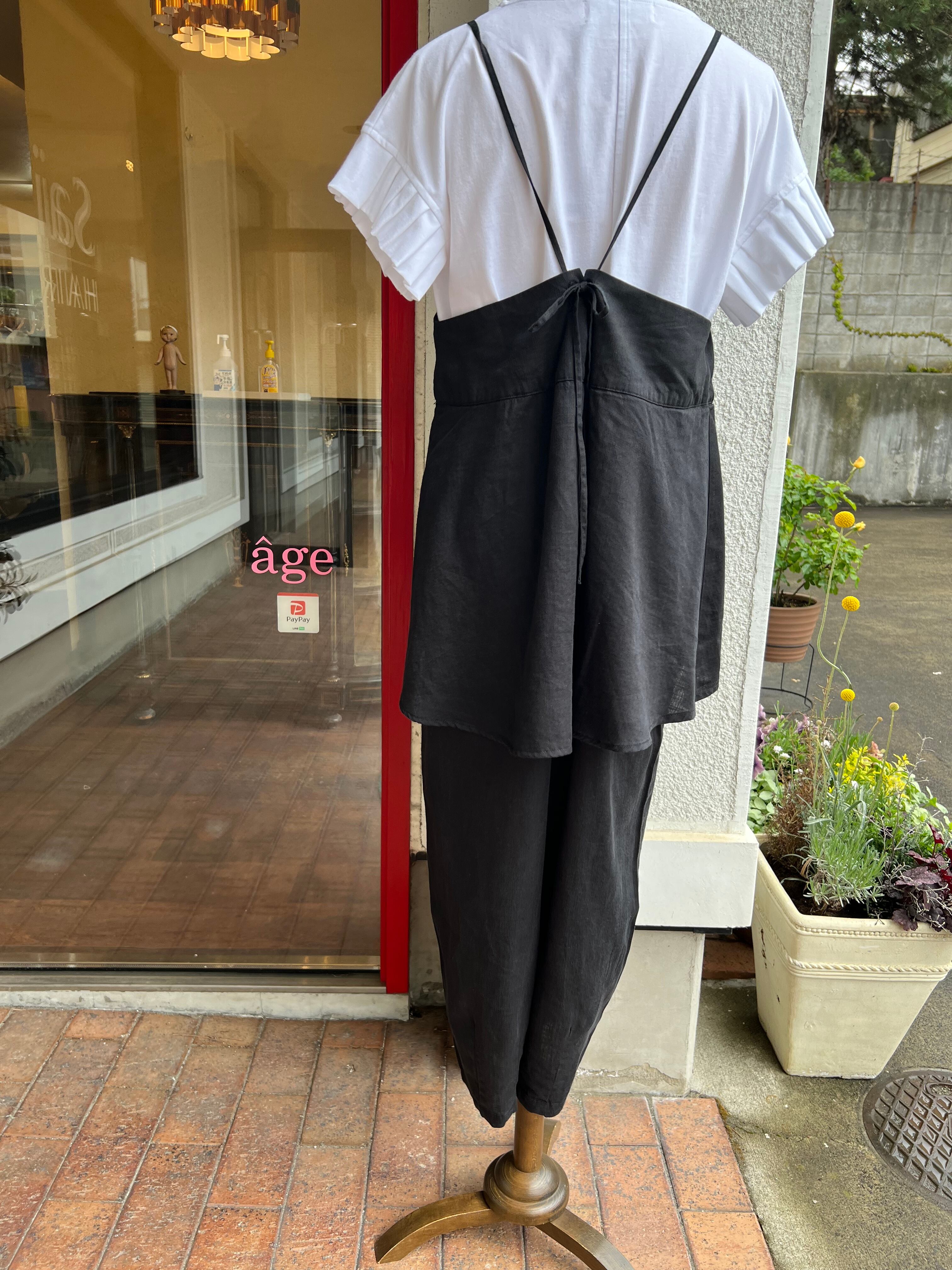 お腹やヒップを隠しながら、サロペットを楽しめるデザインです