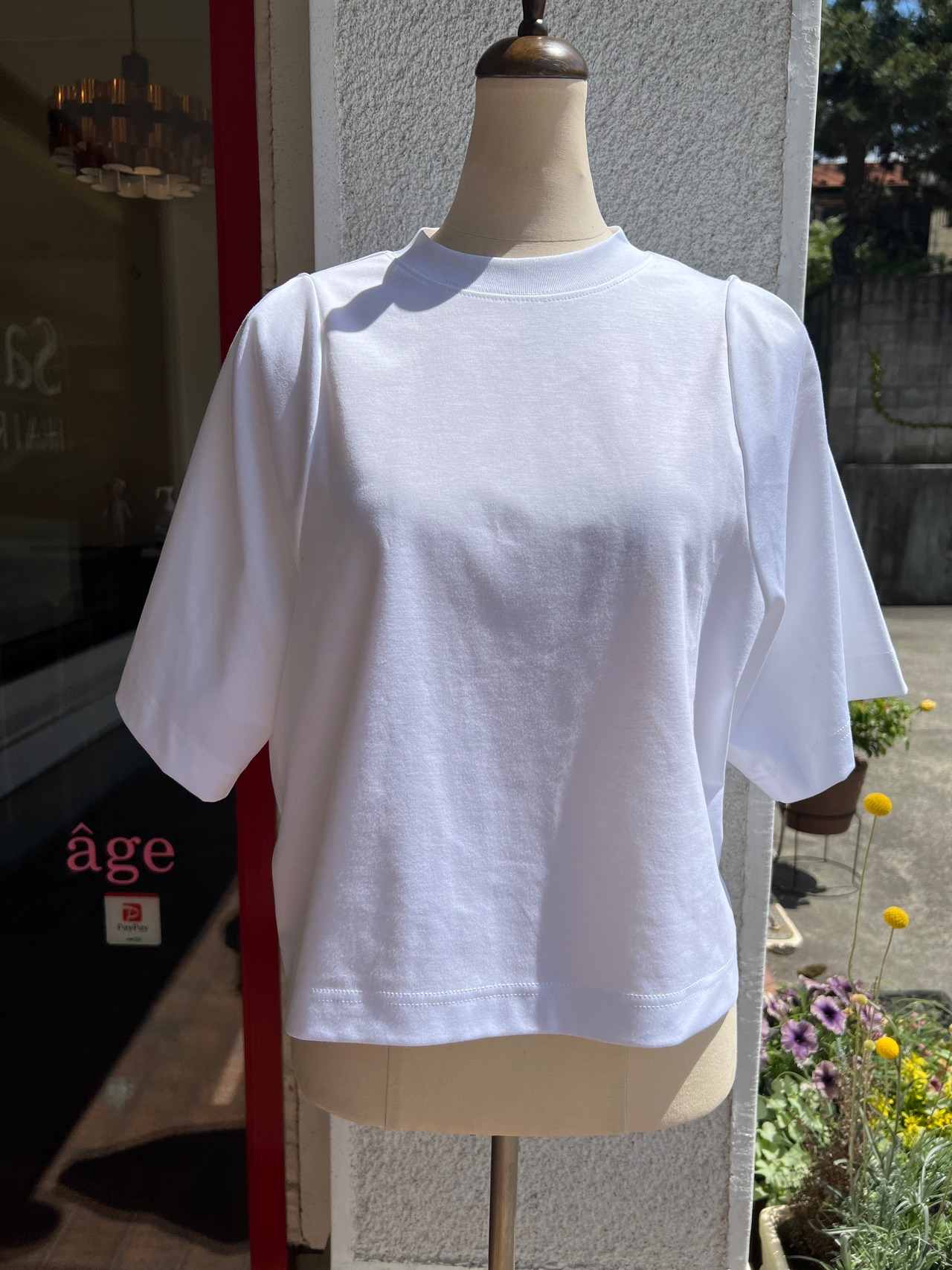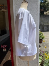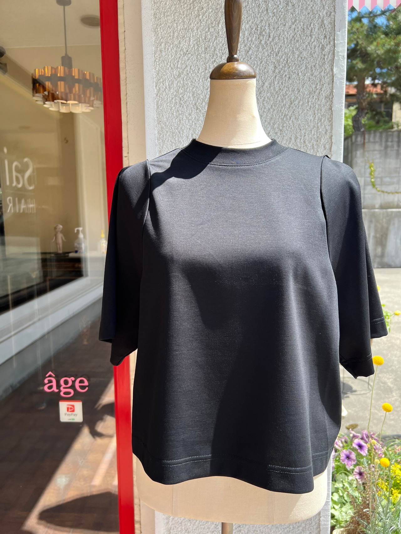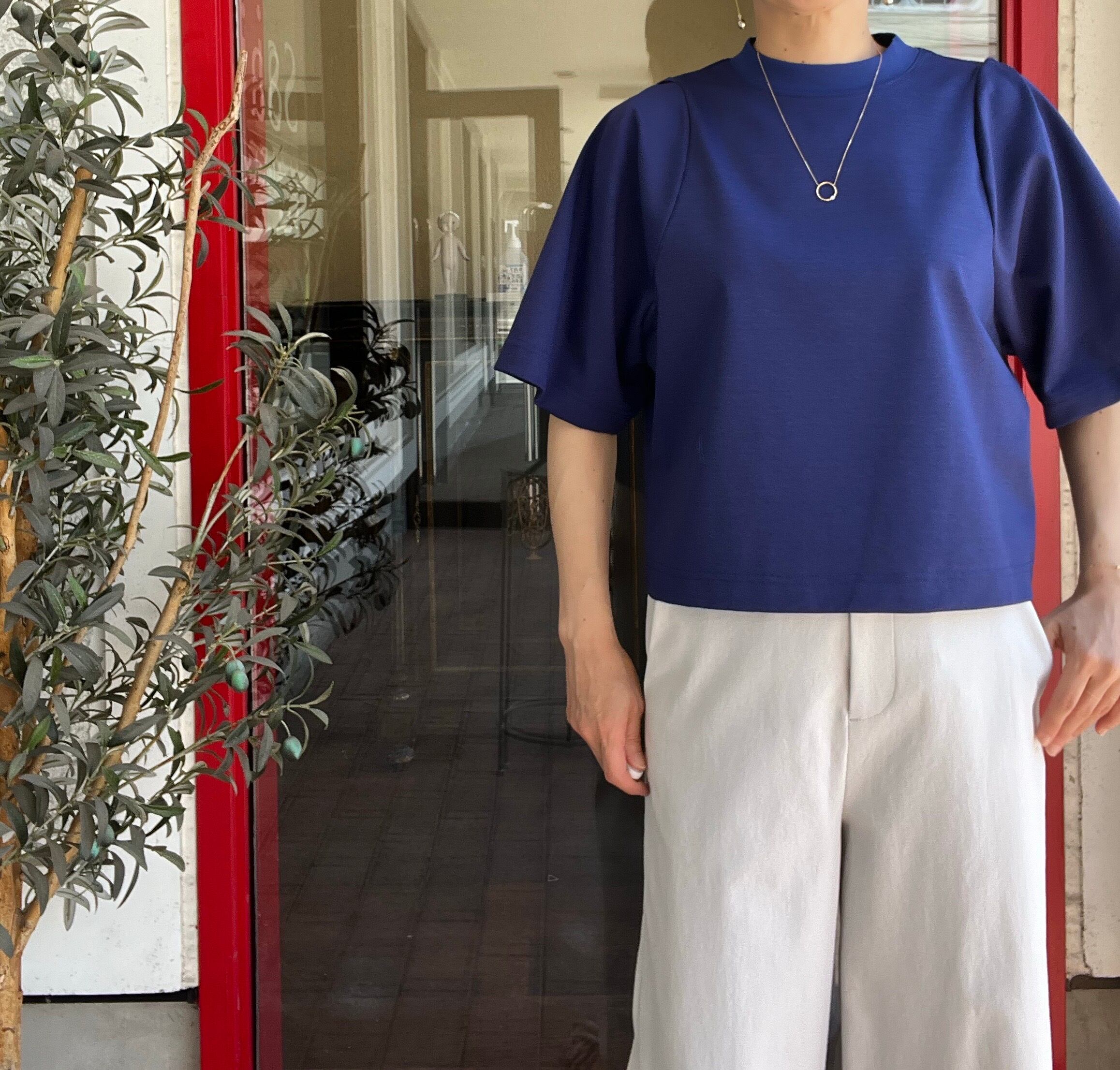 タックの入った5分袖のボリュームスリーブは、エアリー感のあるシルエット