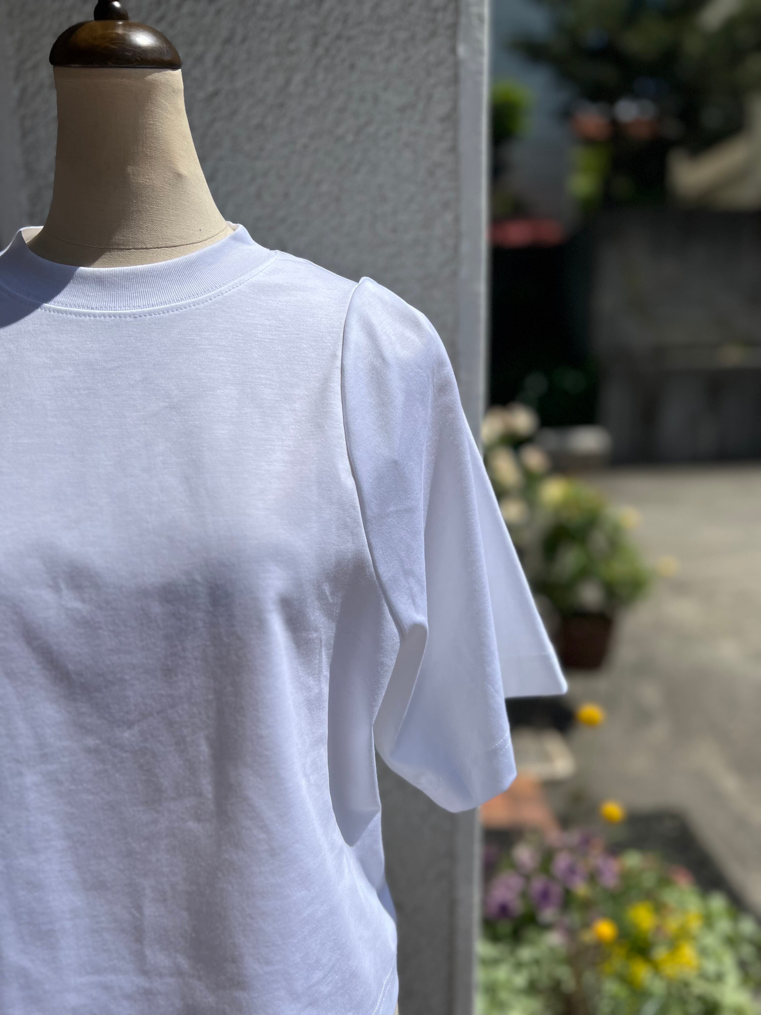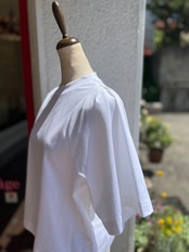 光沢感のある生地は程よい厚さで透け感も少なく、身体のラインも拾わないので