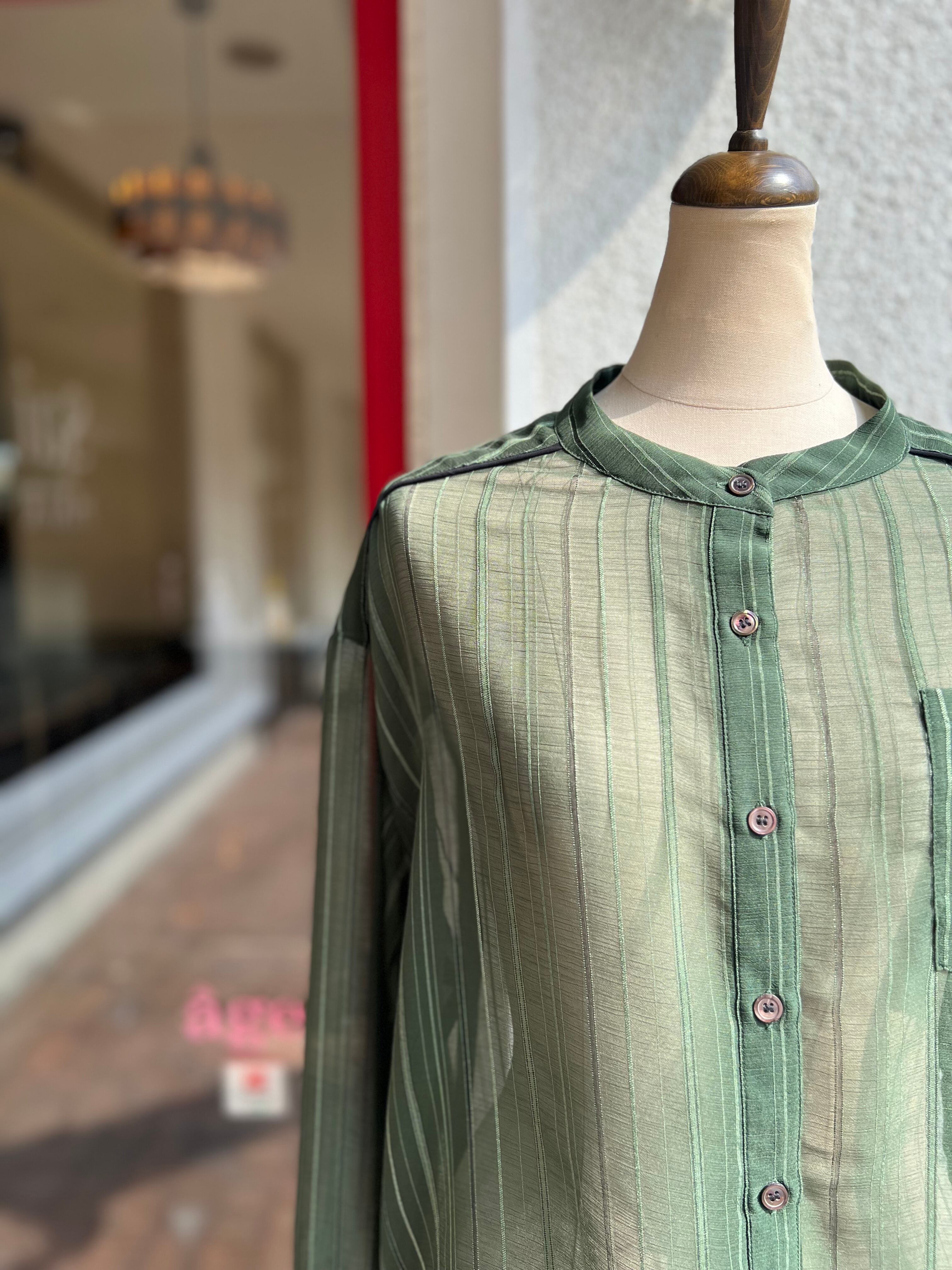 ストライプ生地が、透け感をカモフラージュしてくれるので