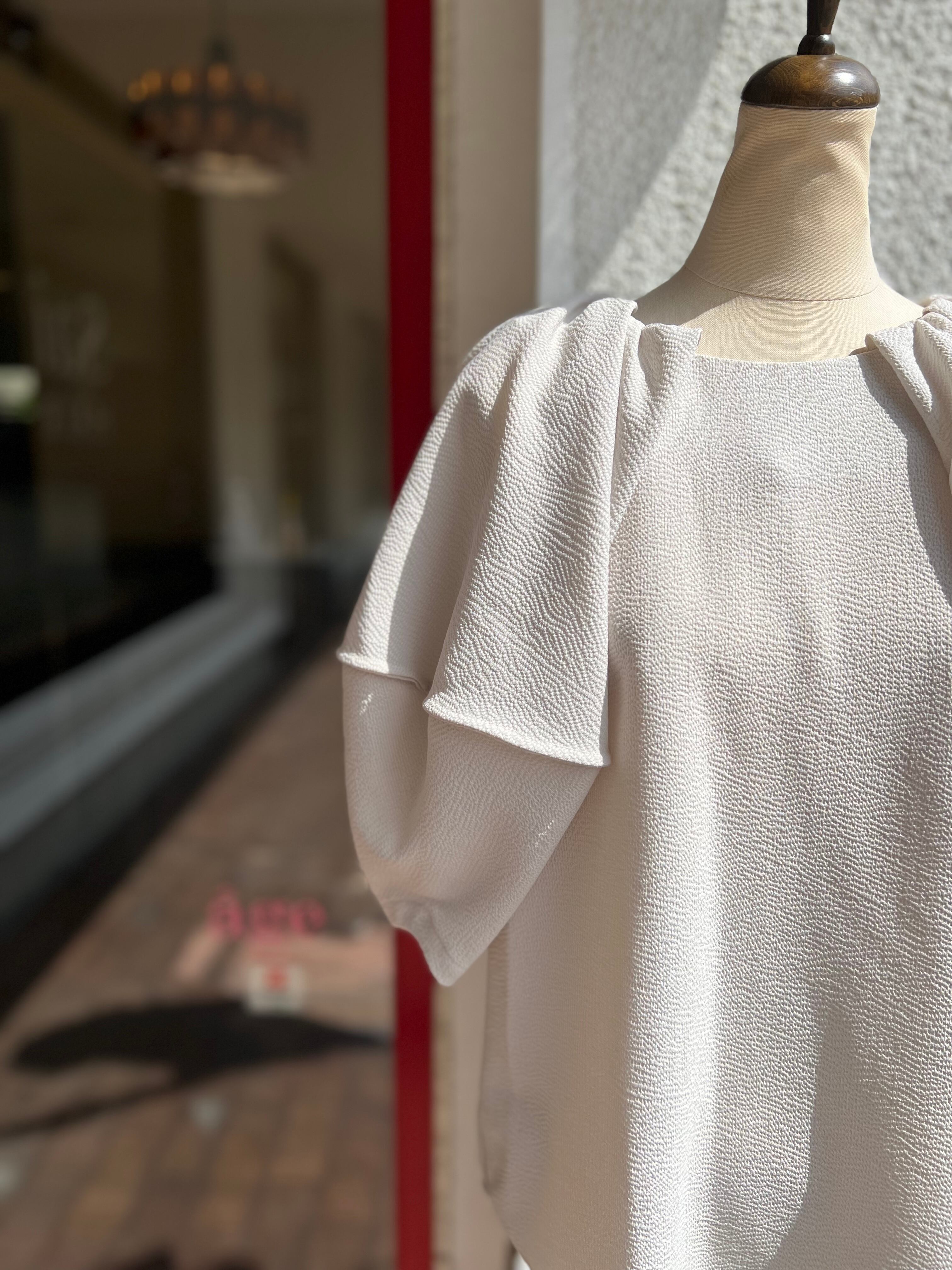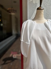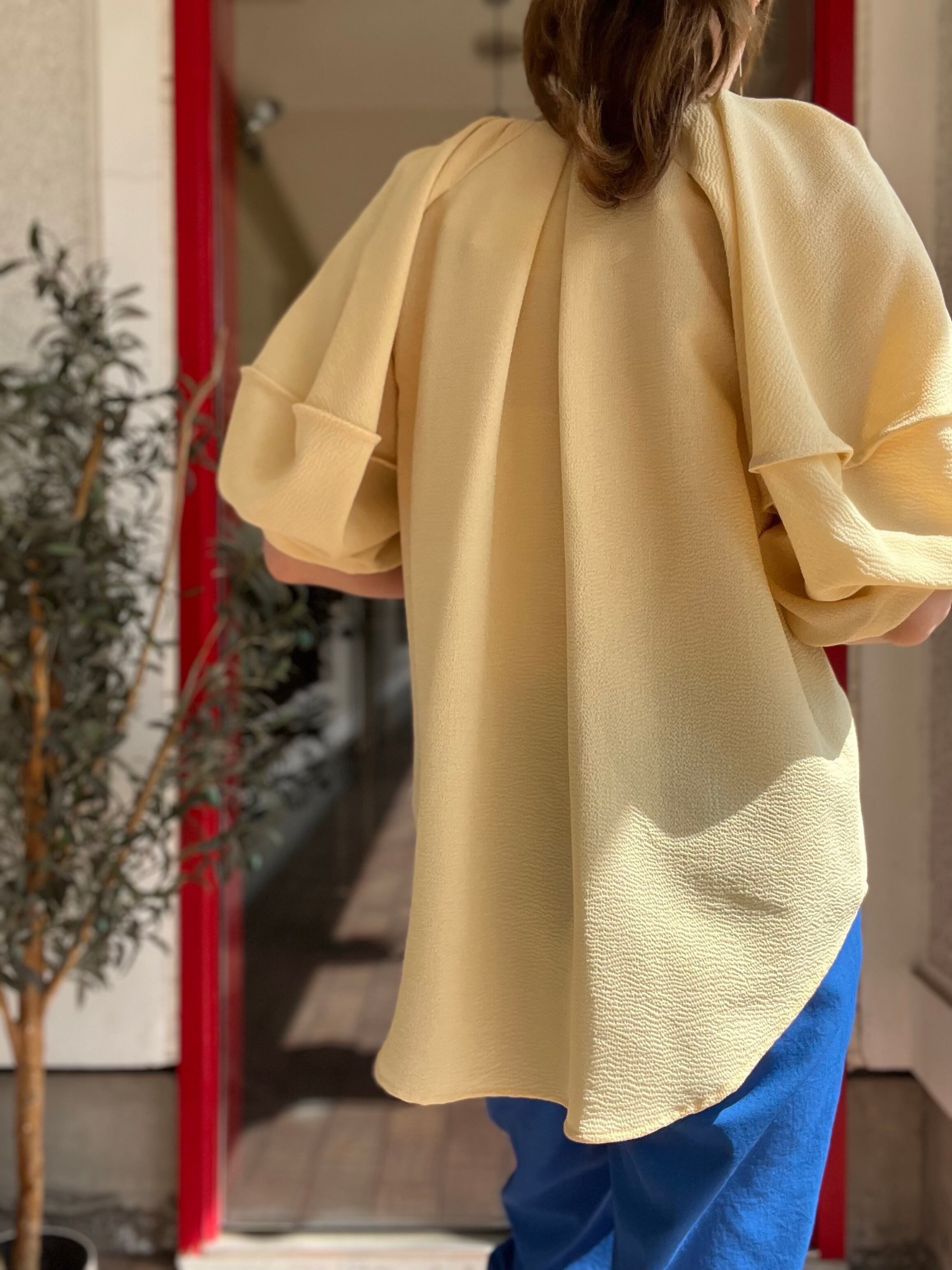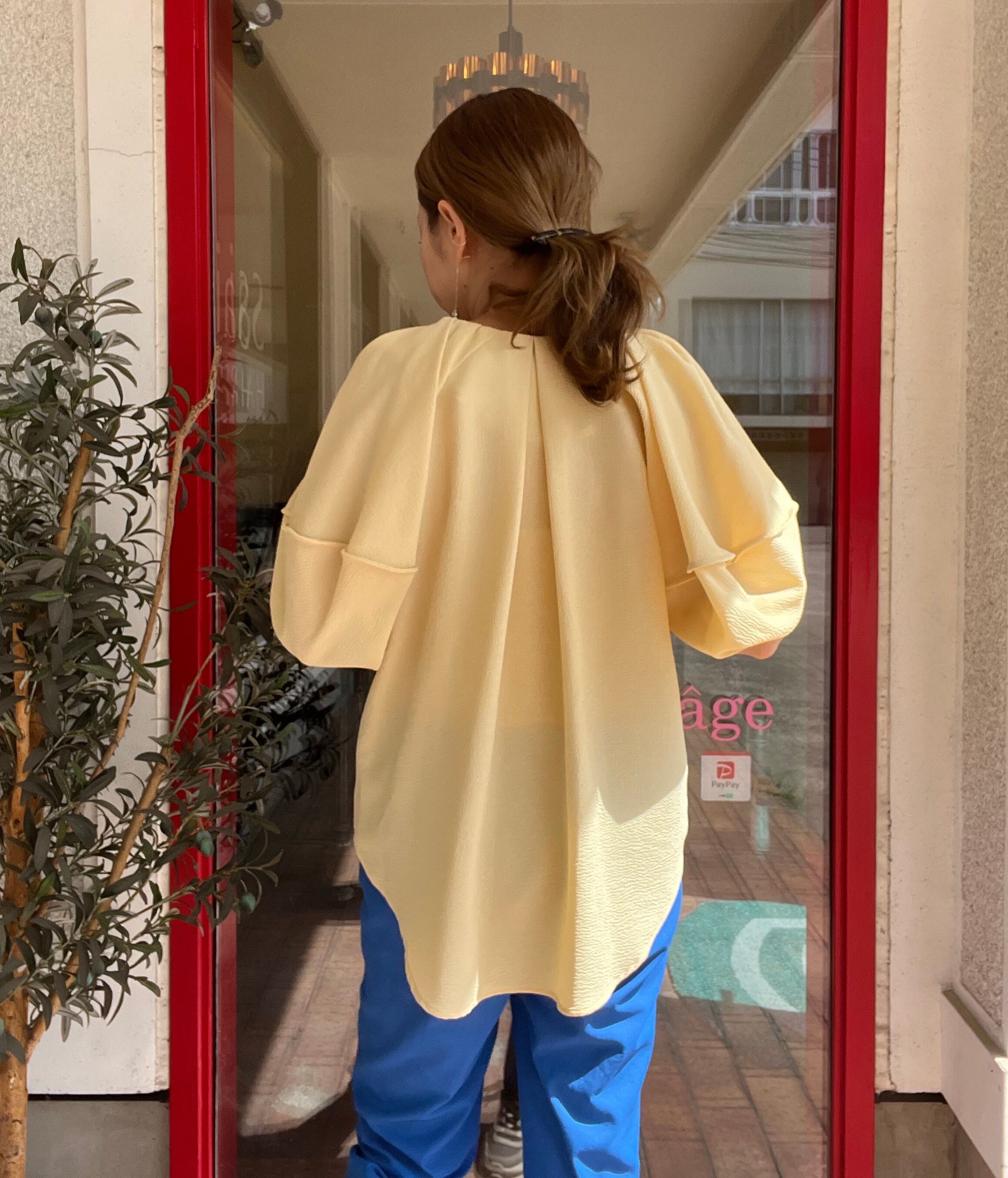 凹凸ある生地は伸縮性もあり、襟元にはゴムが入っているので、着脱もしやすくなっております