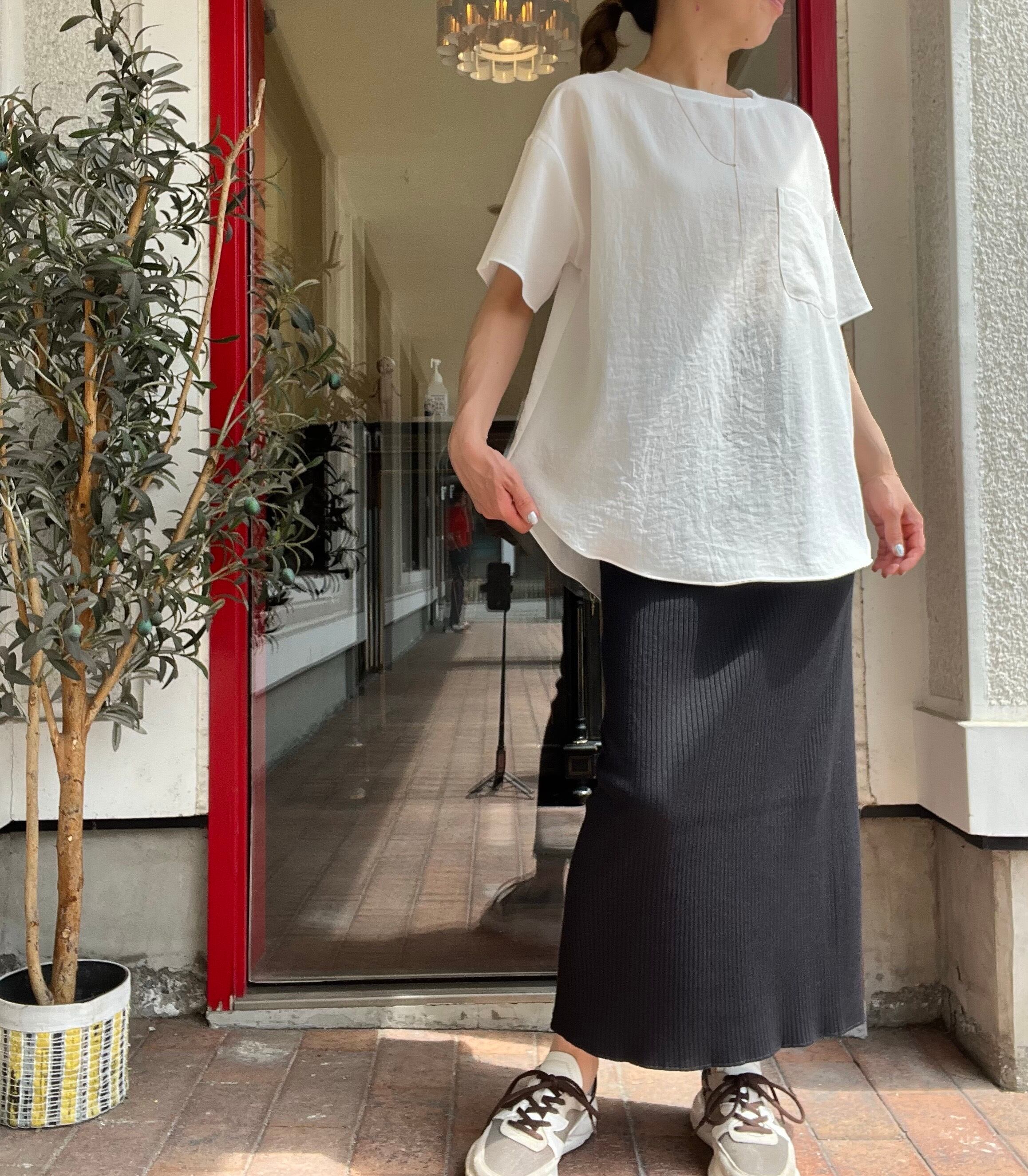 ややハリ、弾力が備わったTシャツのように着れるブラウス