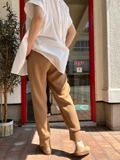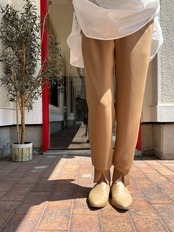 裾のスリットは脚長効果もあり、パンプスはもちろん、スニーカーともコーディネートして頂けます