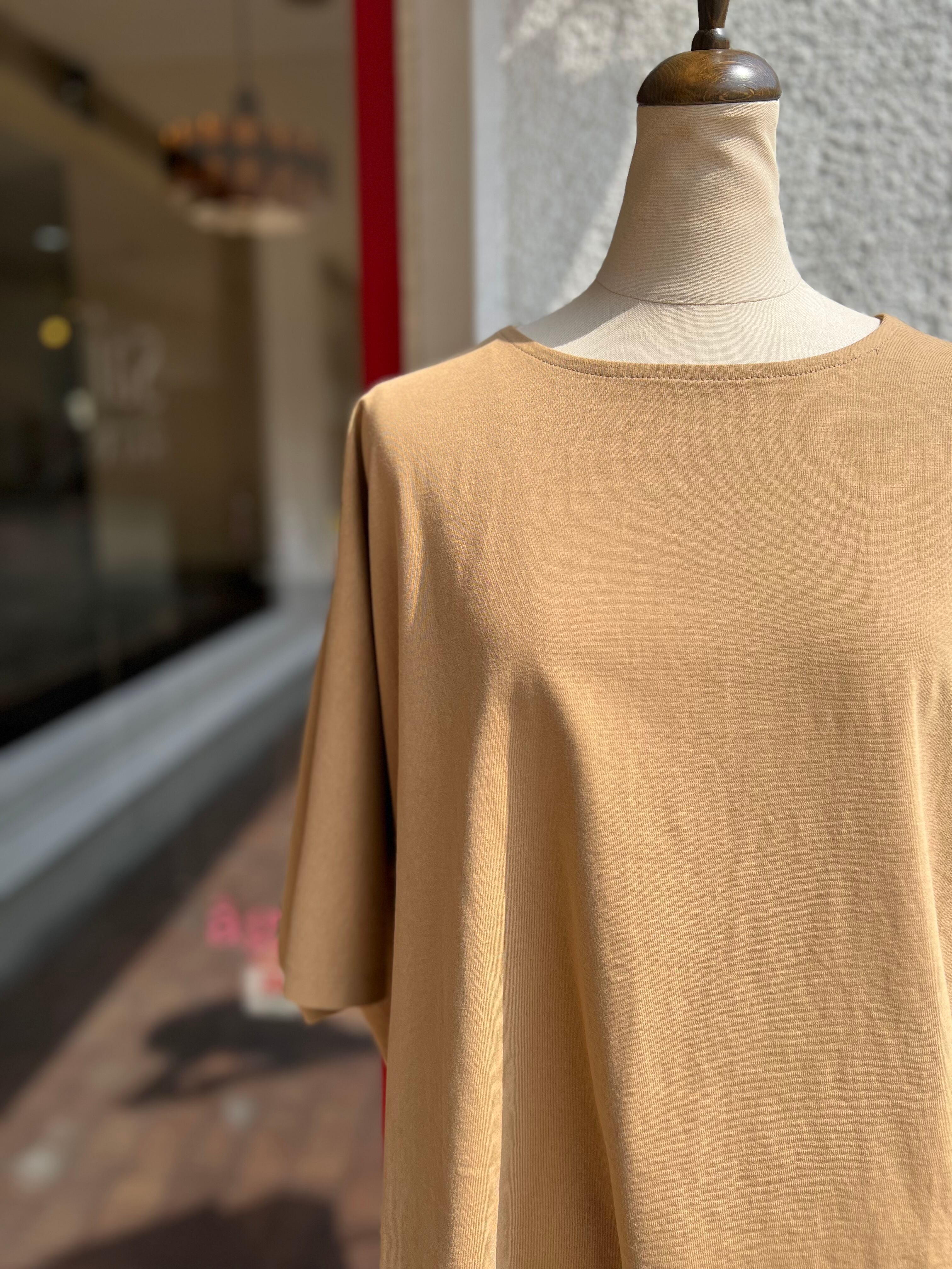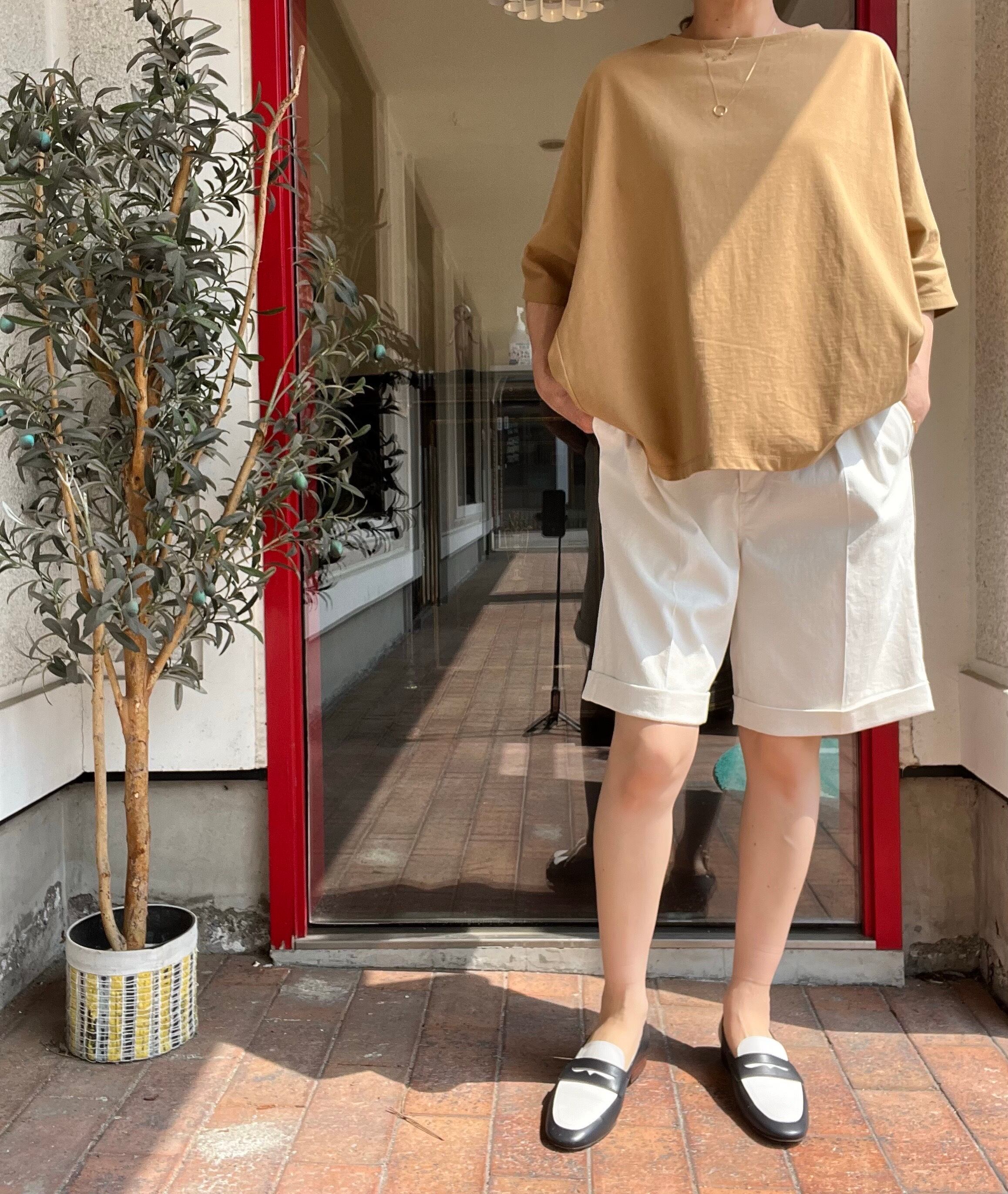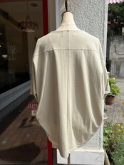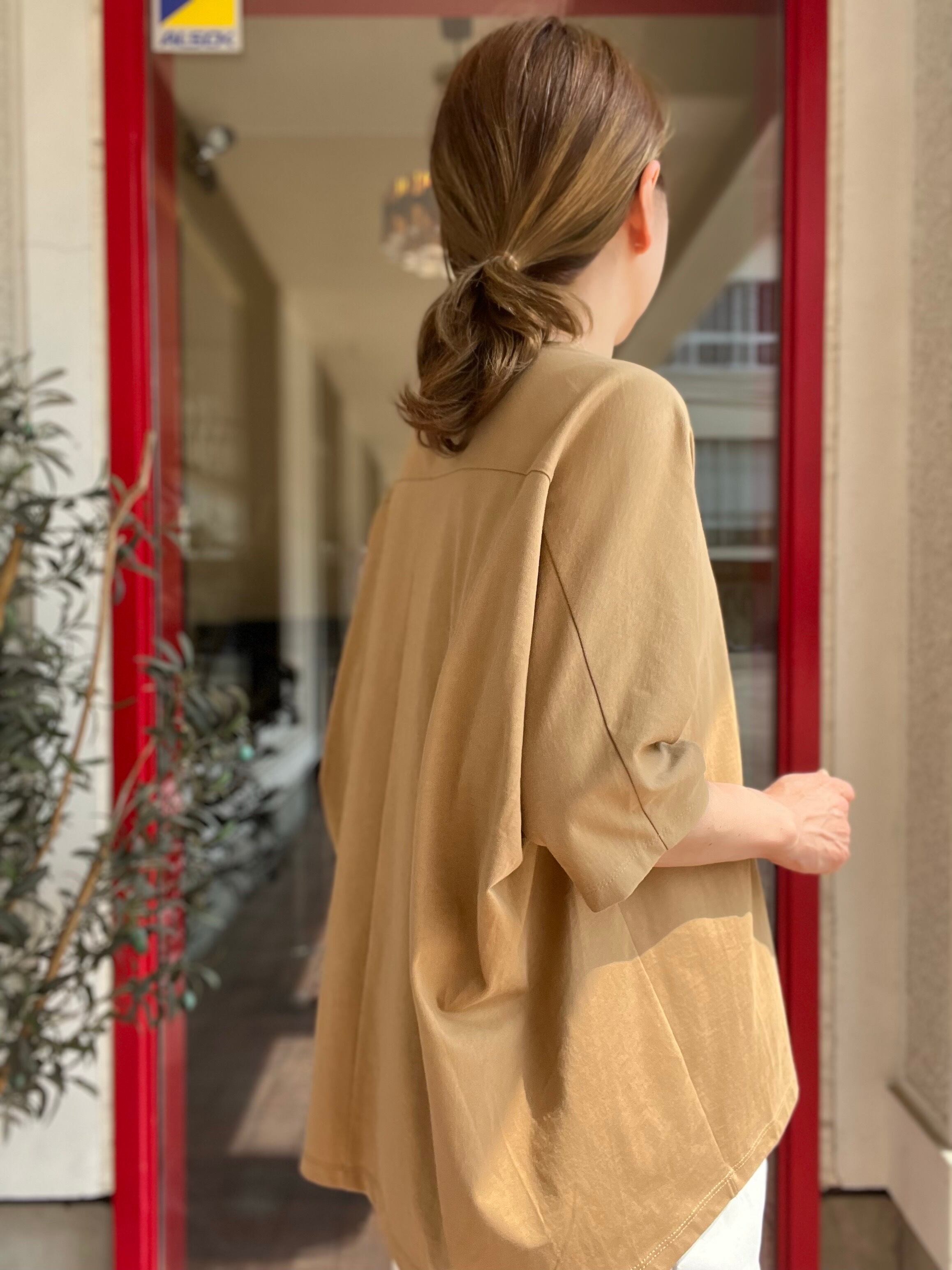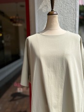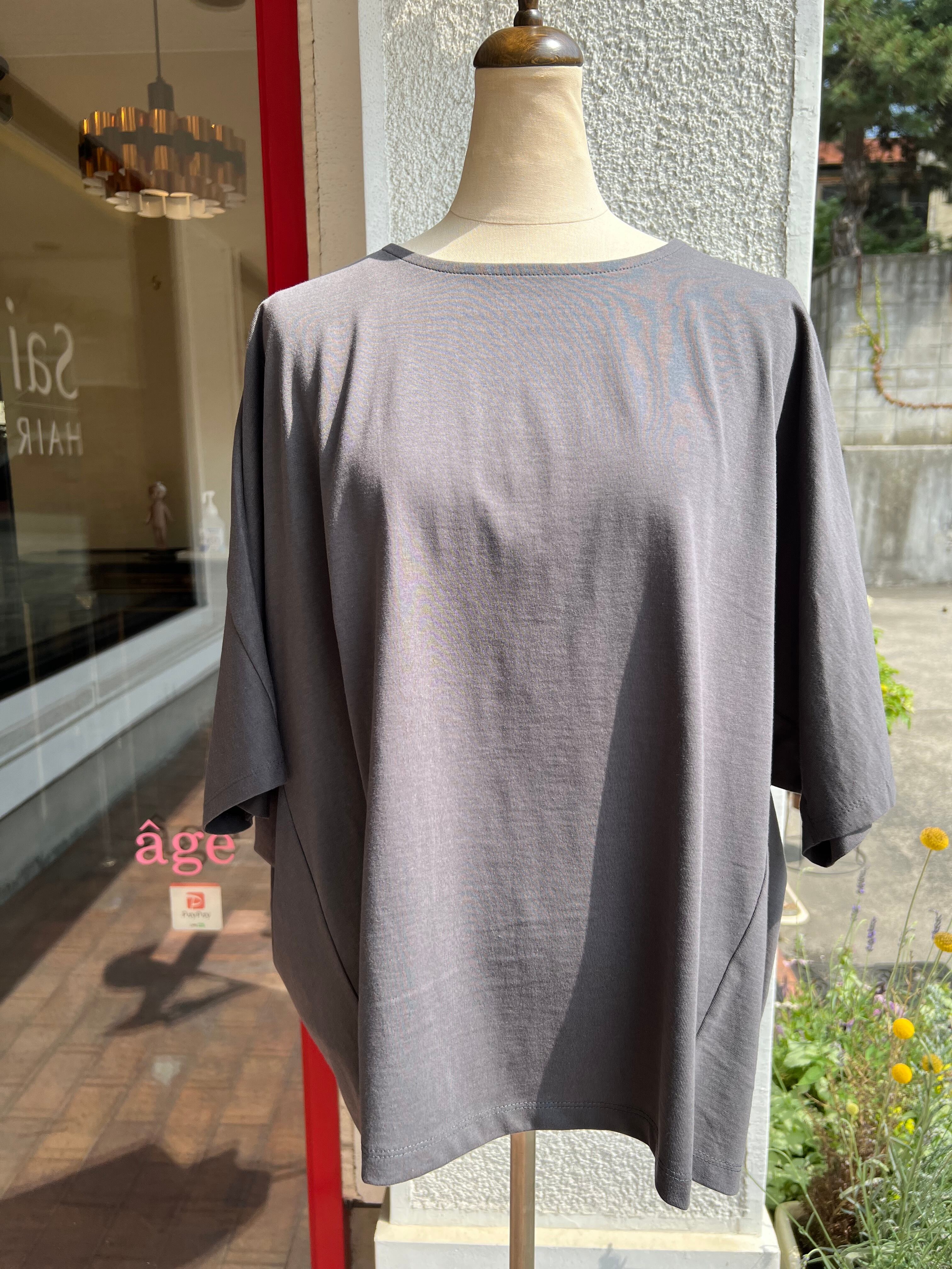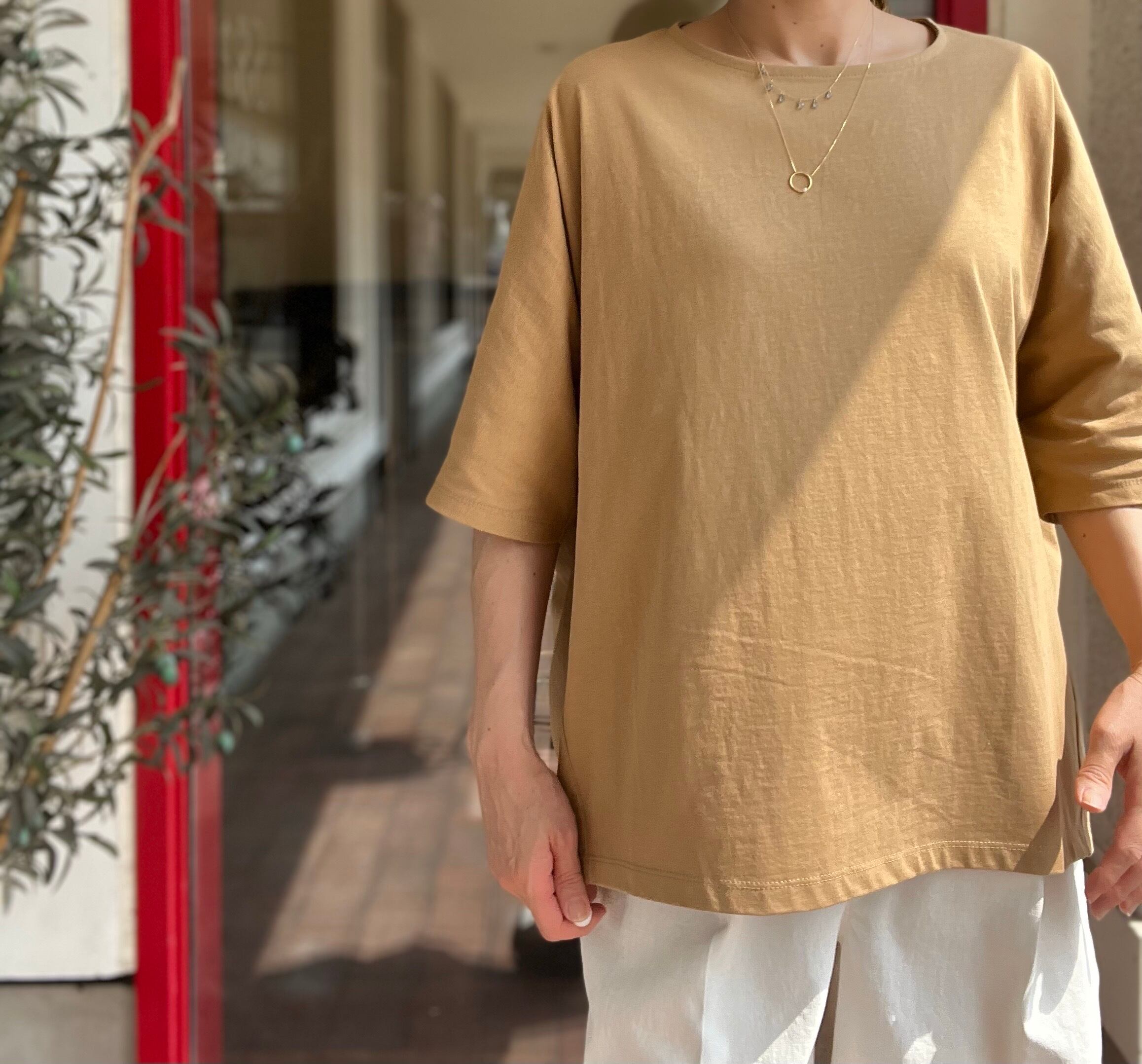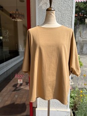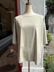 二の腕が隠れる袖も、ドルマンスリーブでゆったりしたフォルムで肌離れ良く、透け感もほぼなく安心して着て頂けます