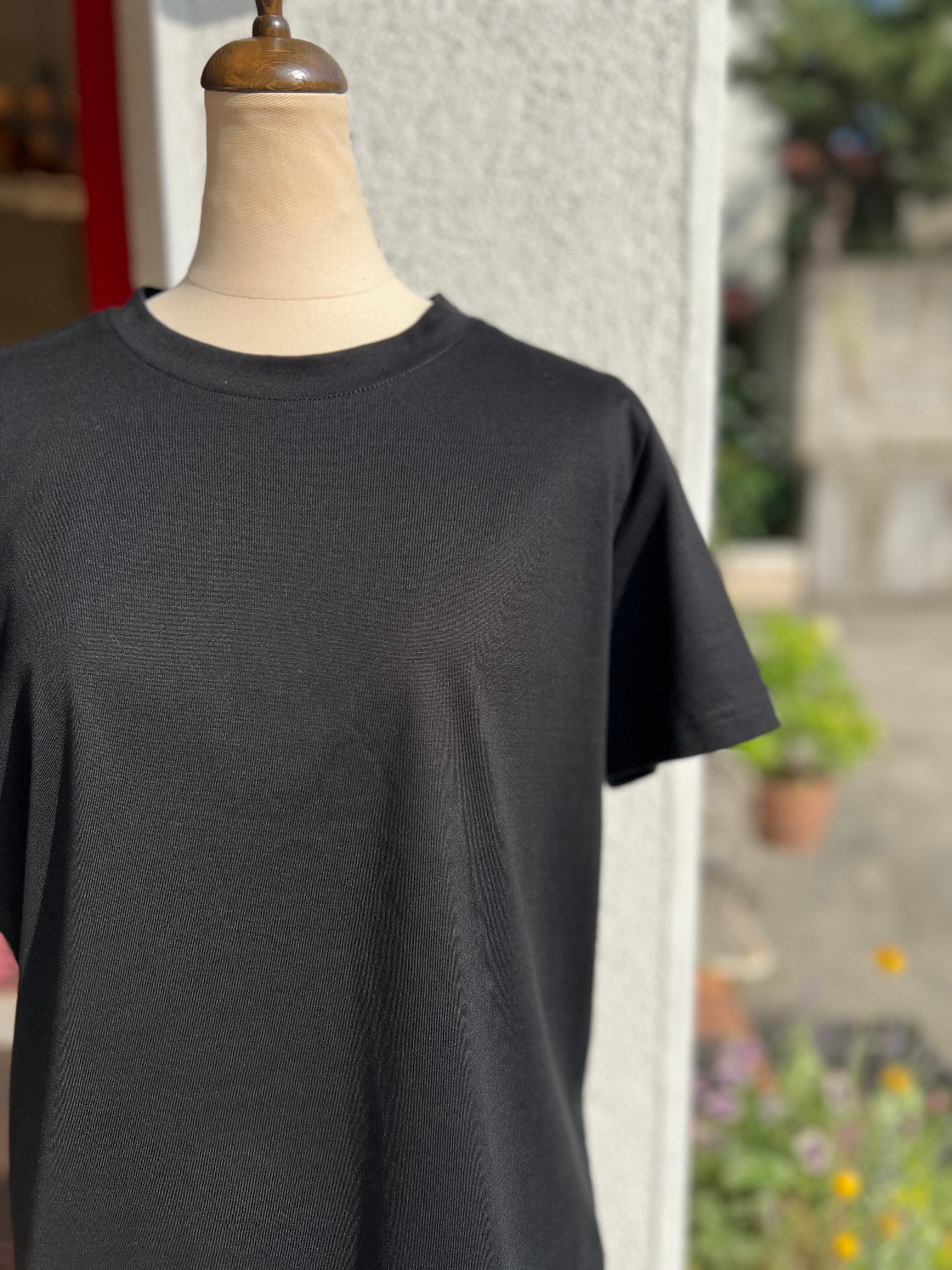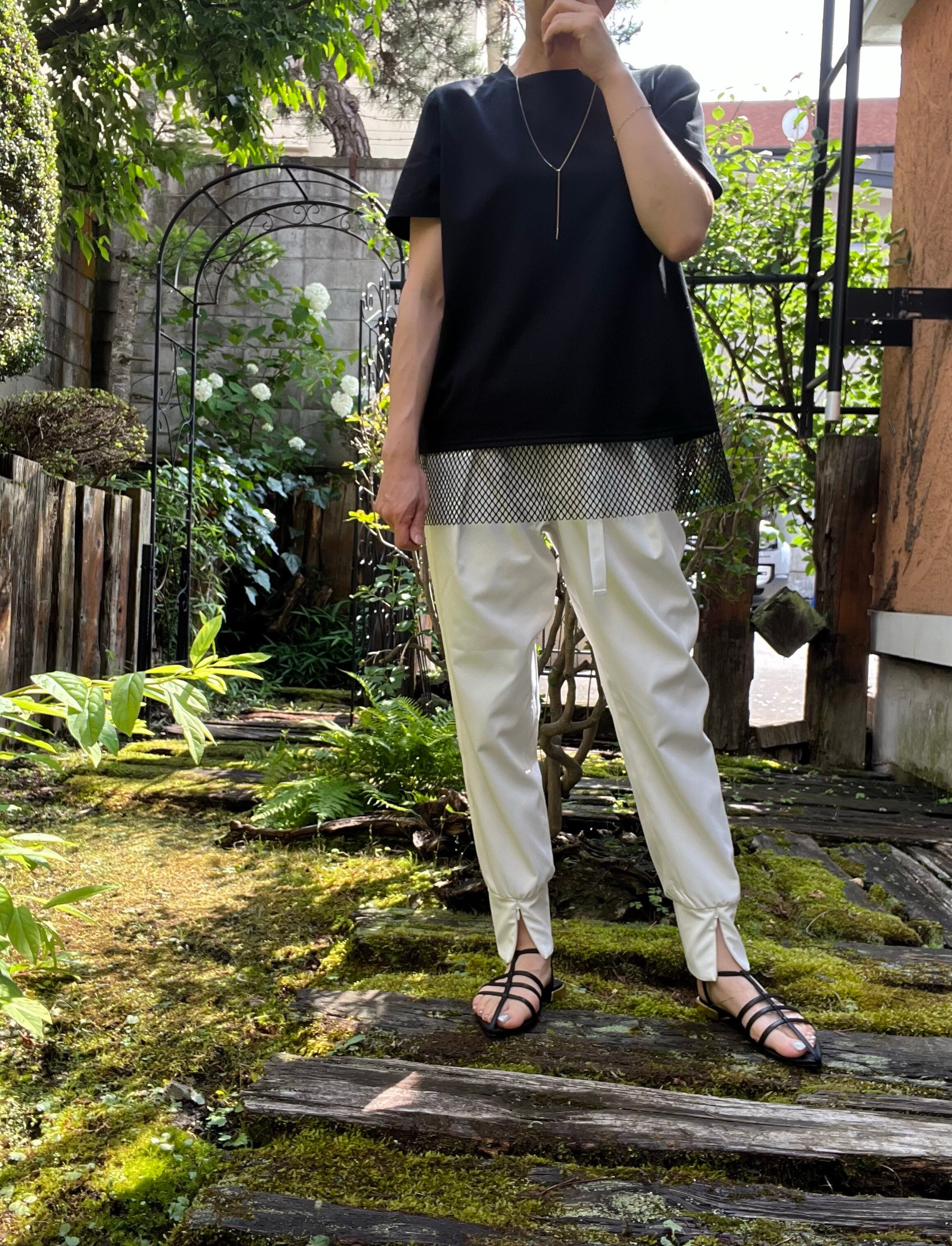 Tシャツに大きめのメッシュが施されたきれいめなデザイン