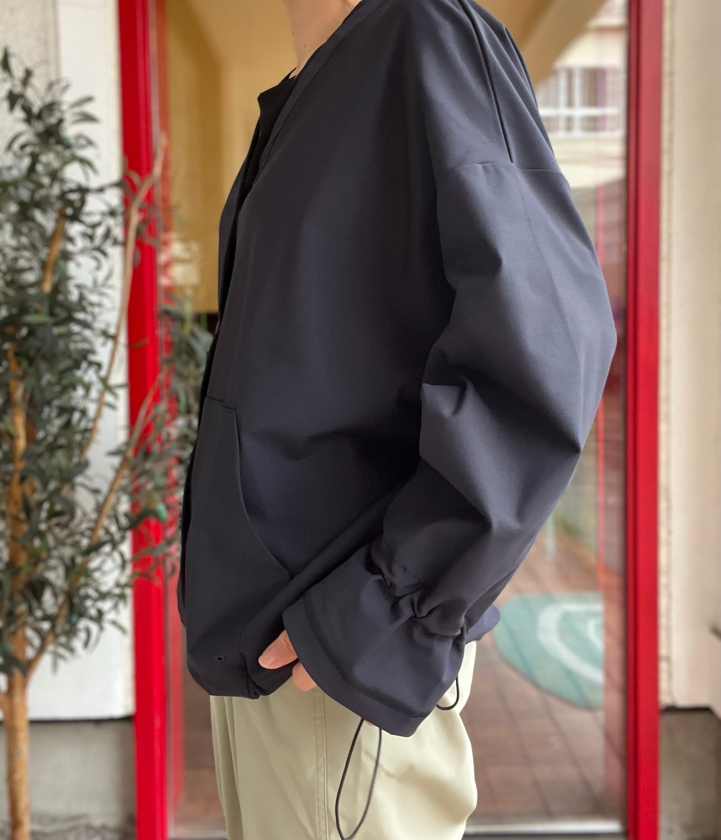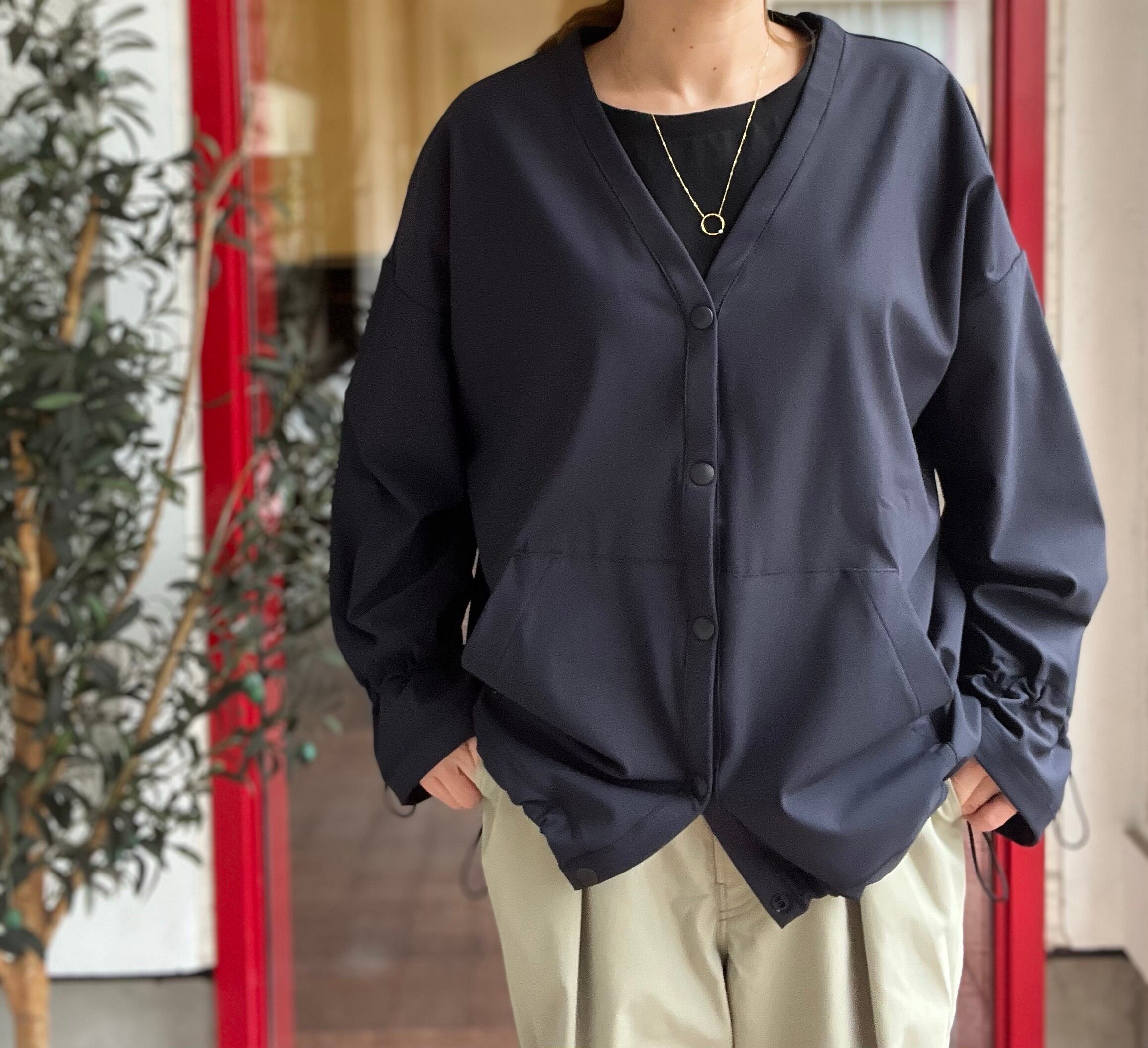 袖のストリングスでたくし上げても止まりが良く、ボリューム調整も可能です