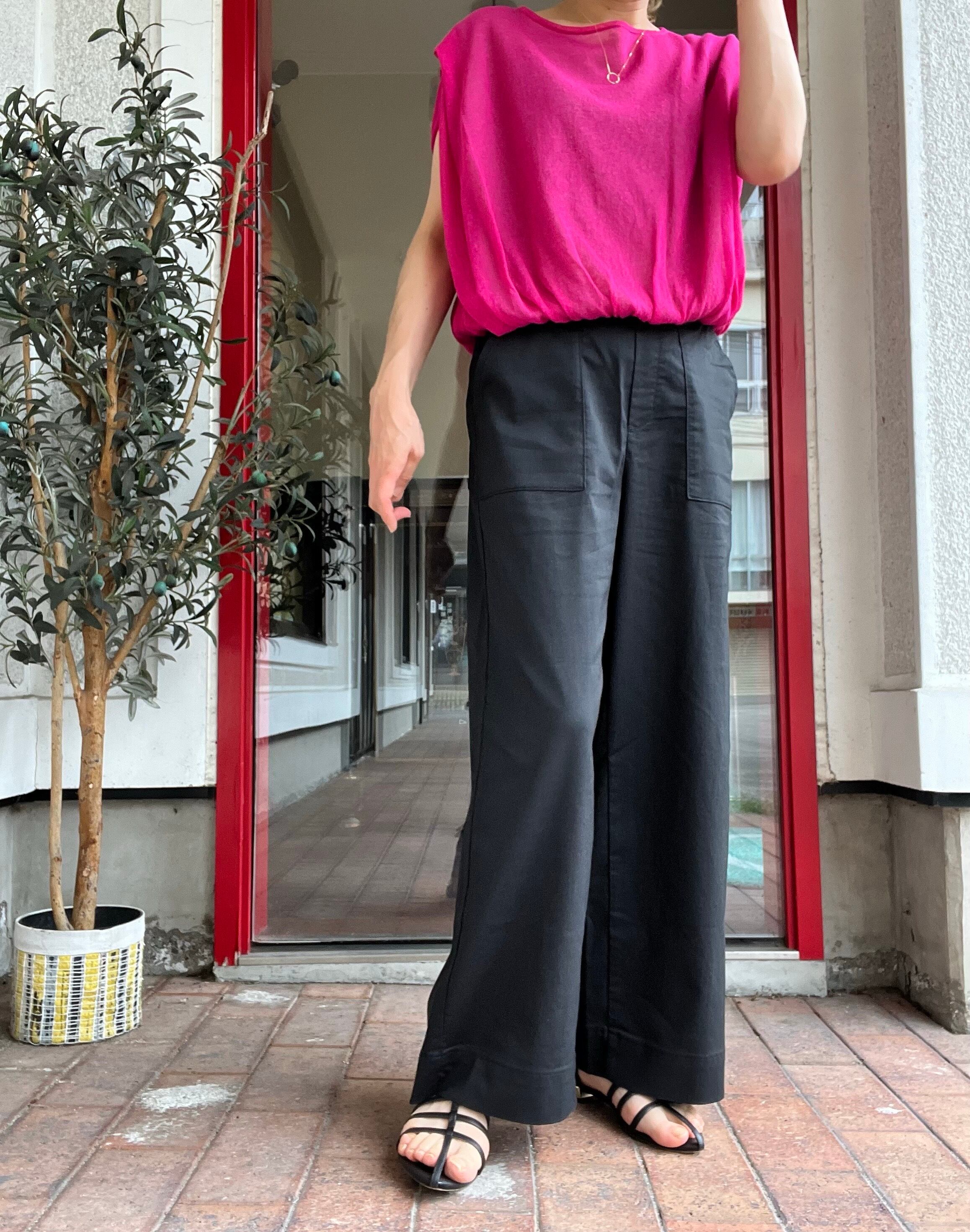 夏でも快適に過ごせる麻素材のアンクル丈のワイドパンツ
