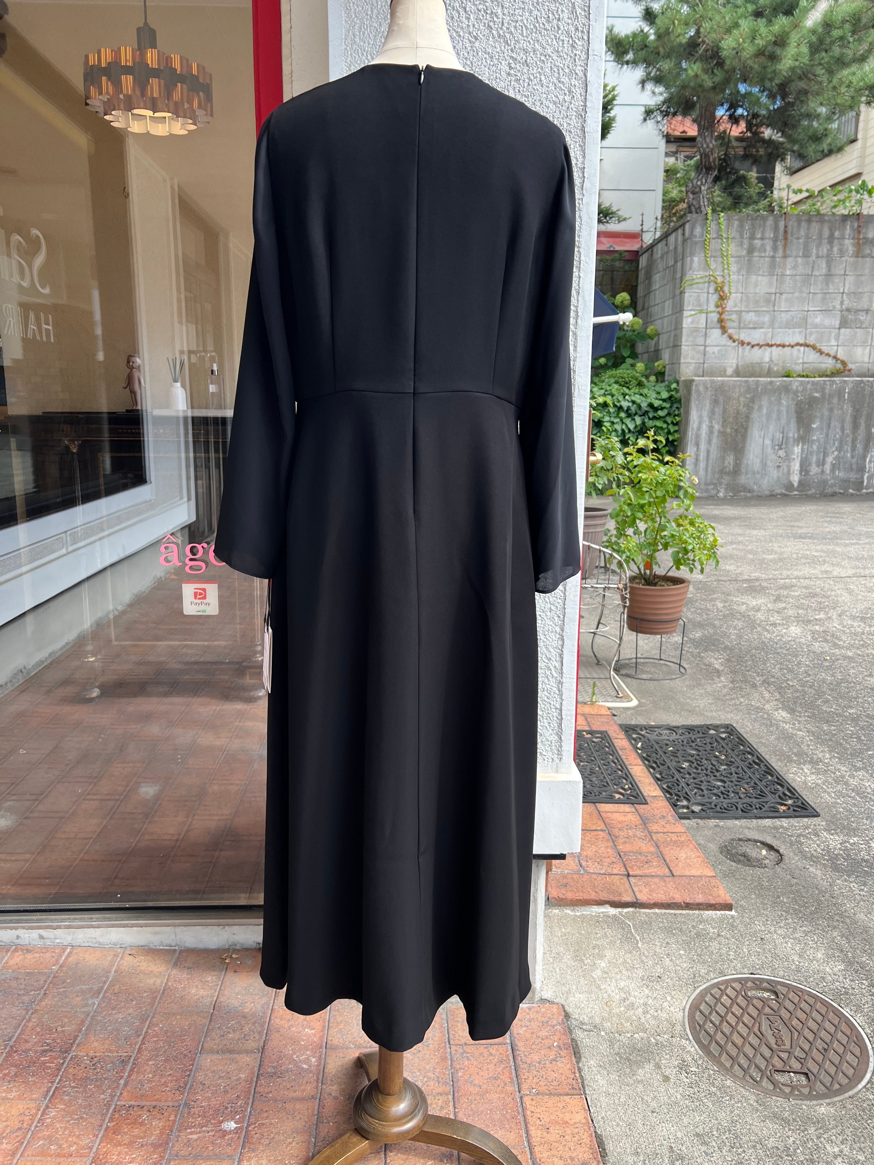 kaene ブラックフォーマルシフォン合わせロングワンピース
