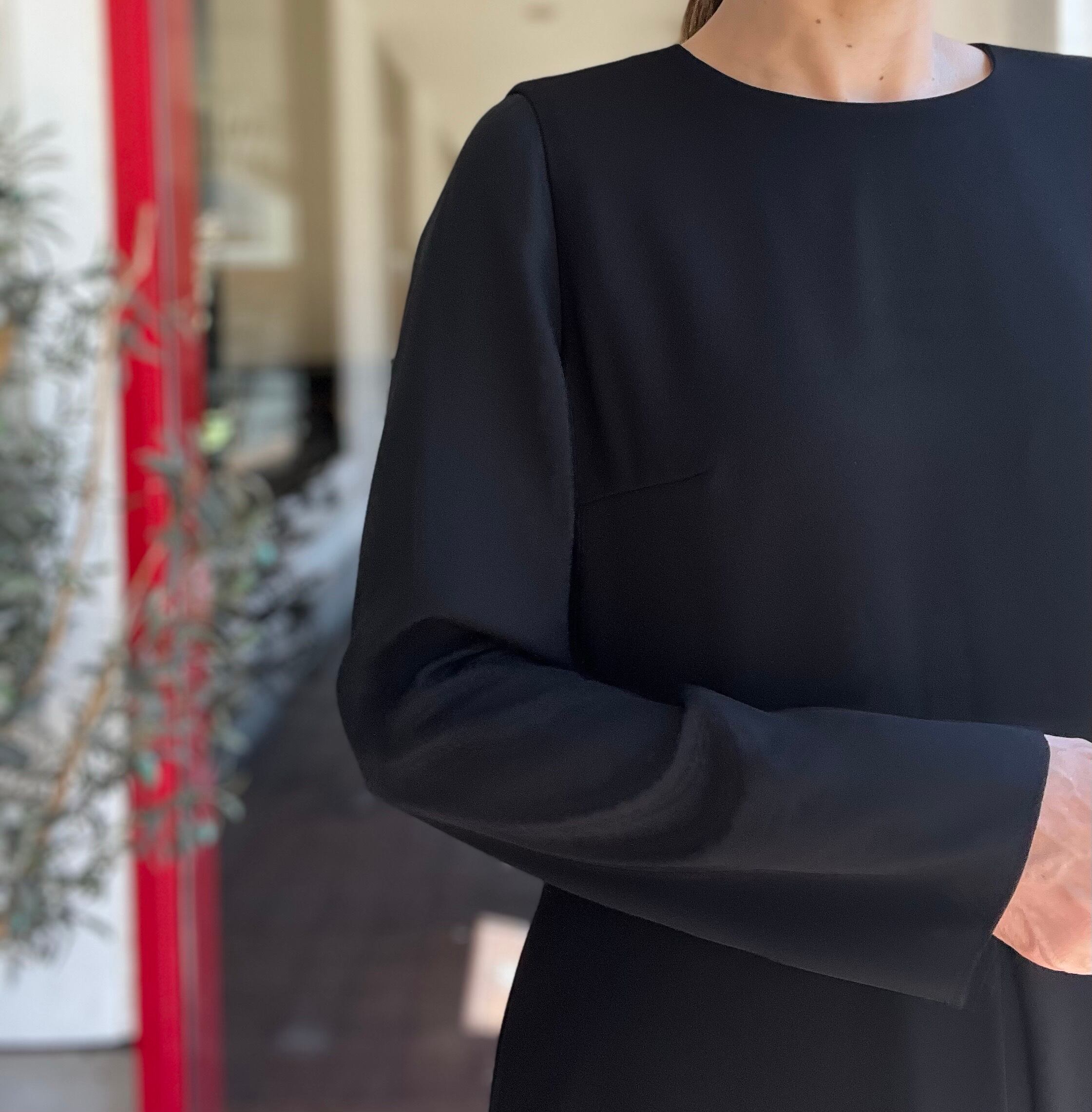 袖部分のみ肌が透けない濃さのシフォンを使用しております