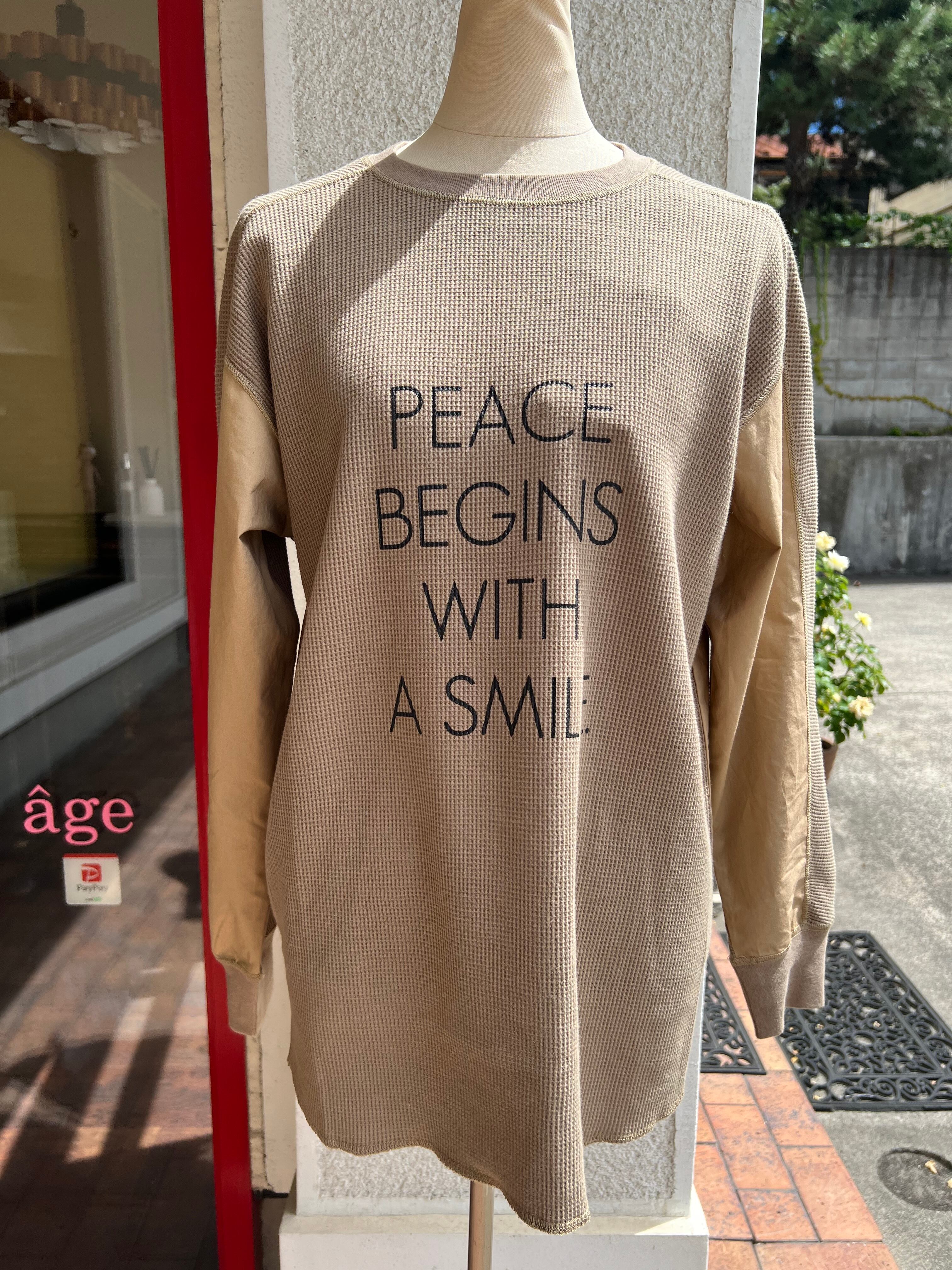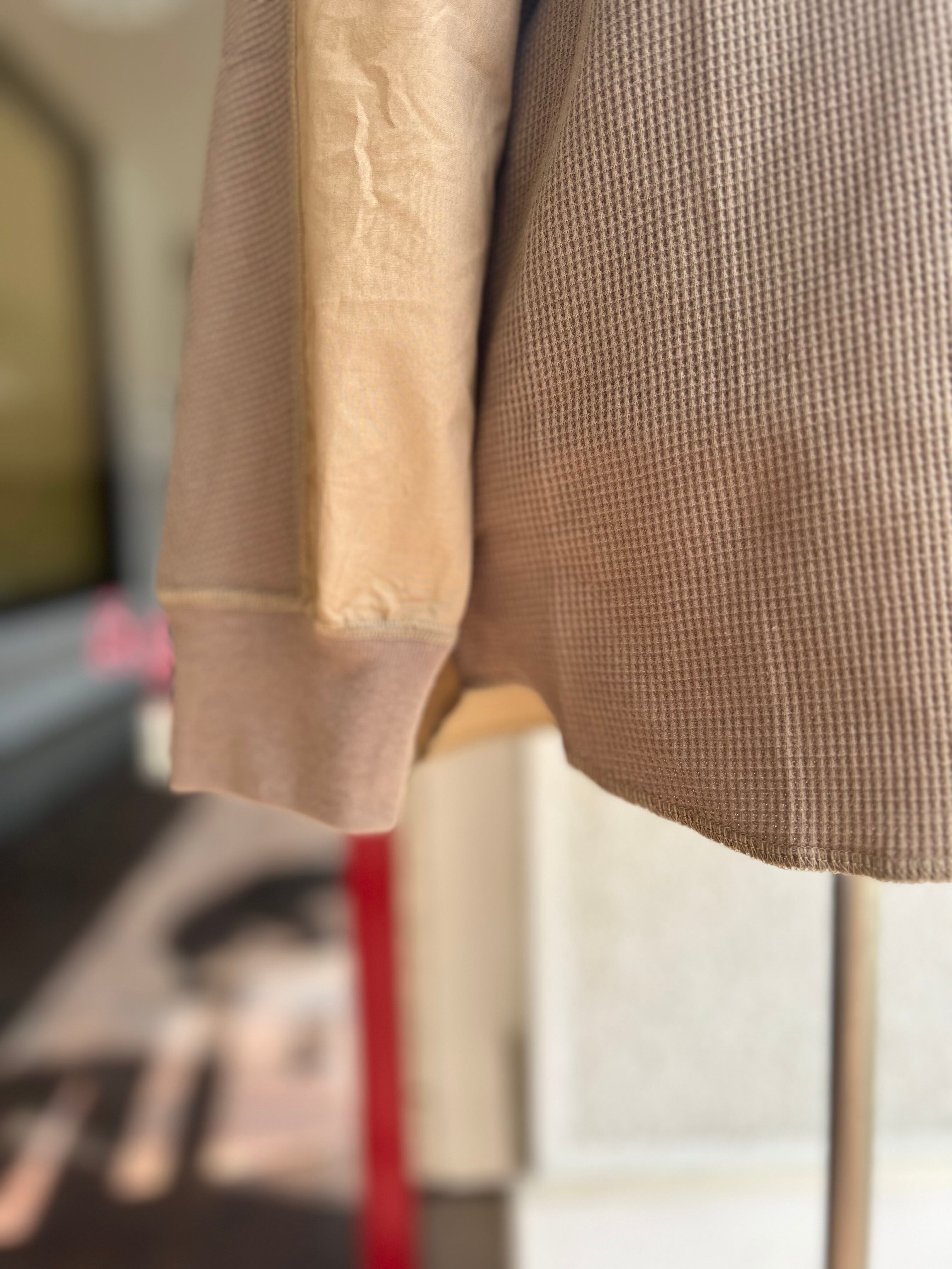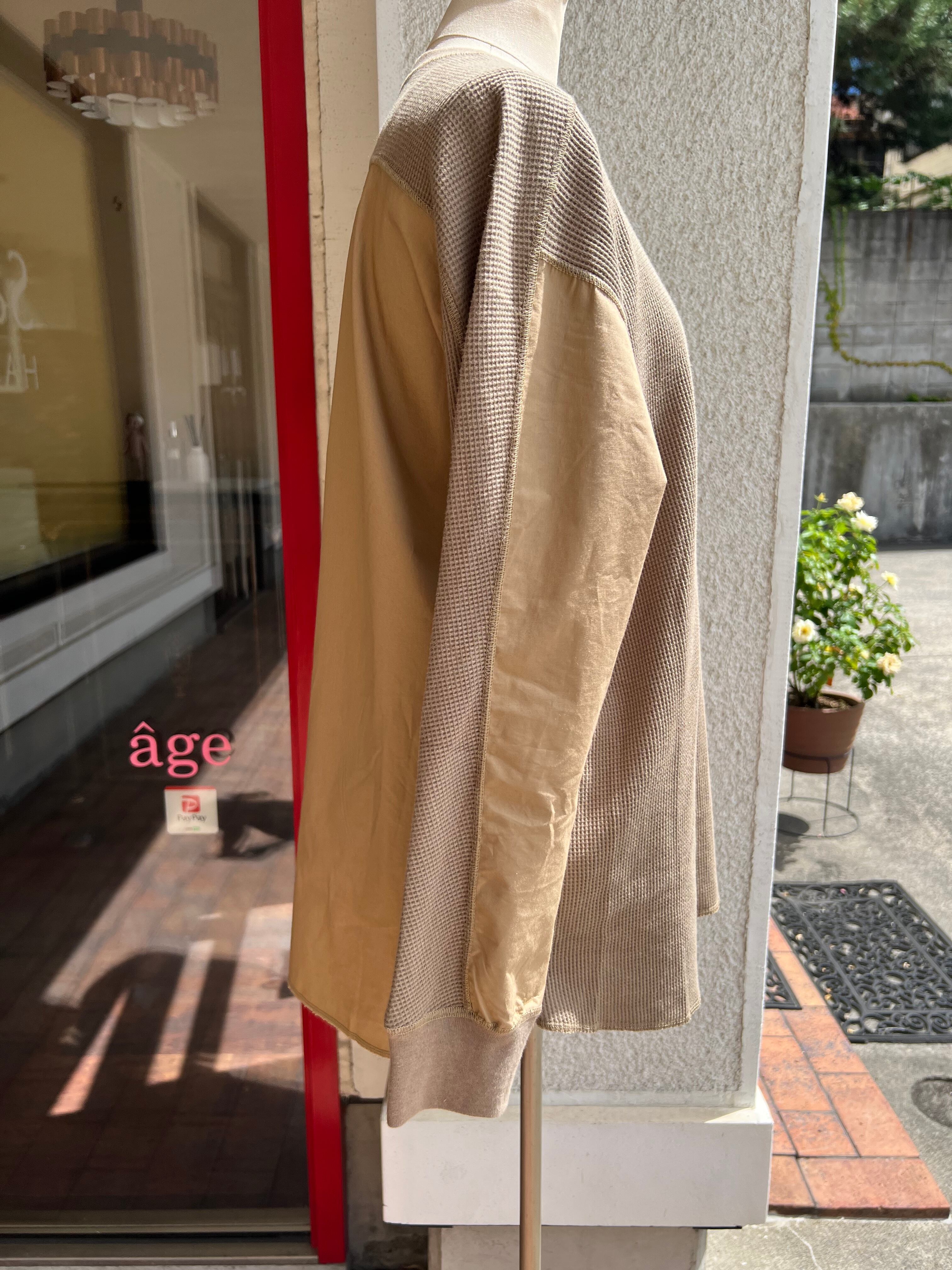 軽量なワッフル生地と布帛生地の切り替えカットソー