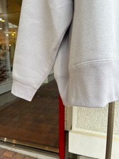 アームが広くオーバーシルエットのヒップが隠れる丈なので