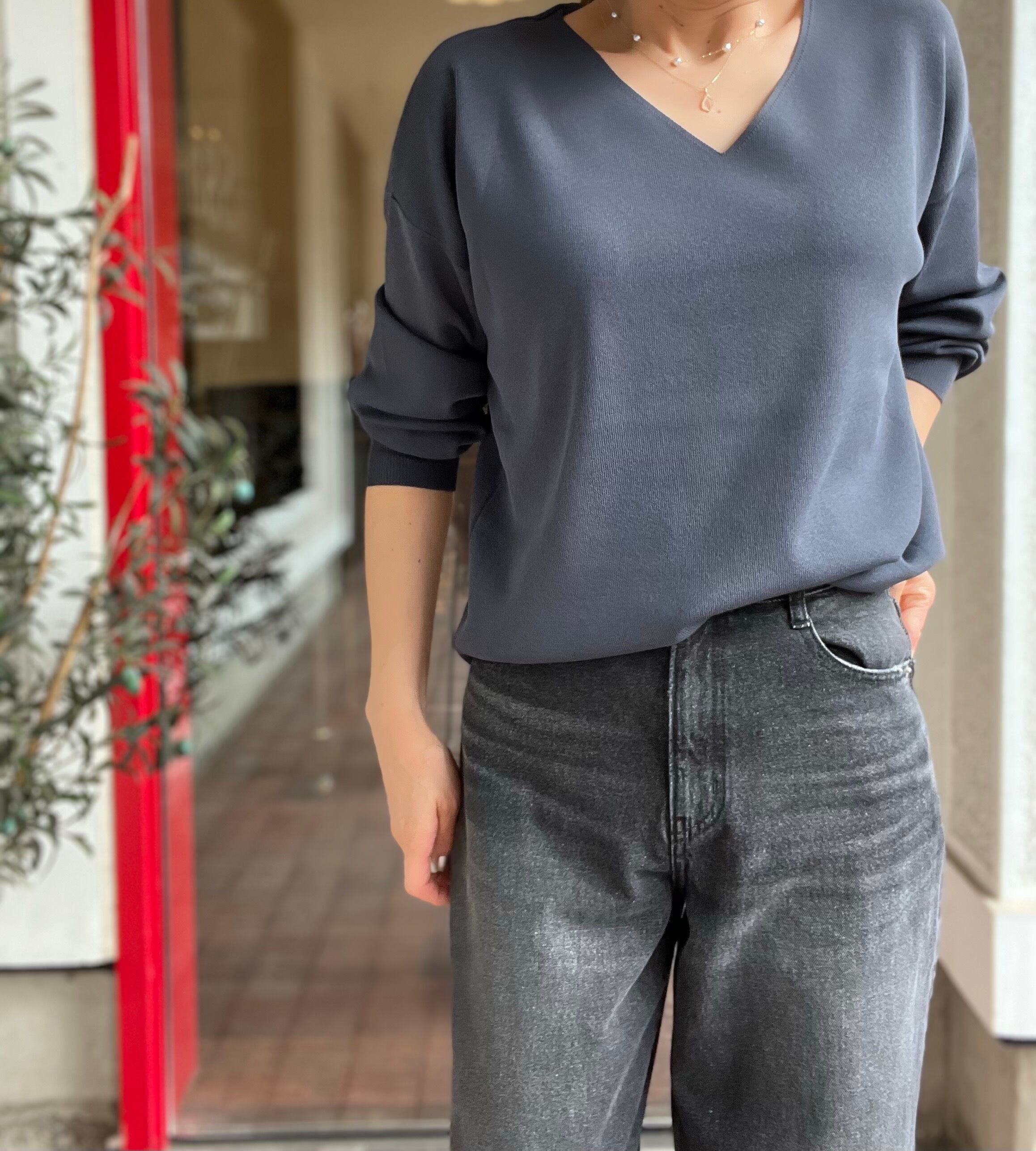 ディニテコリエの定番、サーブルストレッチシリーズのV襟プルオーバー