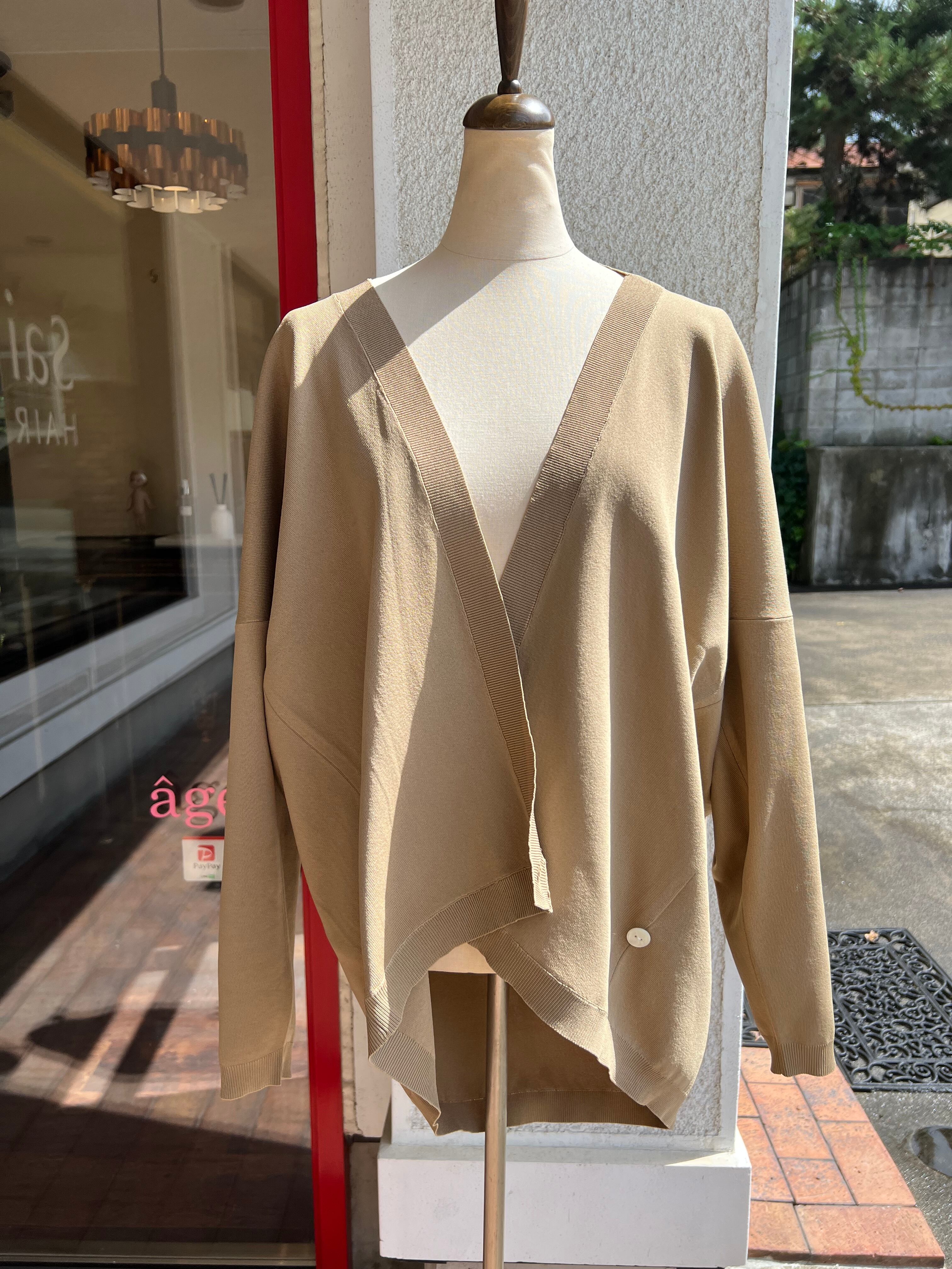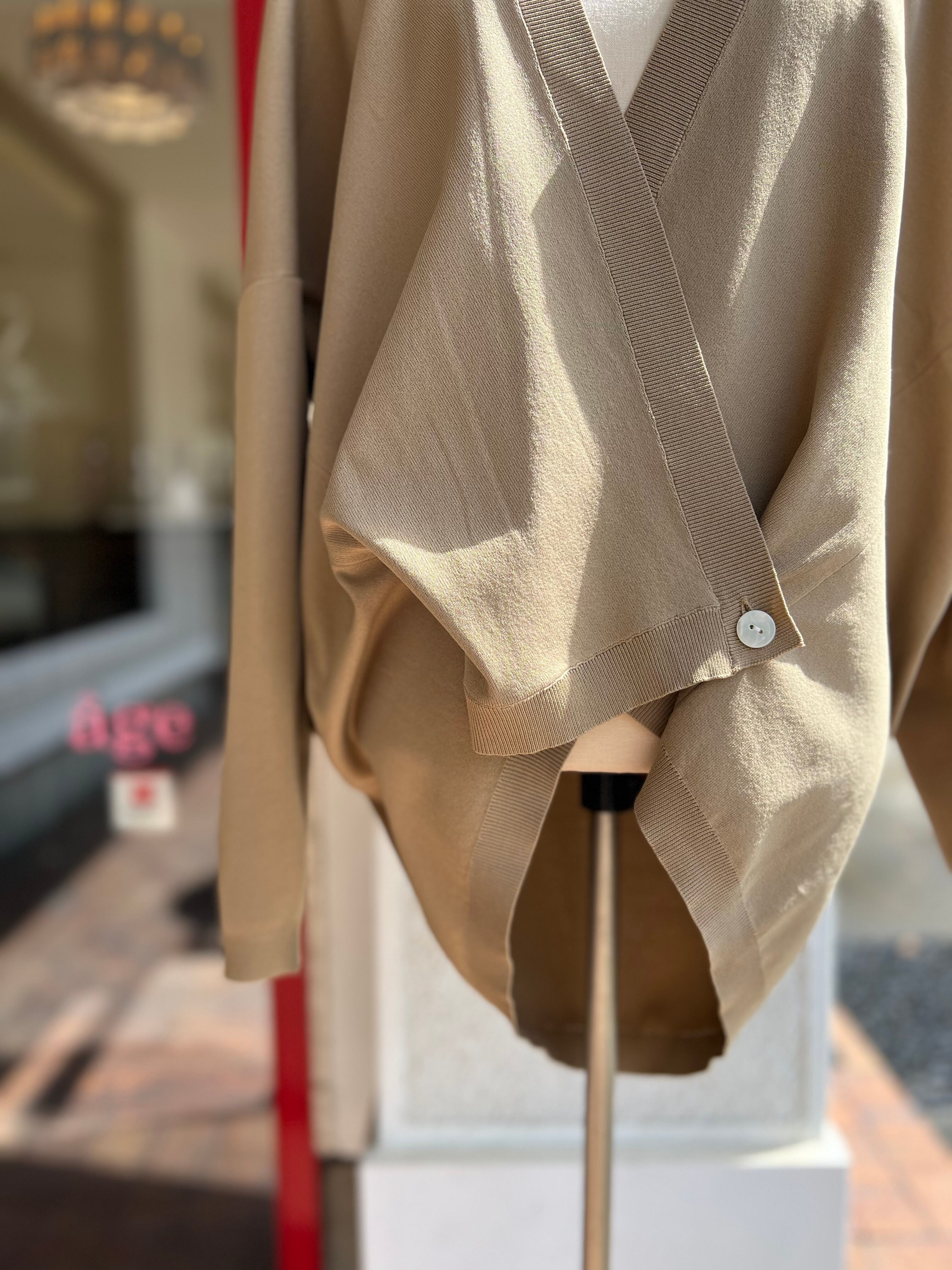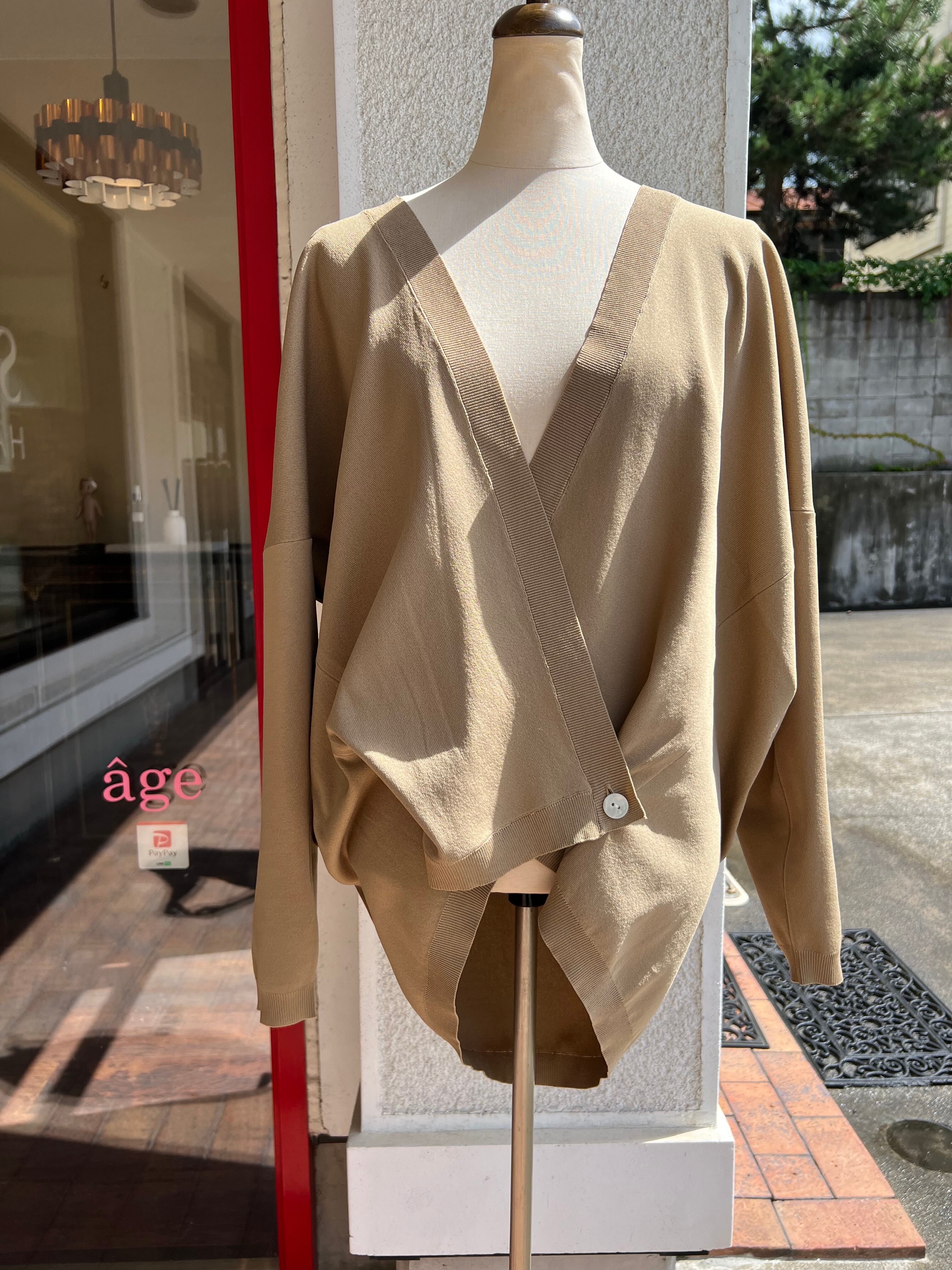 カーディガン、裾釦を留めてのカシュクールと2wayでの着用して頂けます