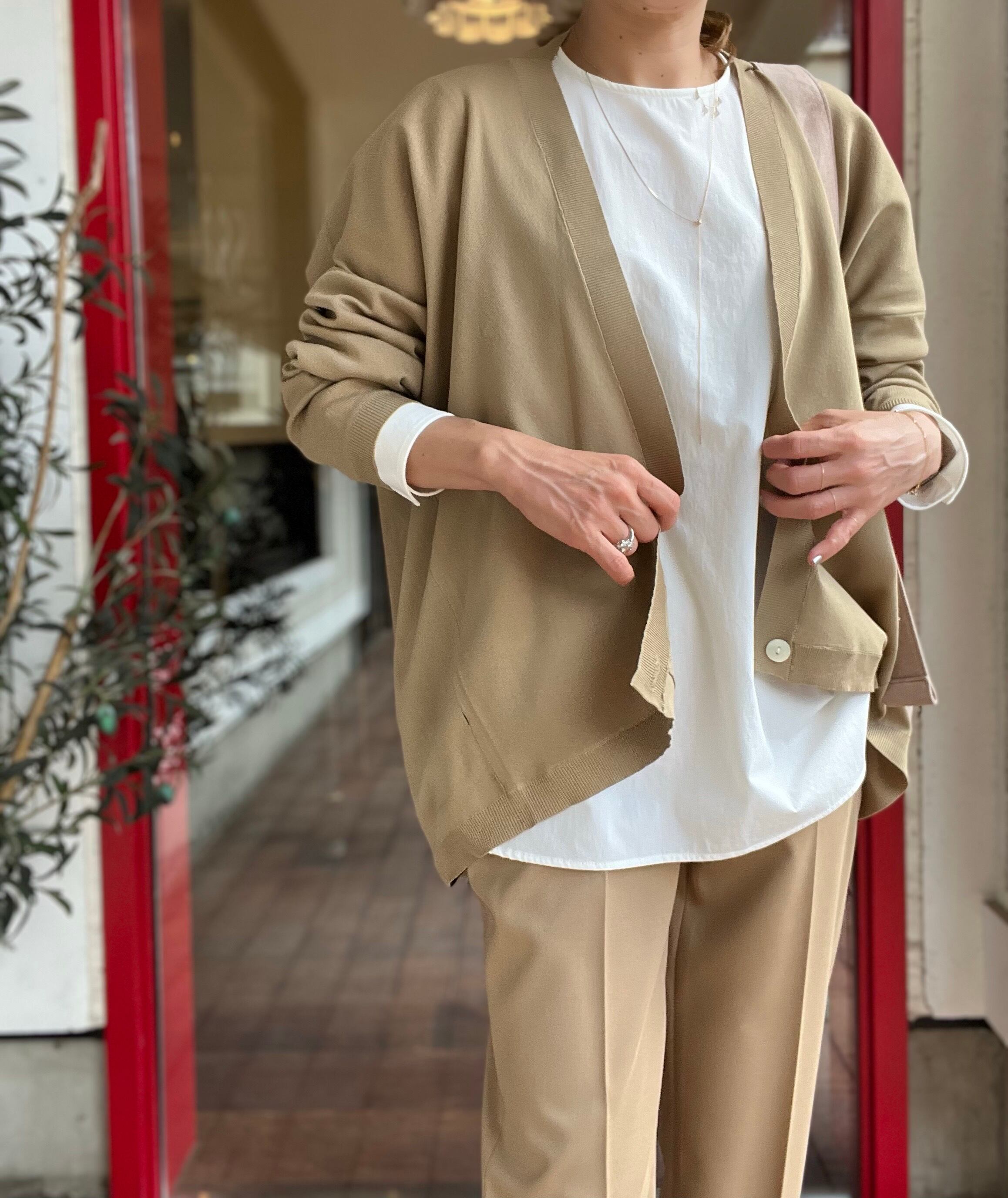 後ろ着丈長めでラフに着れるサイズ感ながら、きれいめ見えするカーディガン