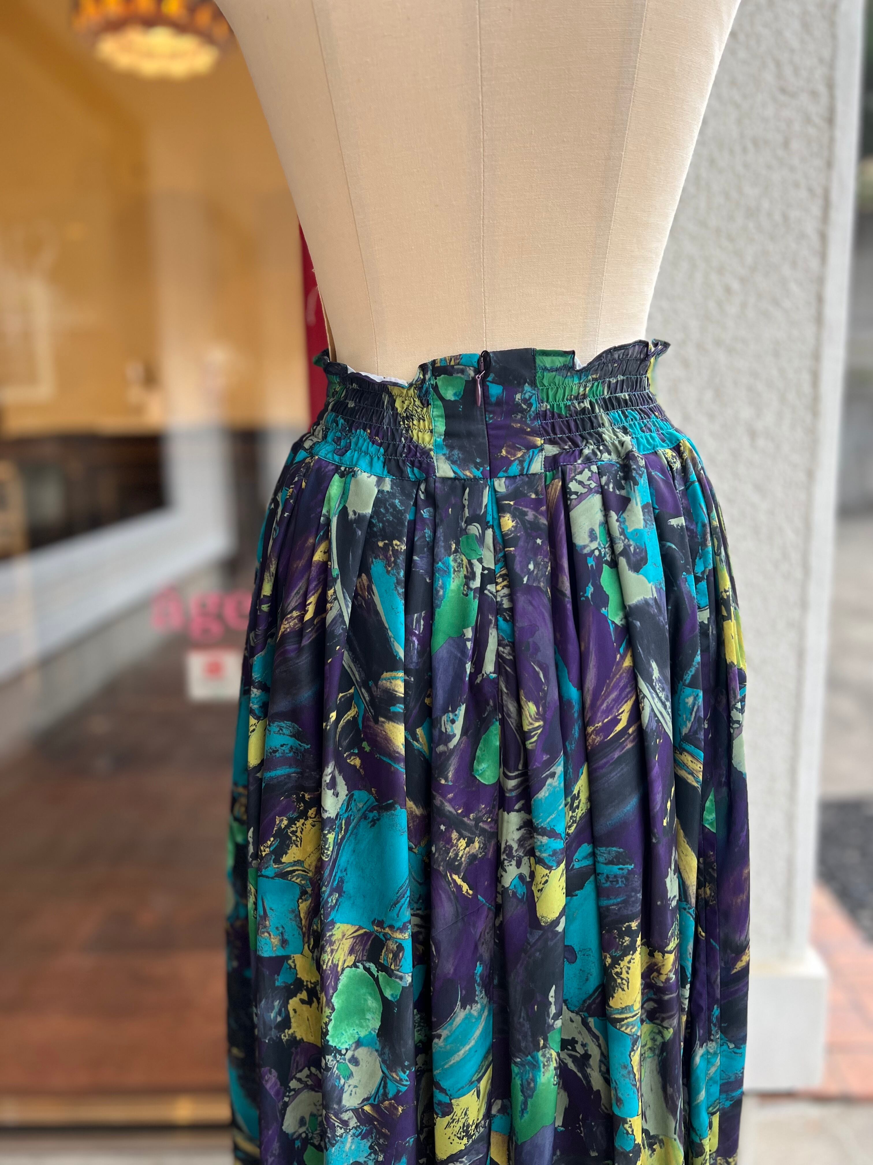 デシン生地にインポート図案をプリントしたイージーケアなスカート