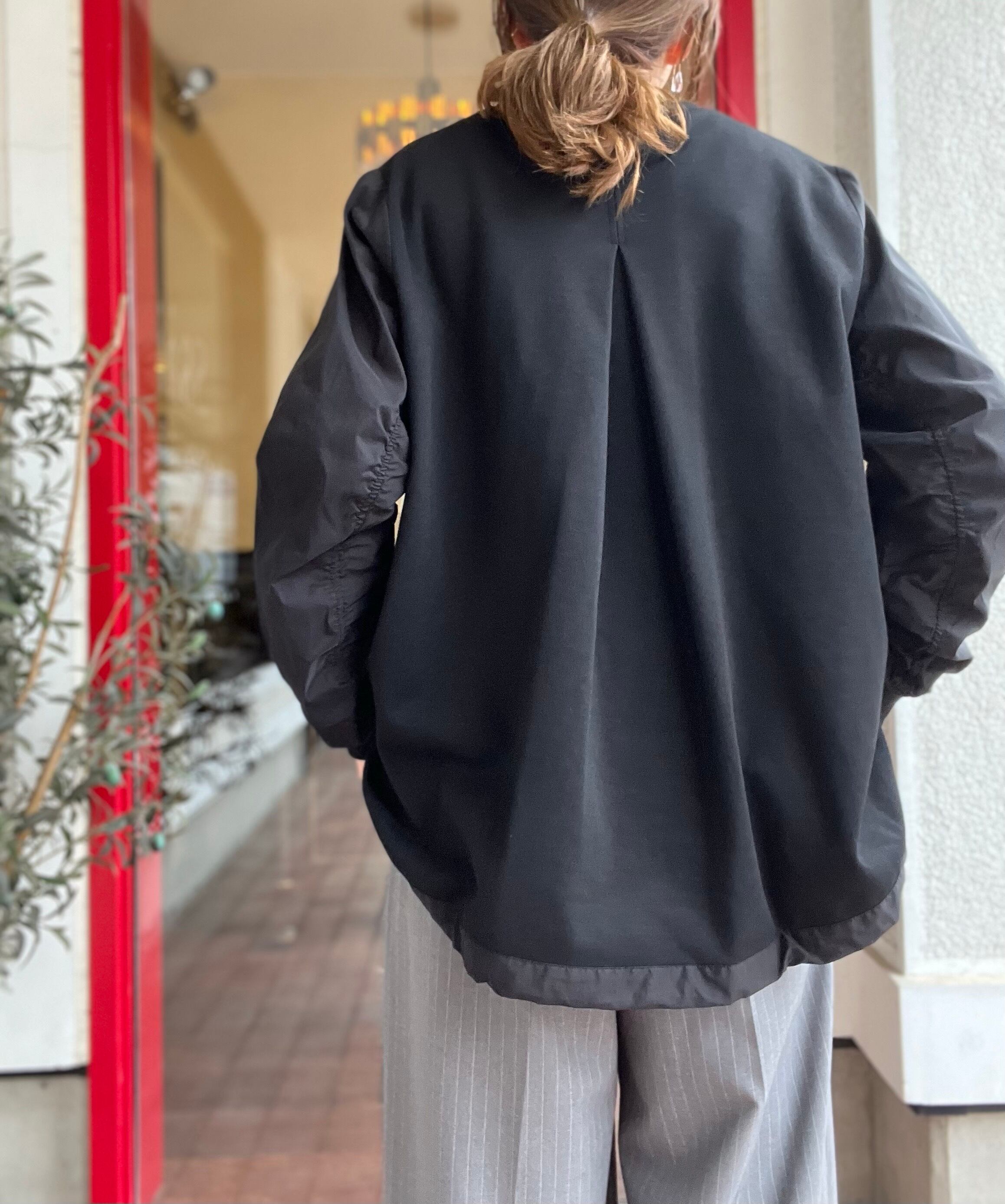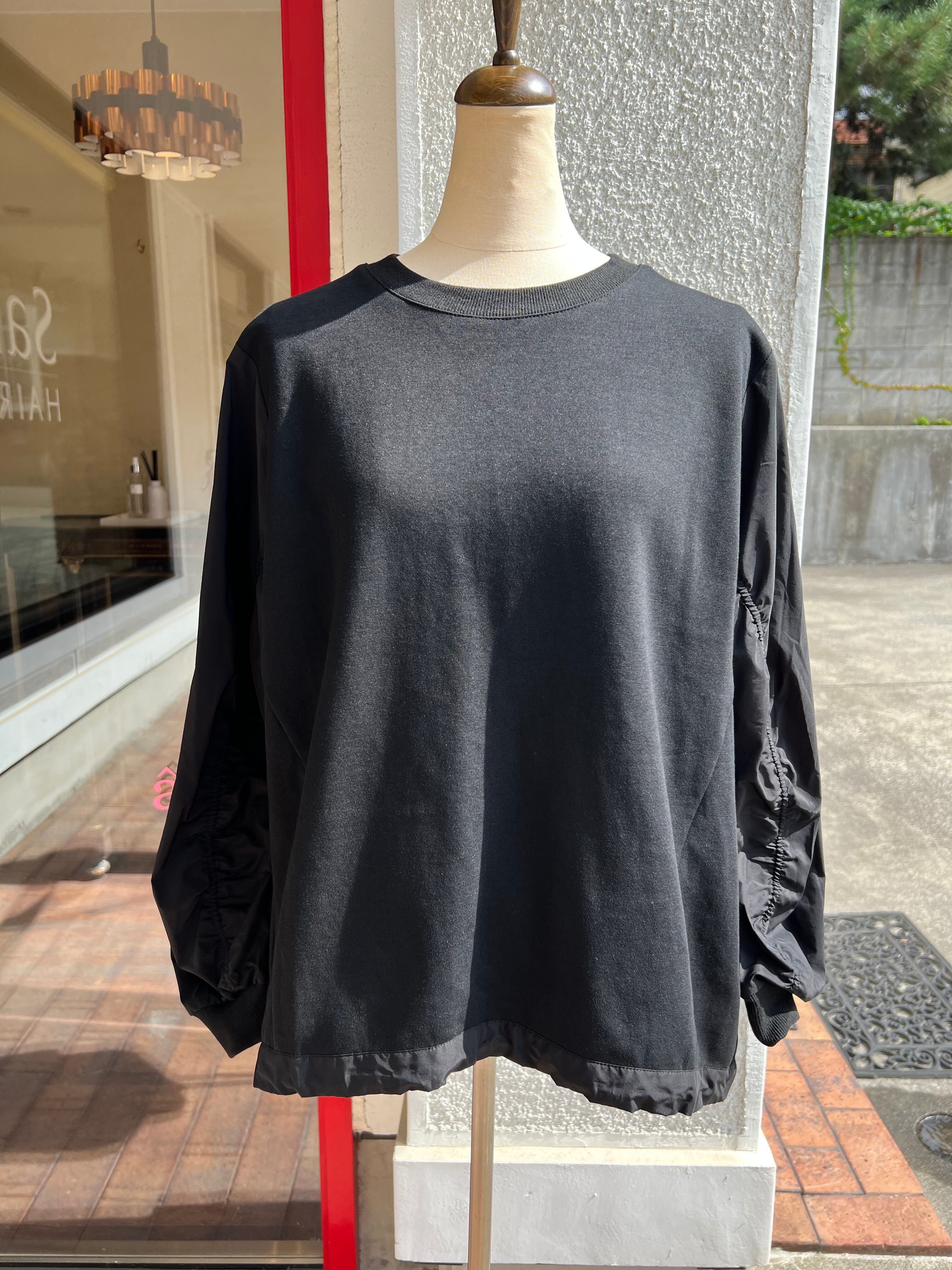 内側に布帛生地でシャーリングを効かせた立体感のあるスリーブが特徴の