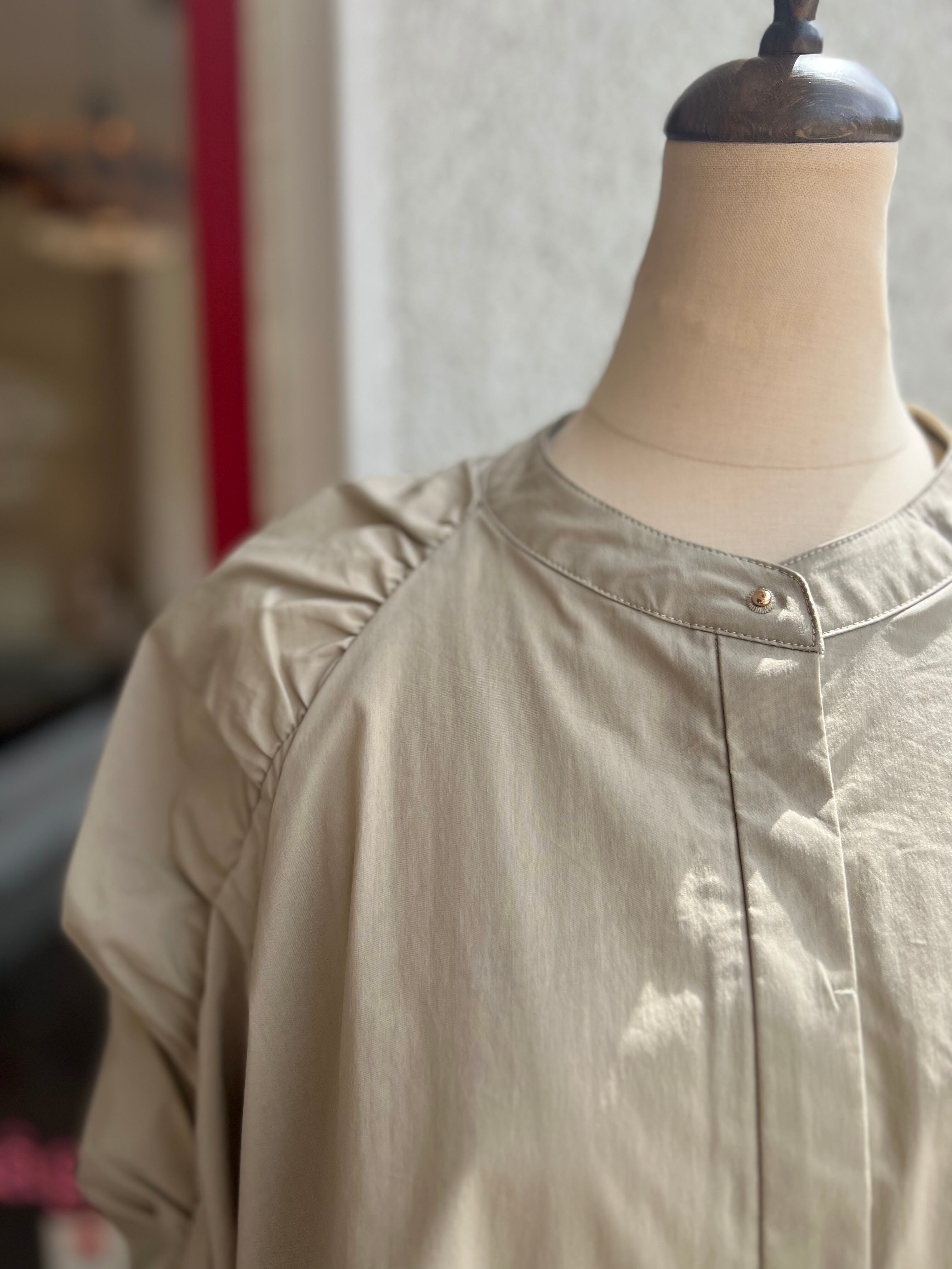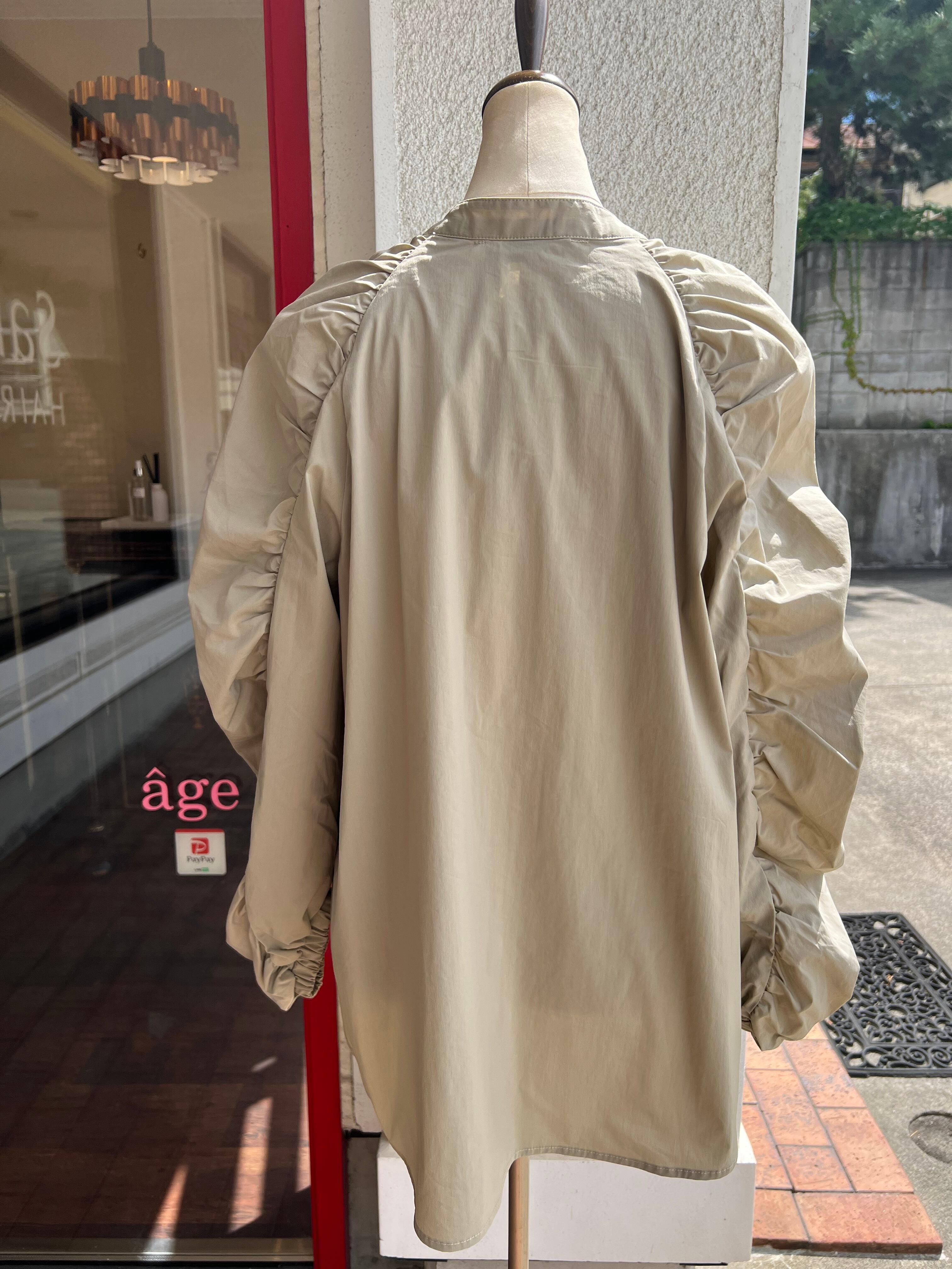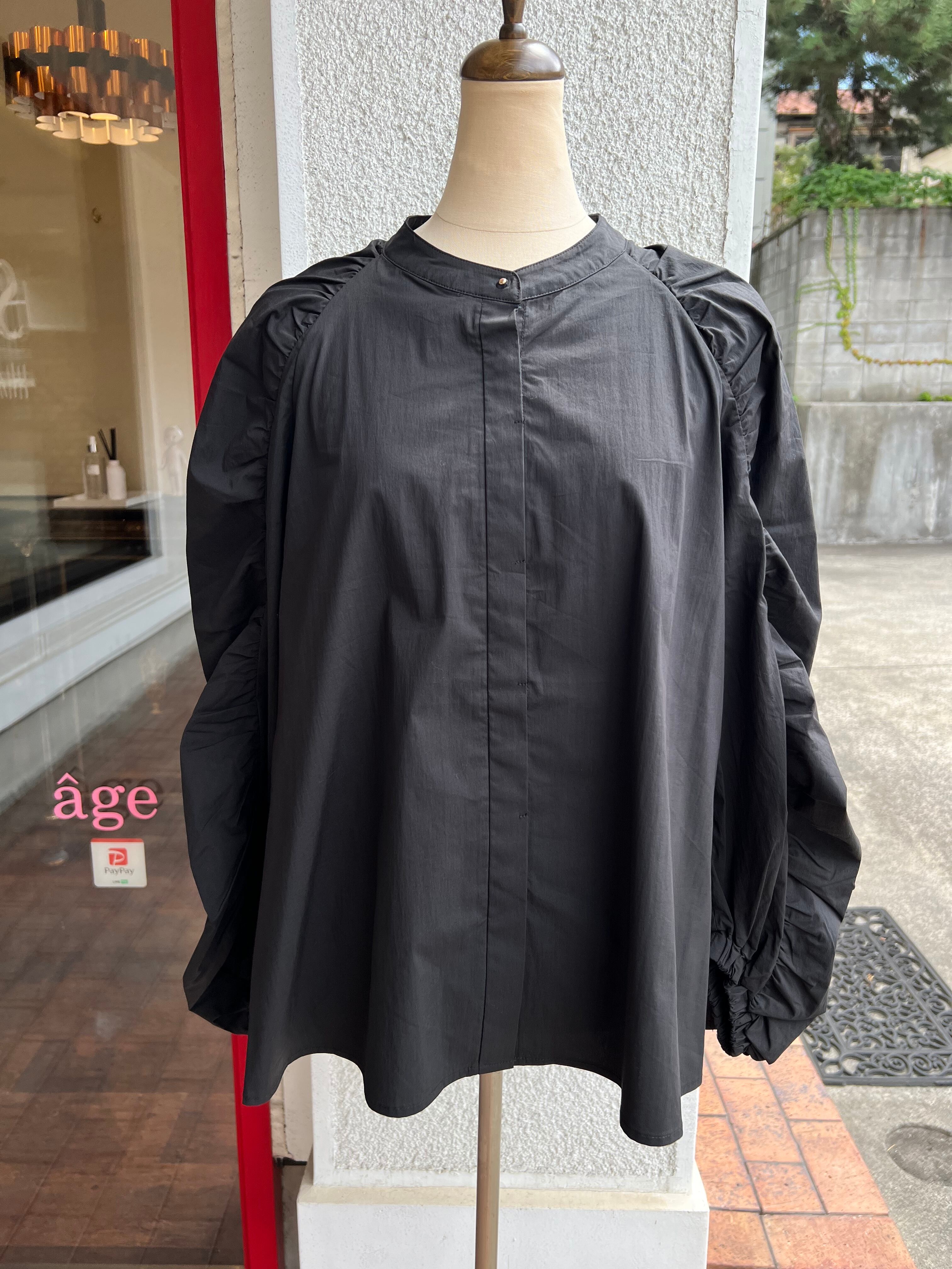 シンプルな身頃にギャザーたっぷりの立体的なスリーブが素敵なブラウス