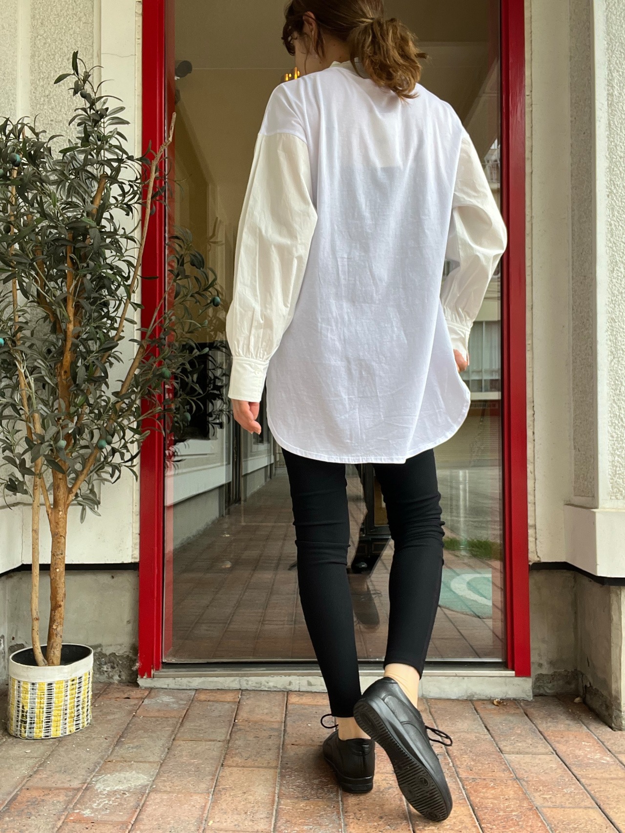 前後差ある着丈はふんわりとしたシルエットなので、着丈の短いニットやジレ、ジャケットとのレイヤードも楽しめます