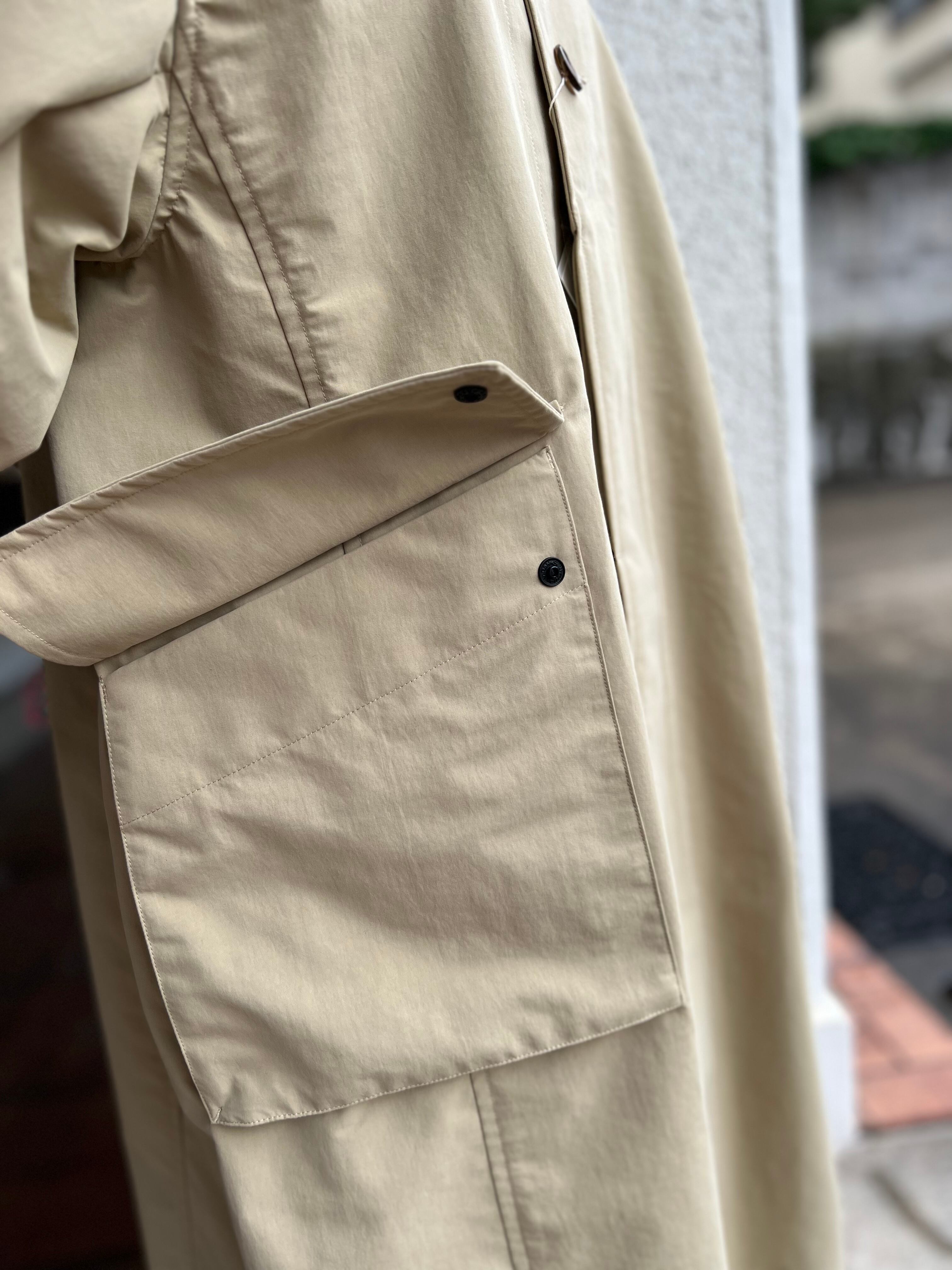 究極のコートとして機能すべく生地には特殊ポリウレタンフィルムを使用している3層構造ナイロンタフタを使用
