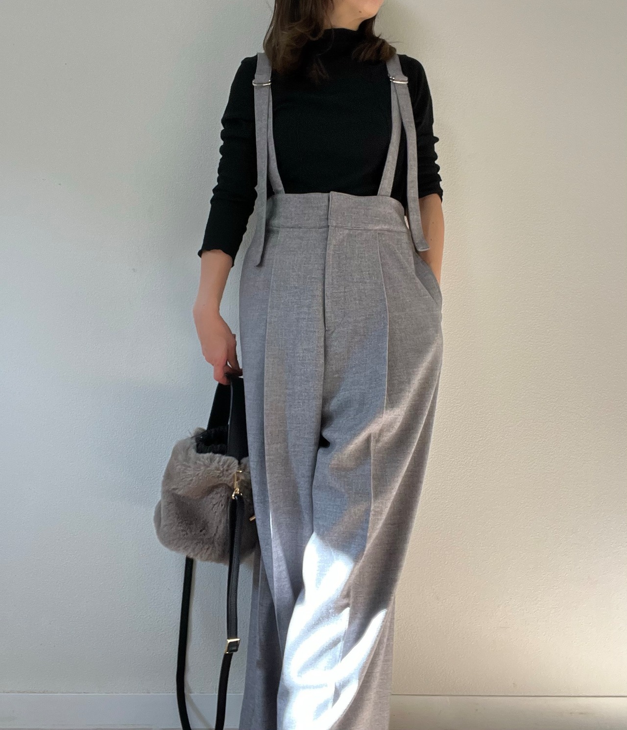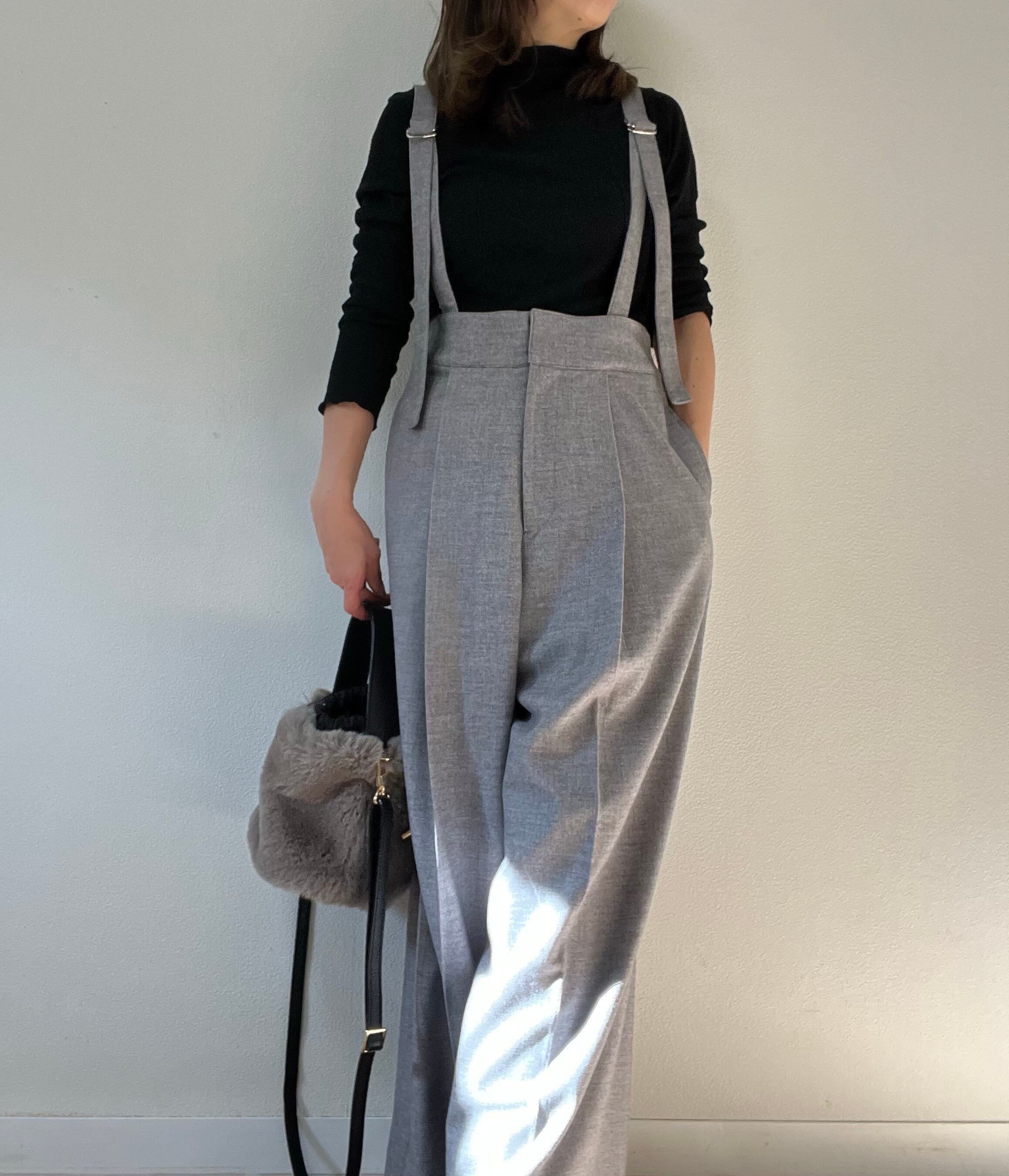 取り外し可能なサスペンダー付きワイドパンツ