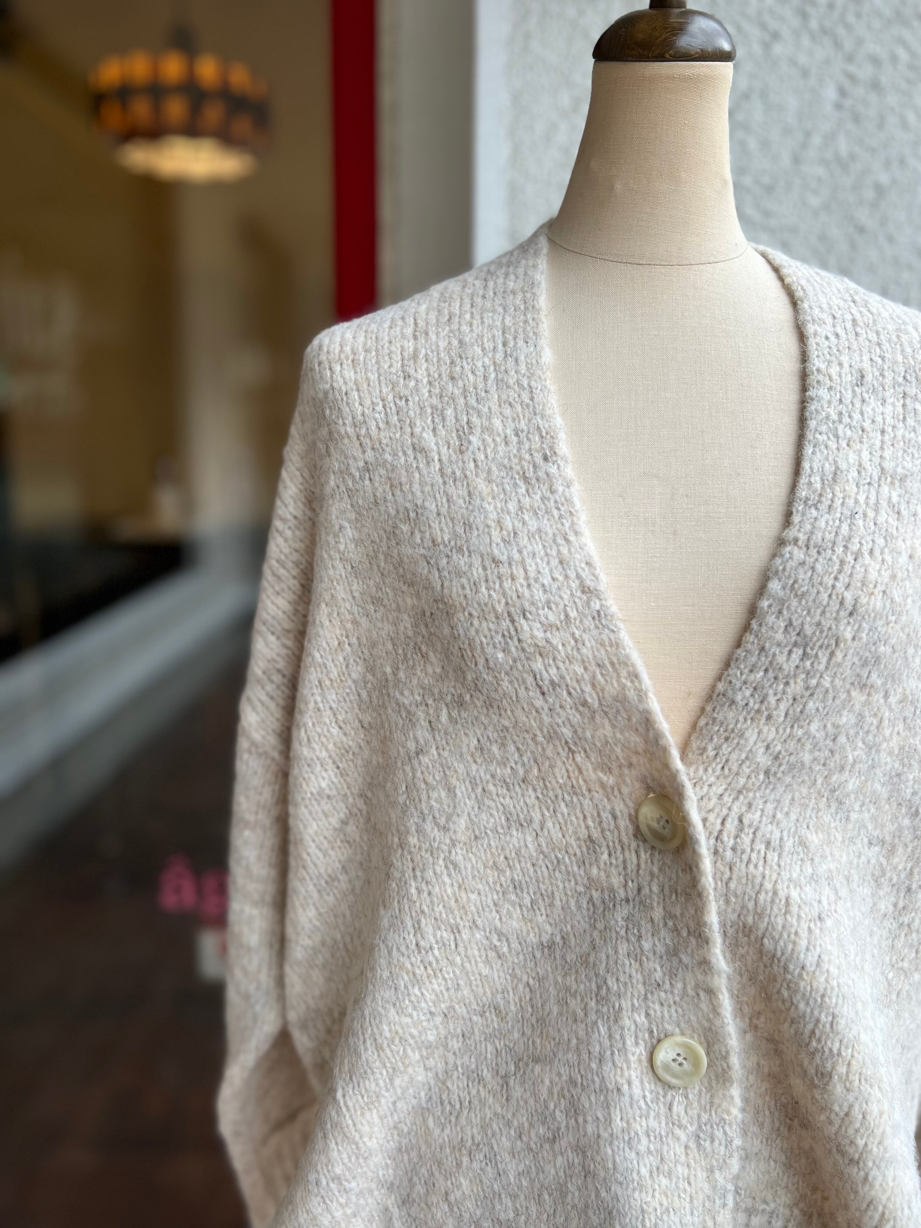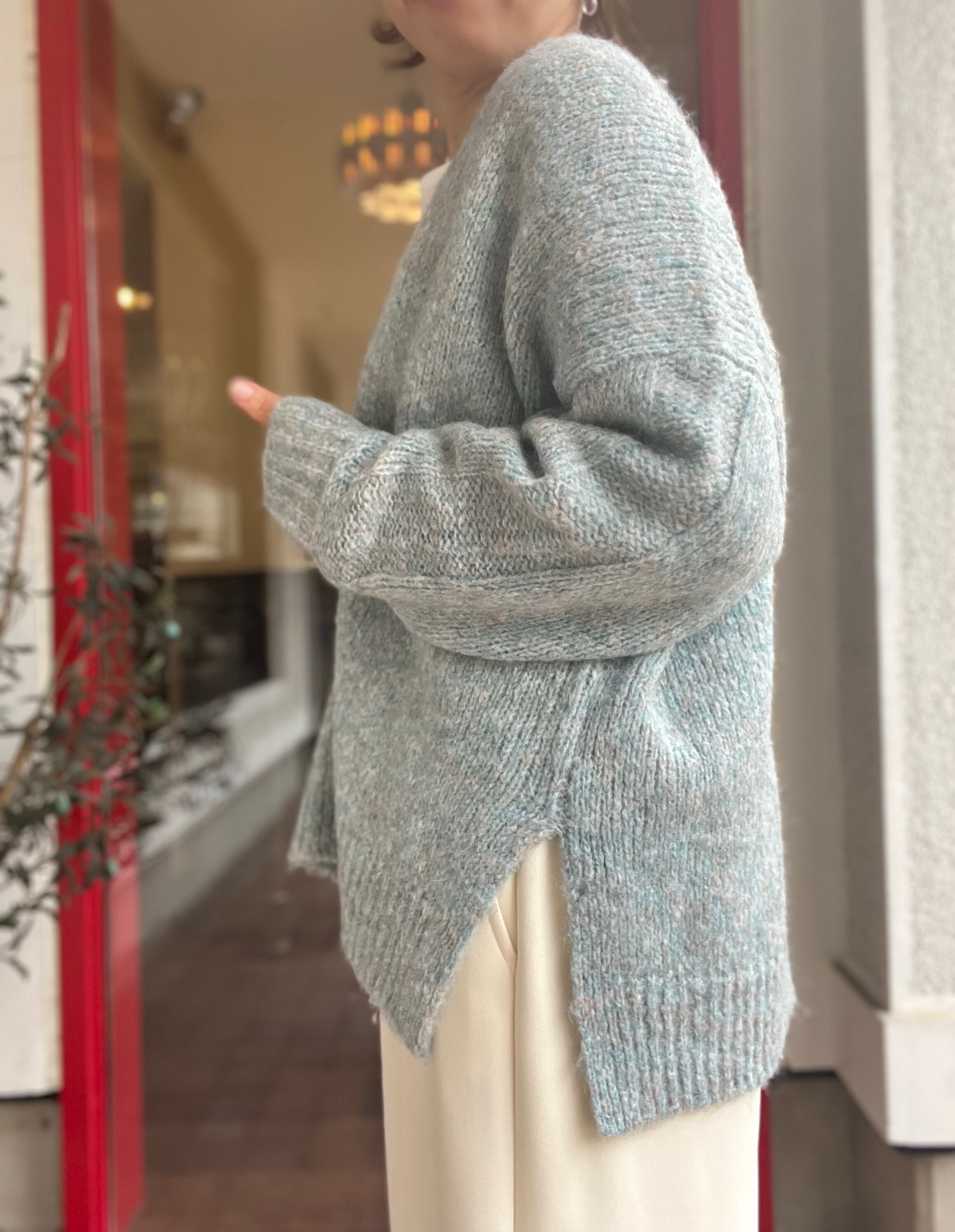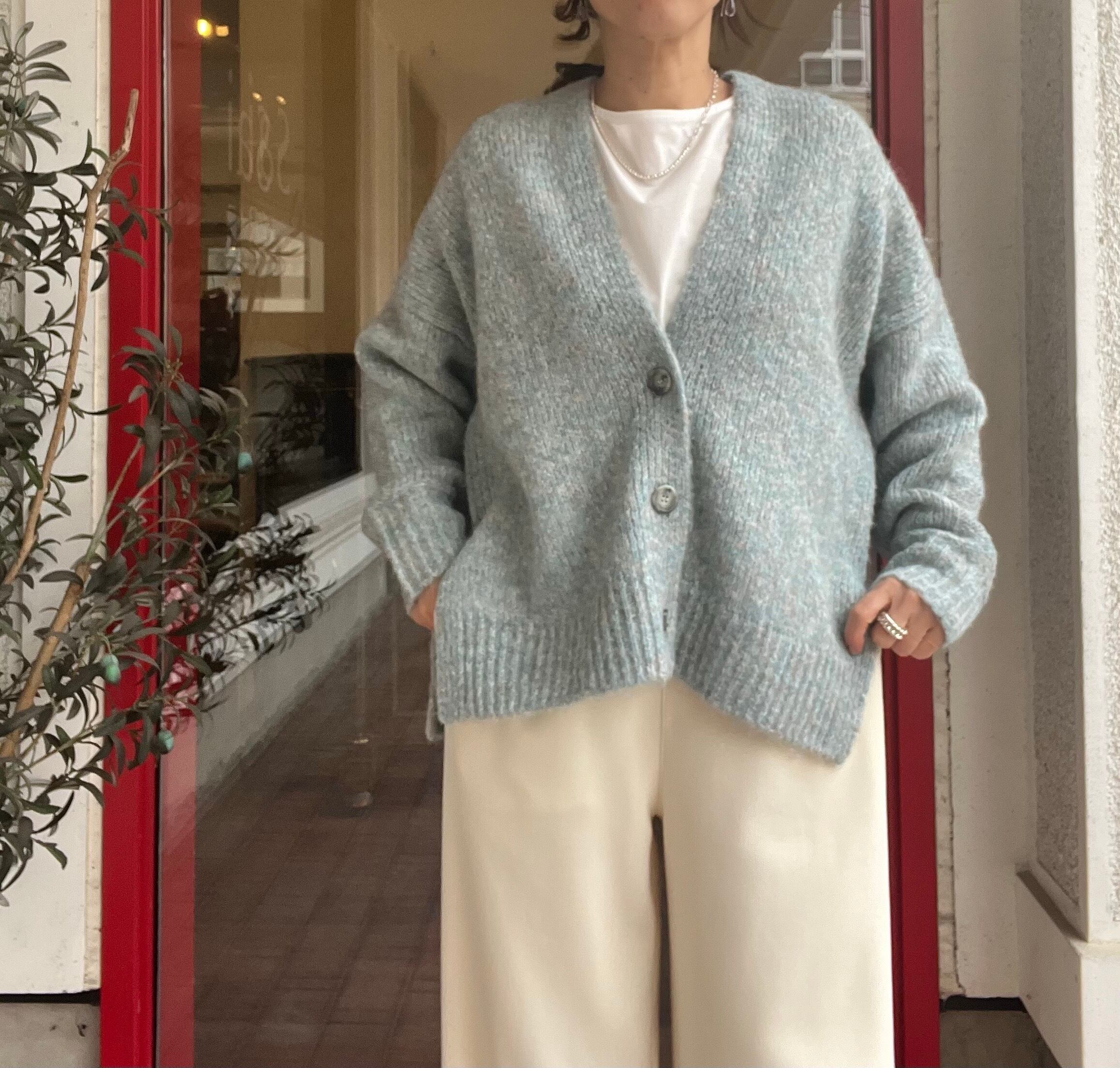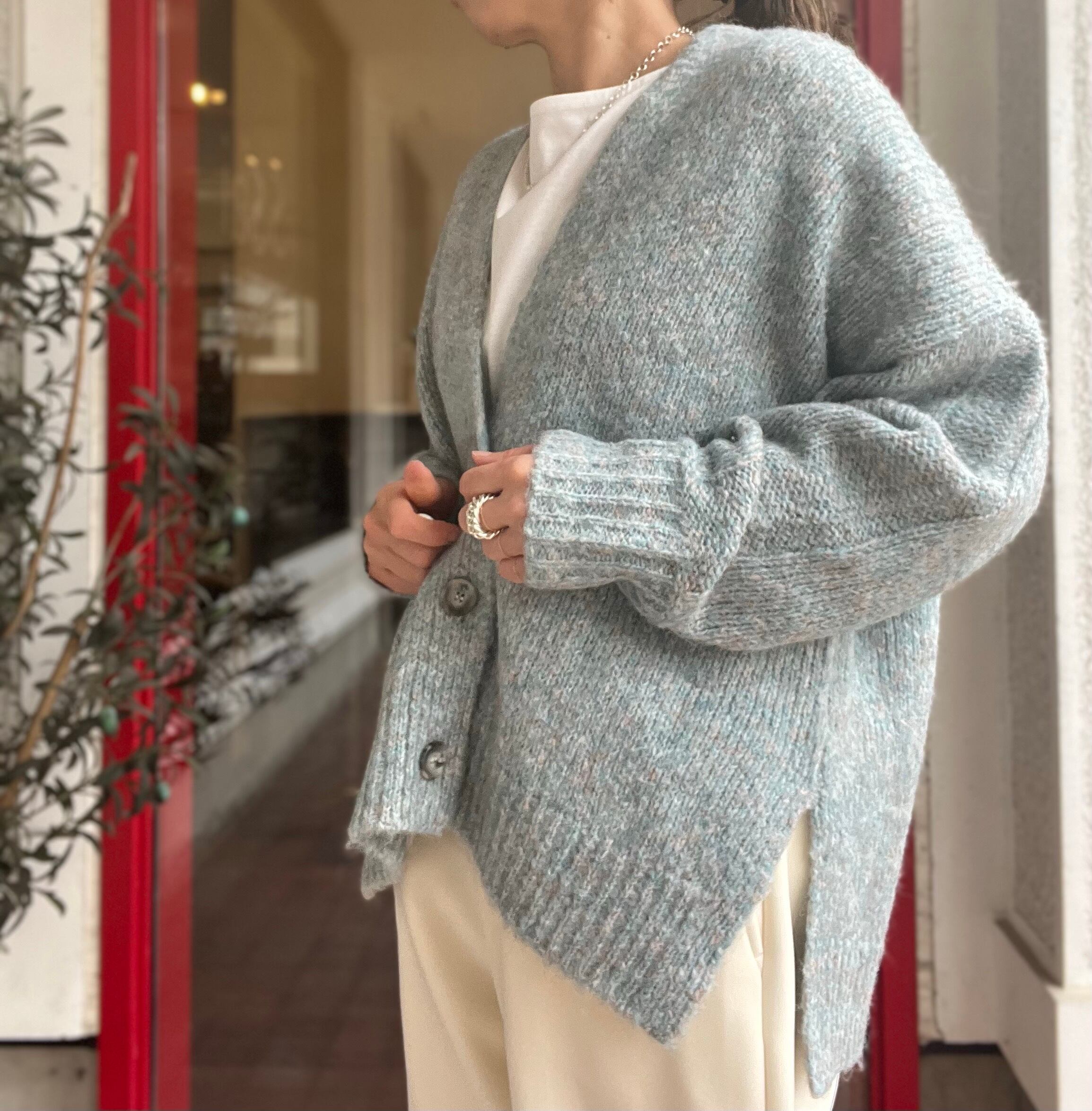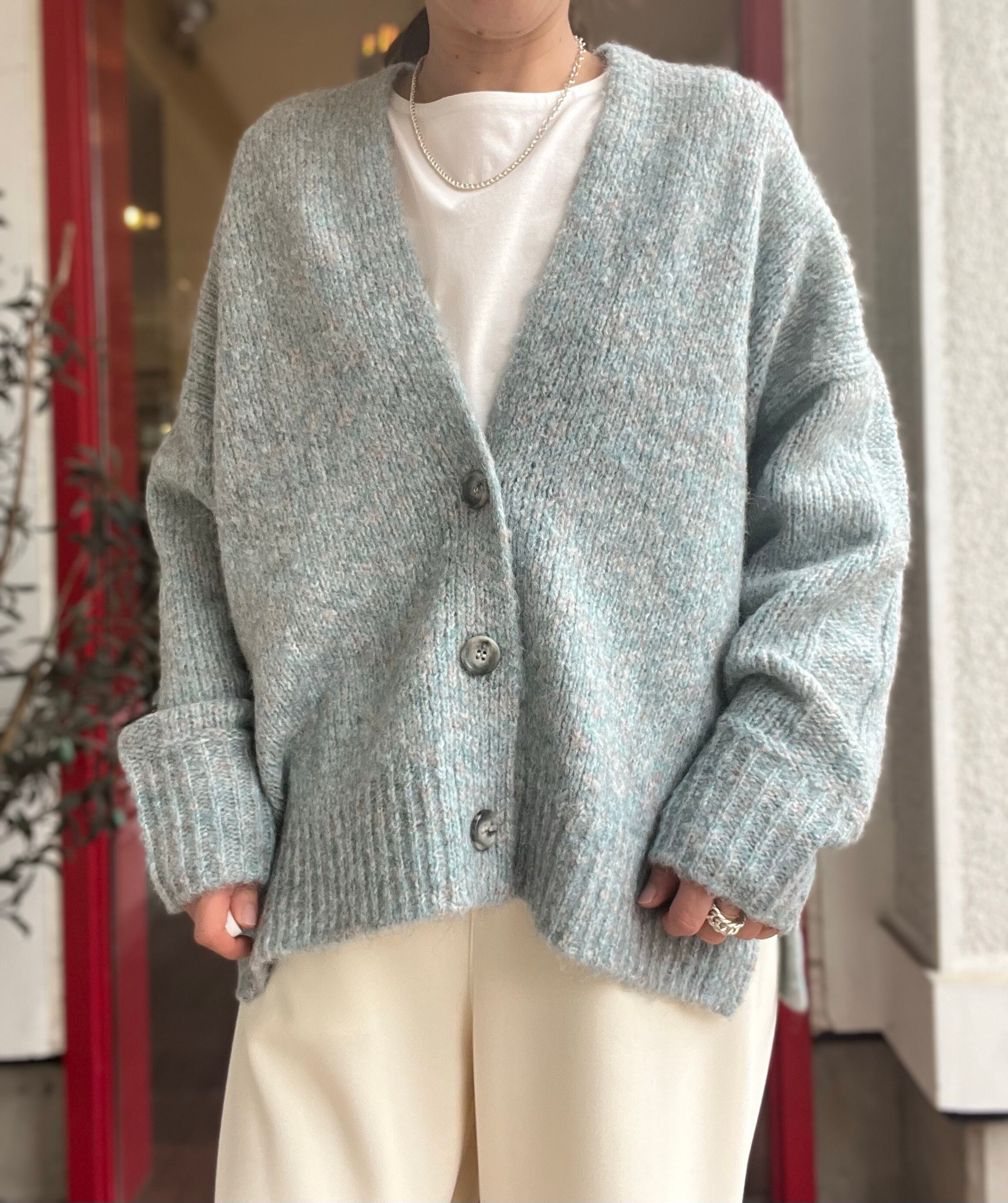 ざっくりとしたローゲージとキレイなミックスカラーが冬らしいカーディガン