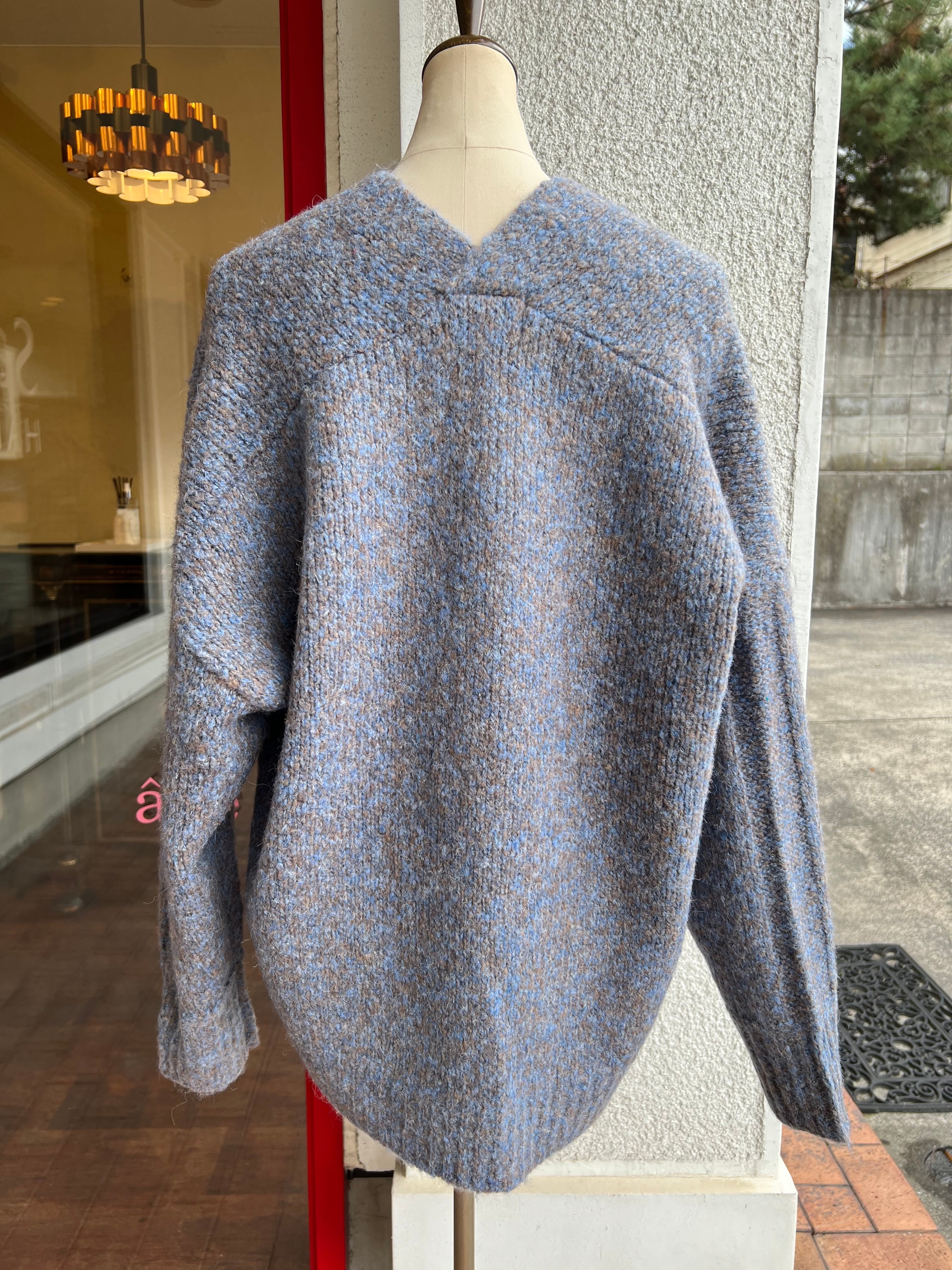 緩めに編んで、洗いを強めにかける事で毛羽が出てニュアンスのある色合いに仕上げています