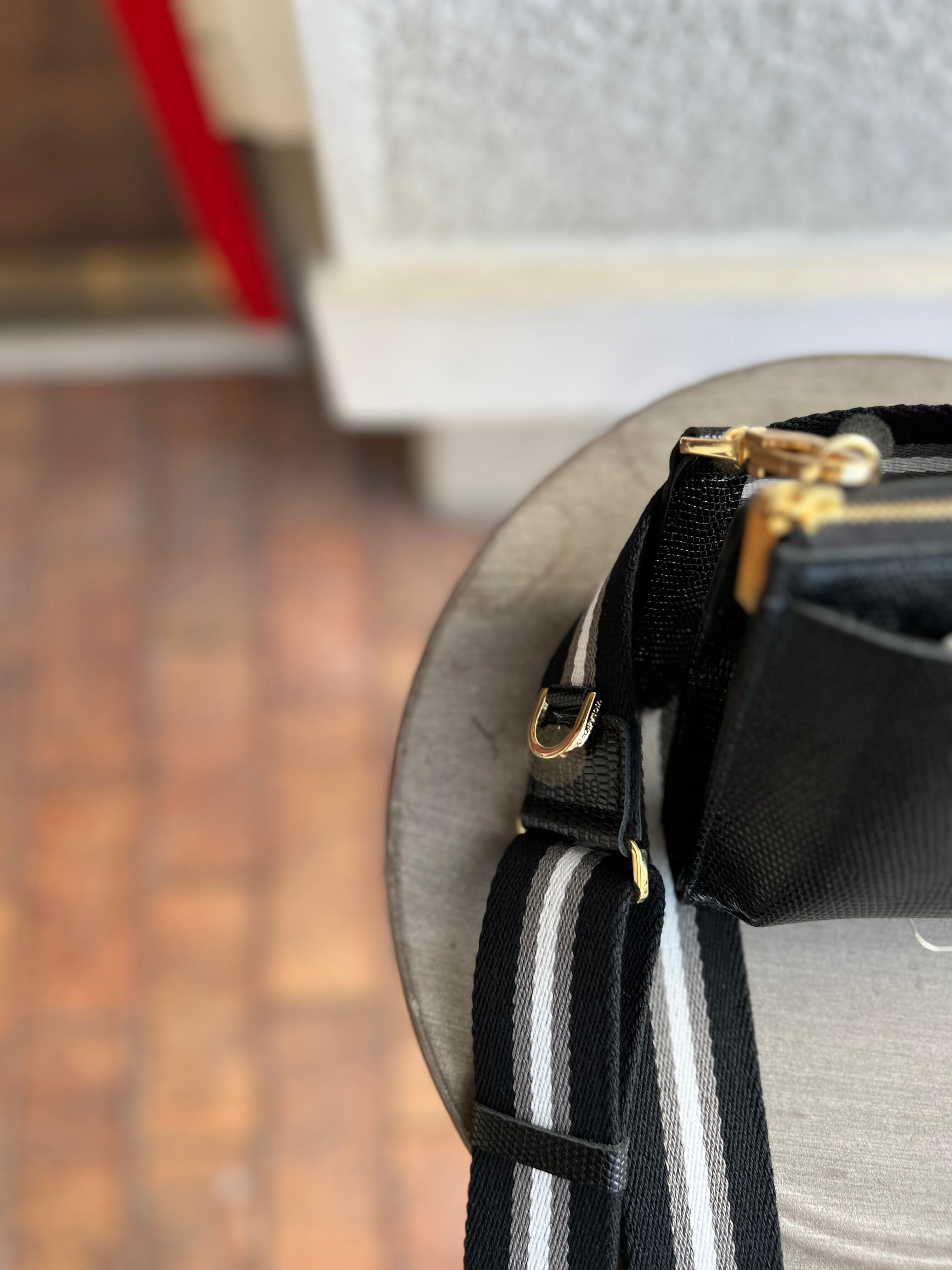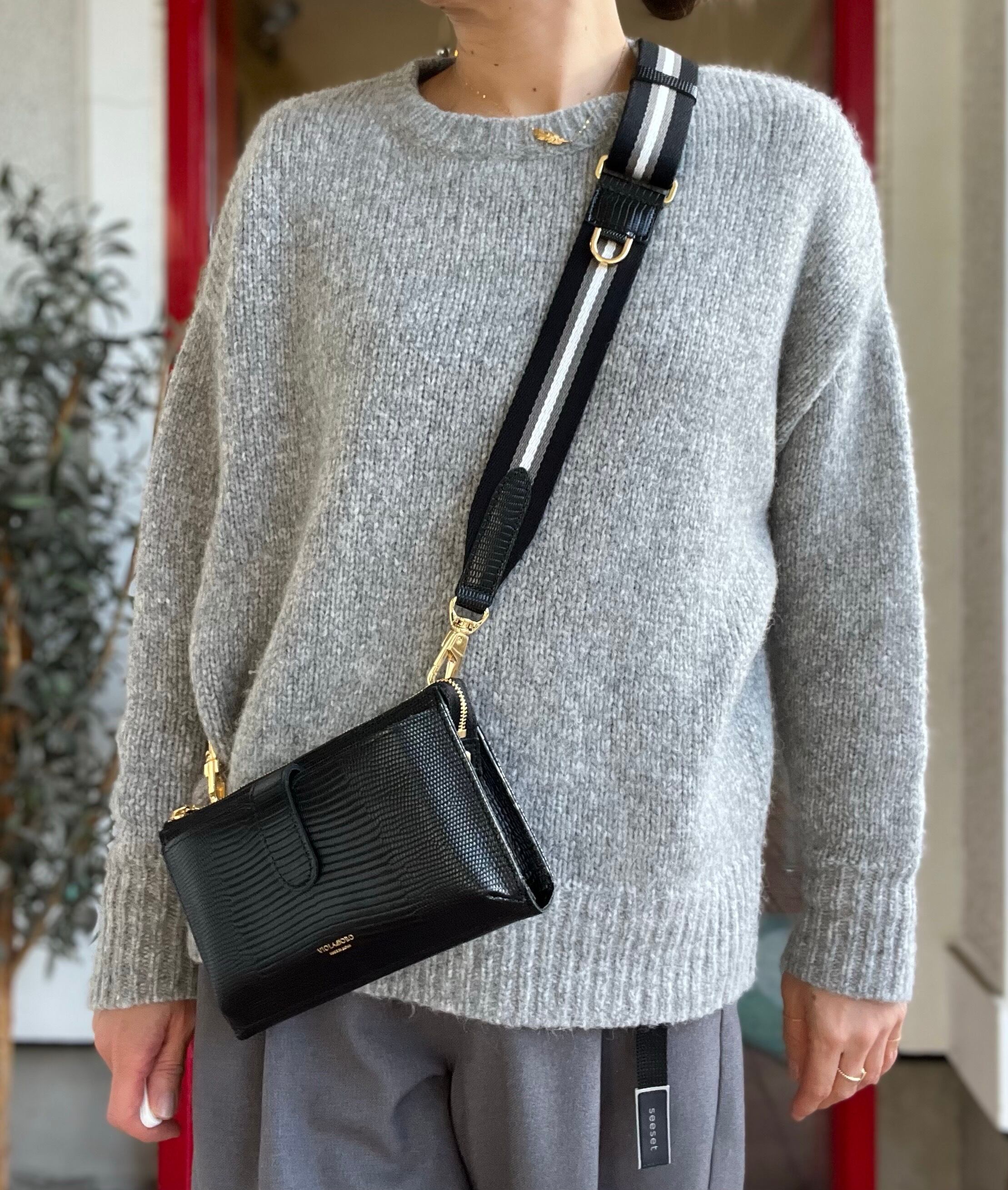 ショルダーにはアイビーテープを使用しており、別売のキーケースなどをつけられるデザインです