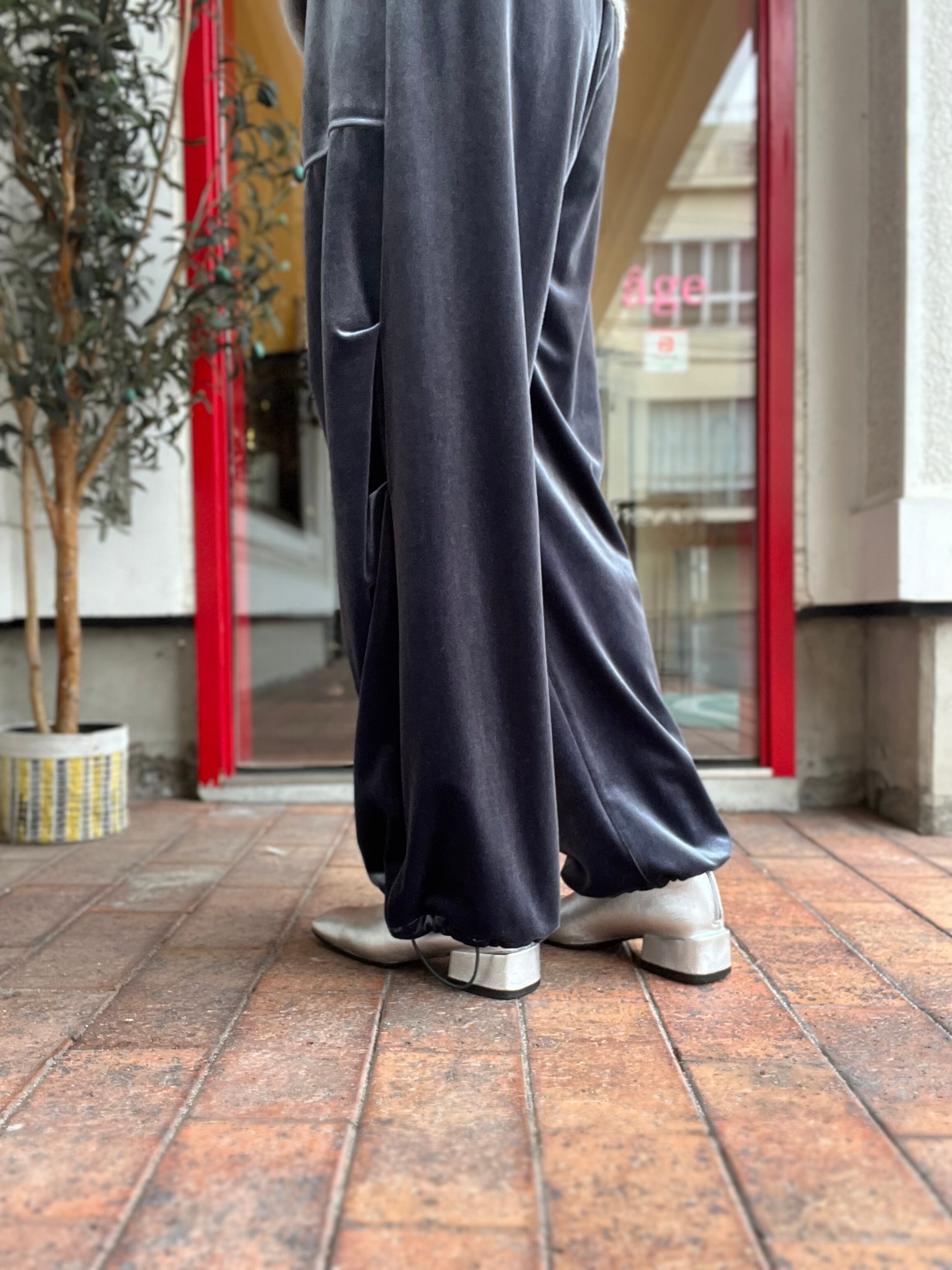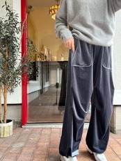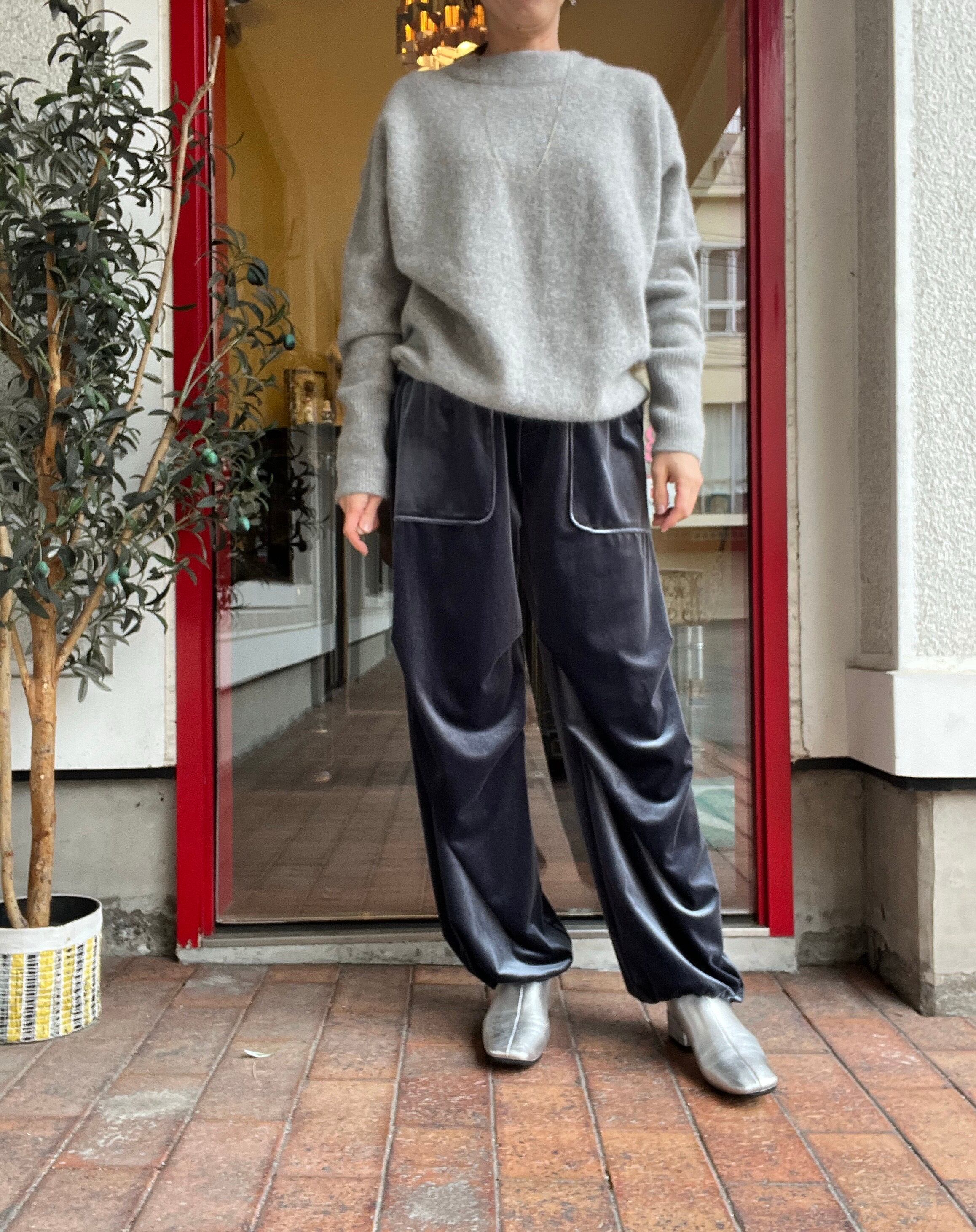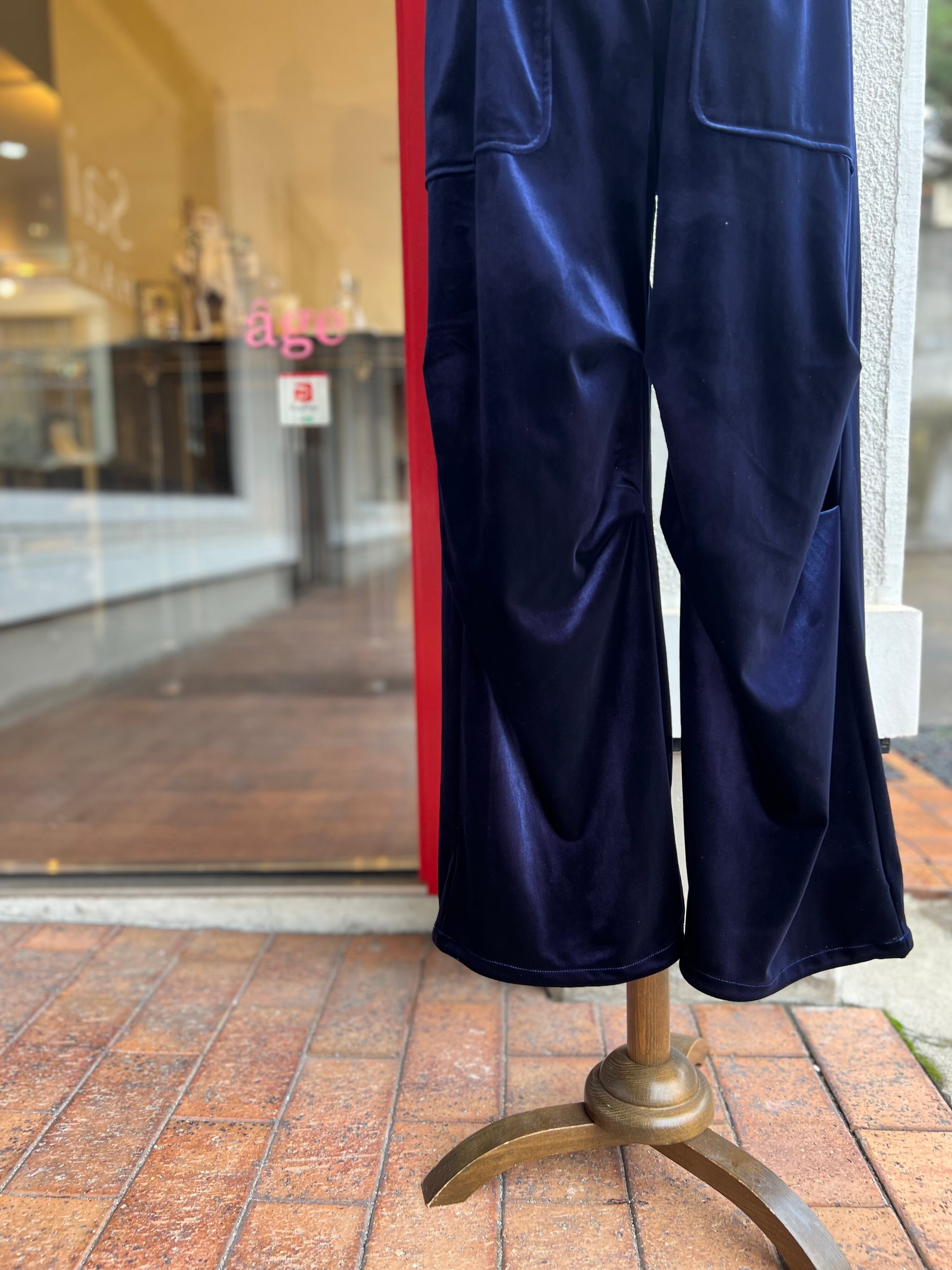 カジュアルなデザインの中に、光沢感のあるベロア素材が大人のカジュアルを引き上げます