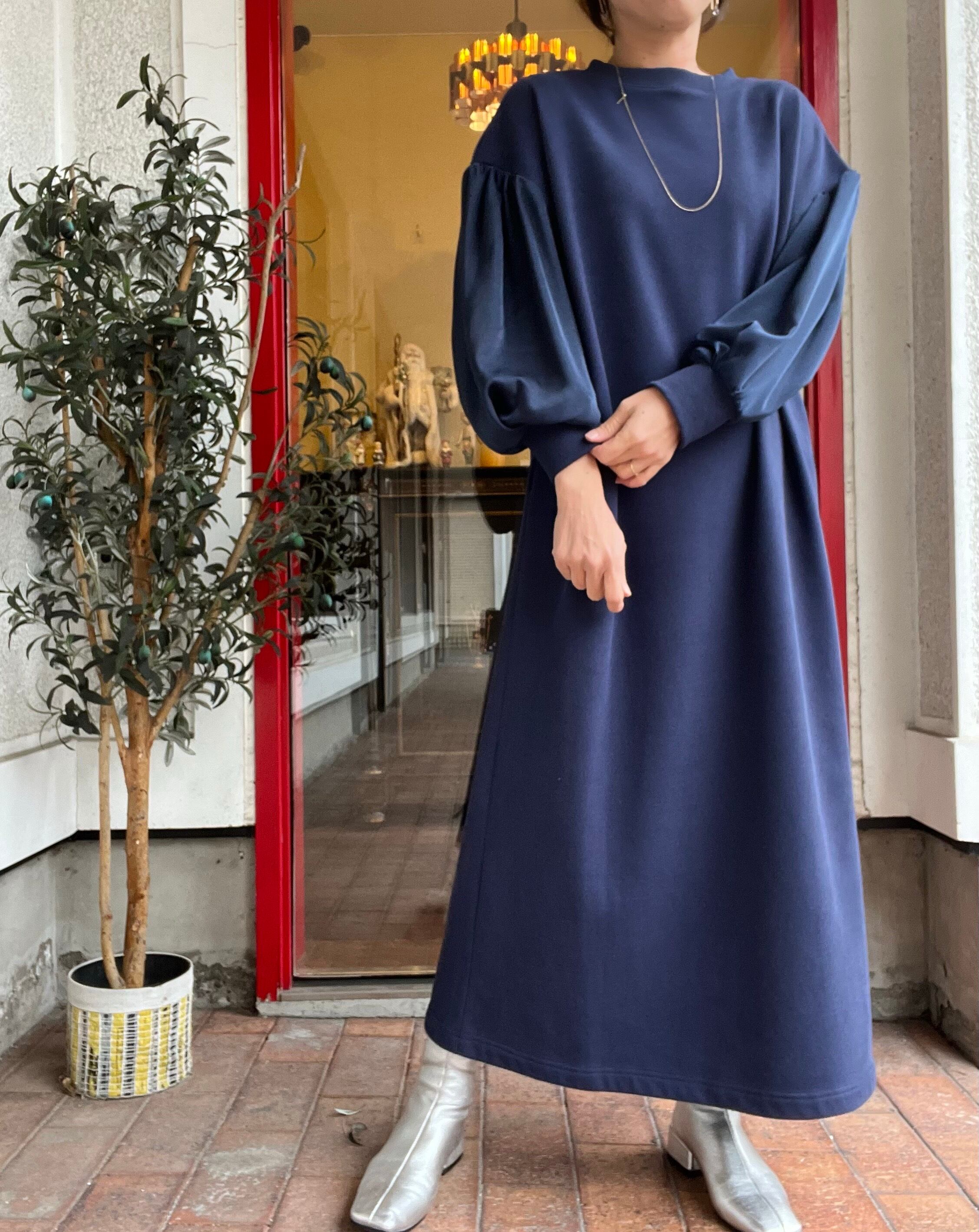 身頃のみ裏起毛のバルーンスリーブワンピース