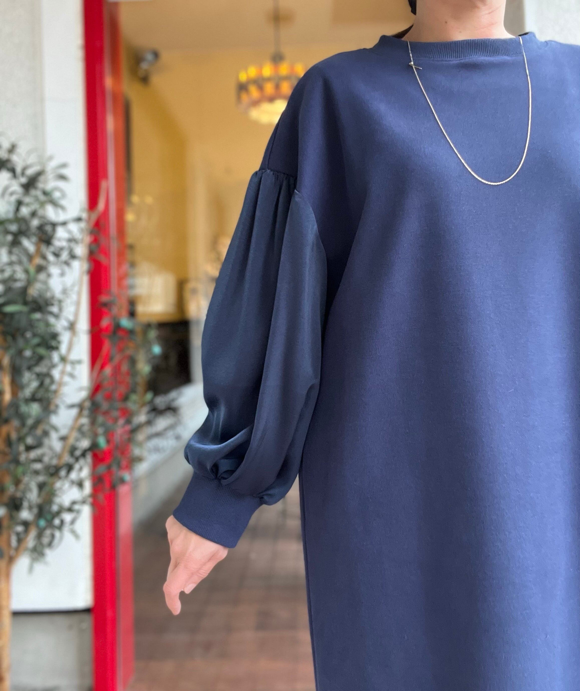 カットソー生地とシフォンスリーブのドッキングデザインは