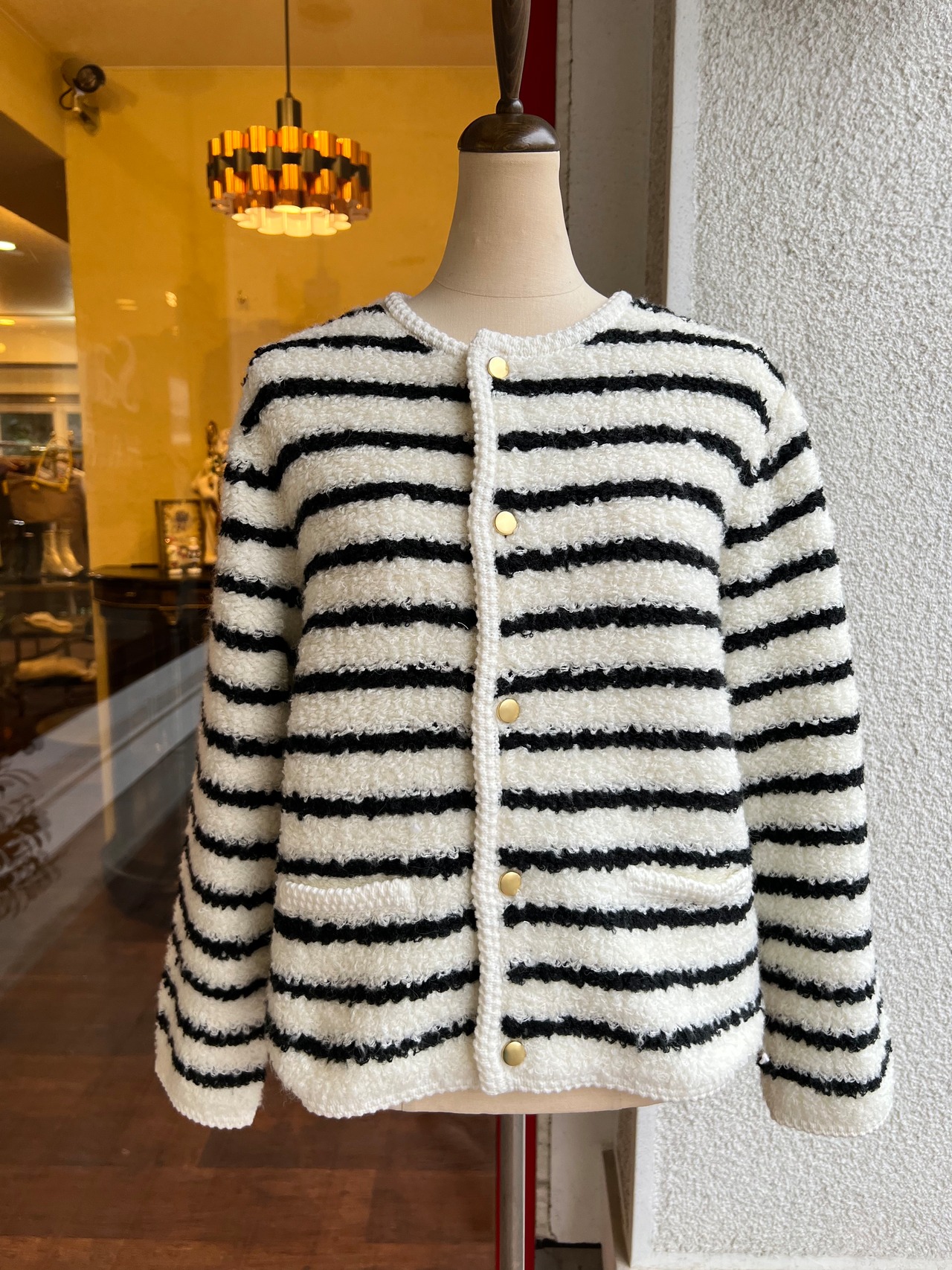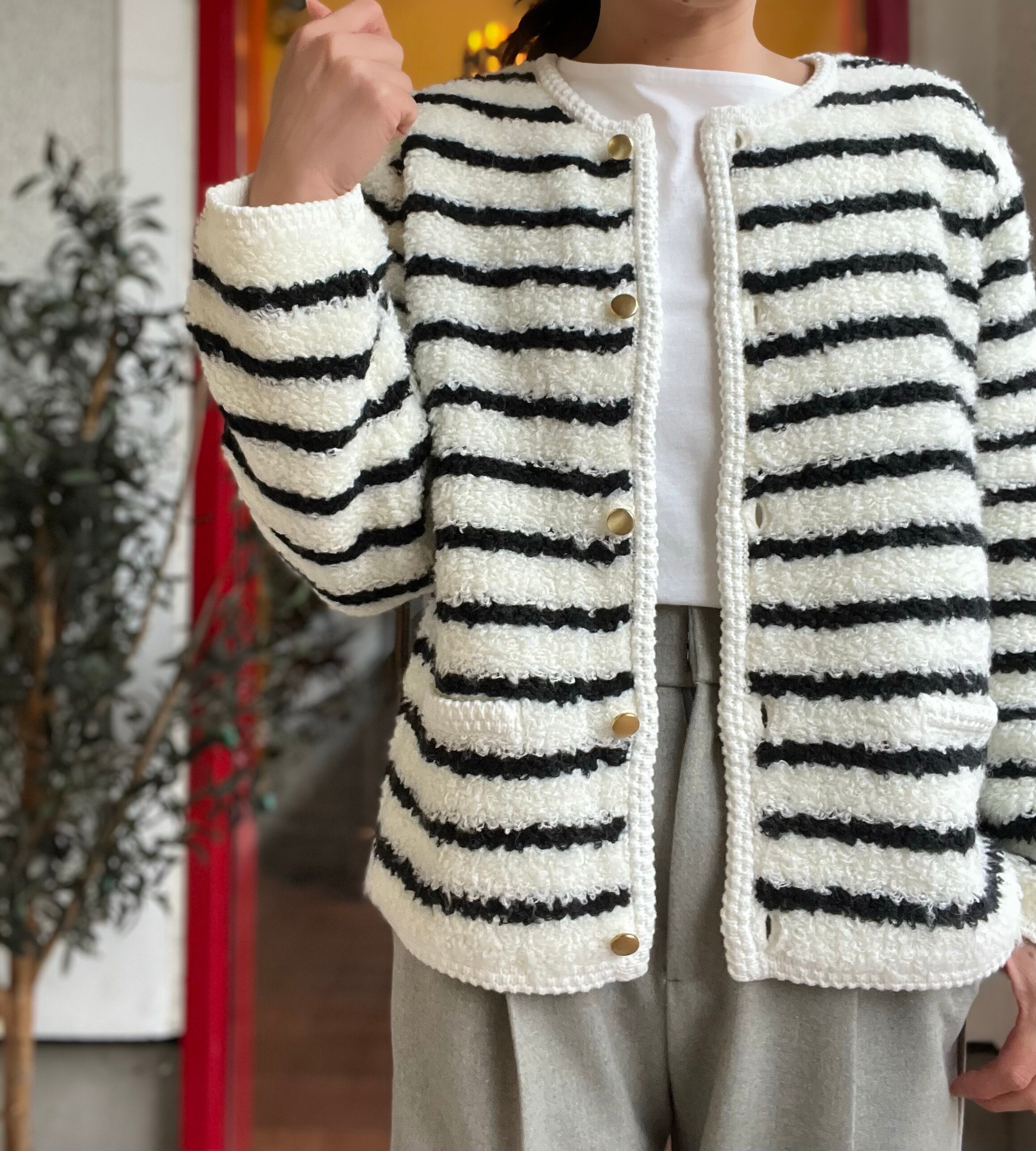 控えめな小さいゴールドボタンと縁取りがポイントになった