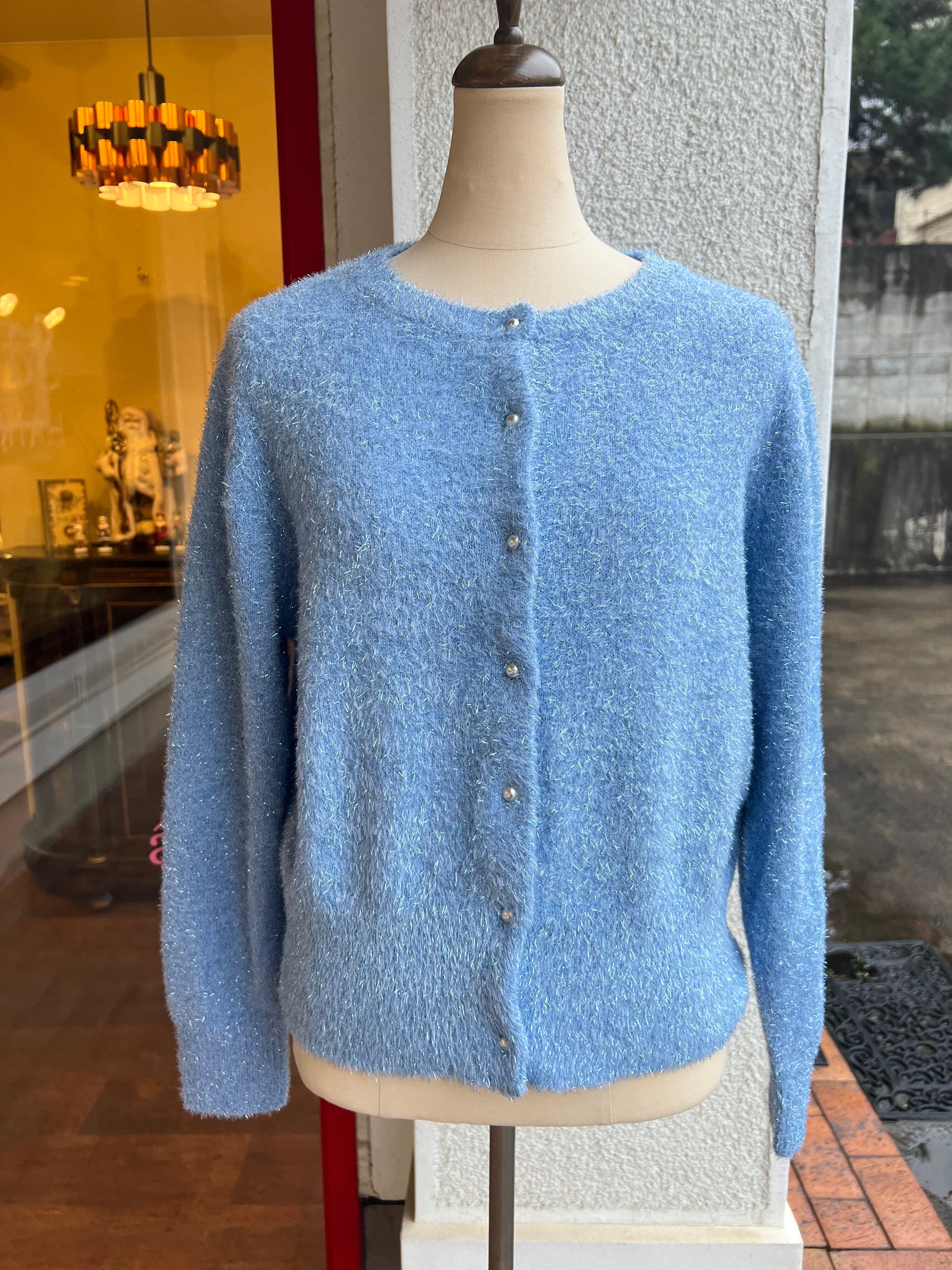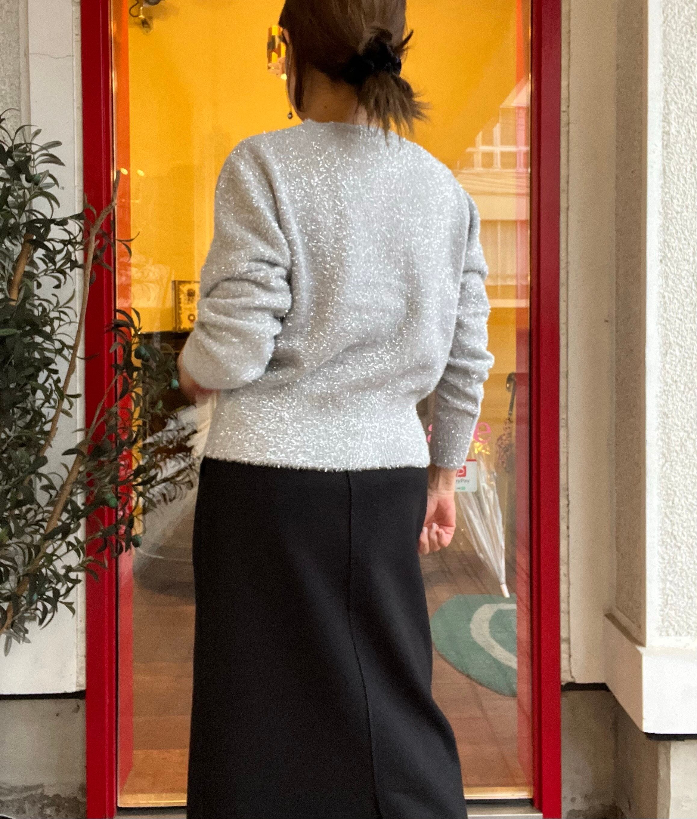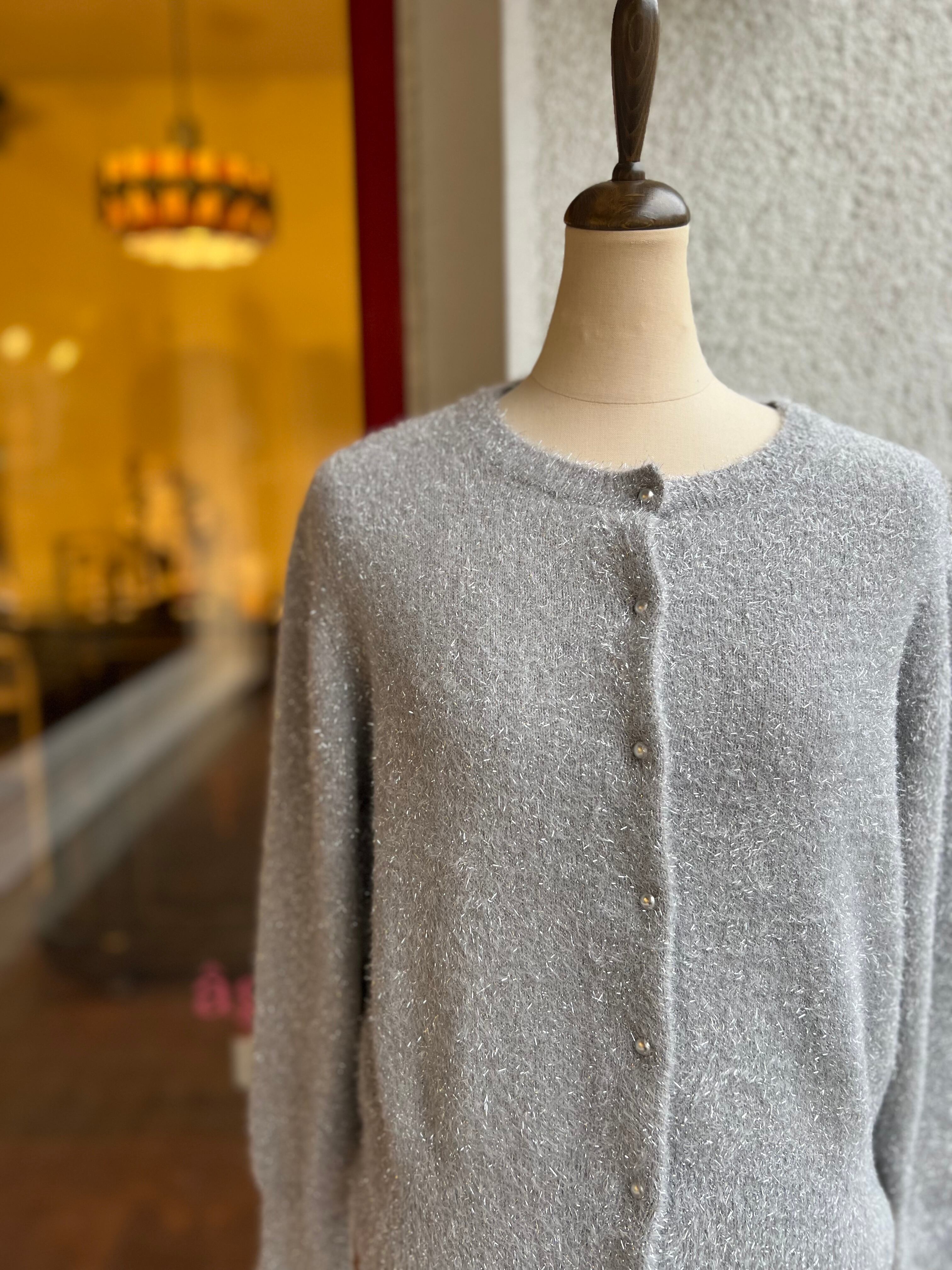 毛足のあるラメ糸が織り込まれた煌びやなカーディガン