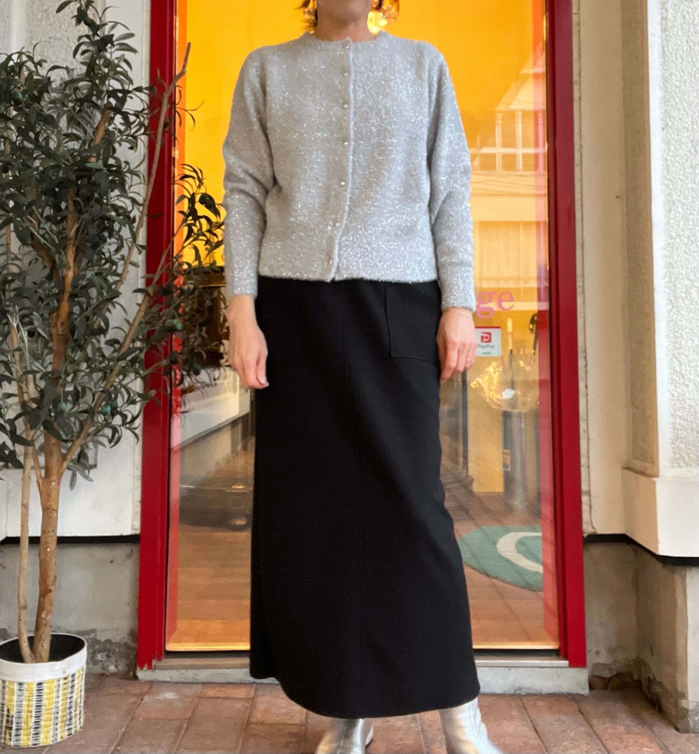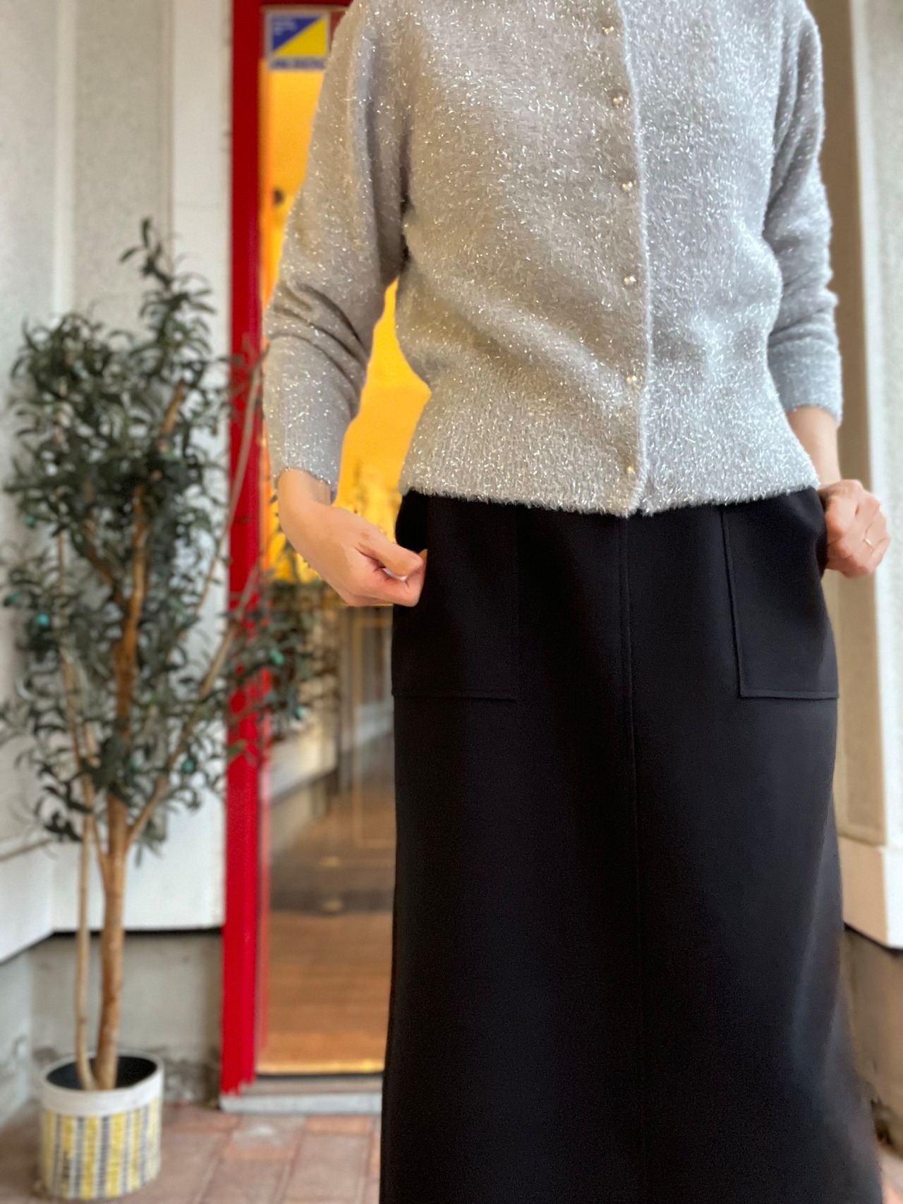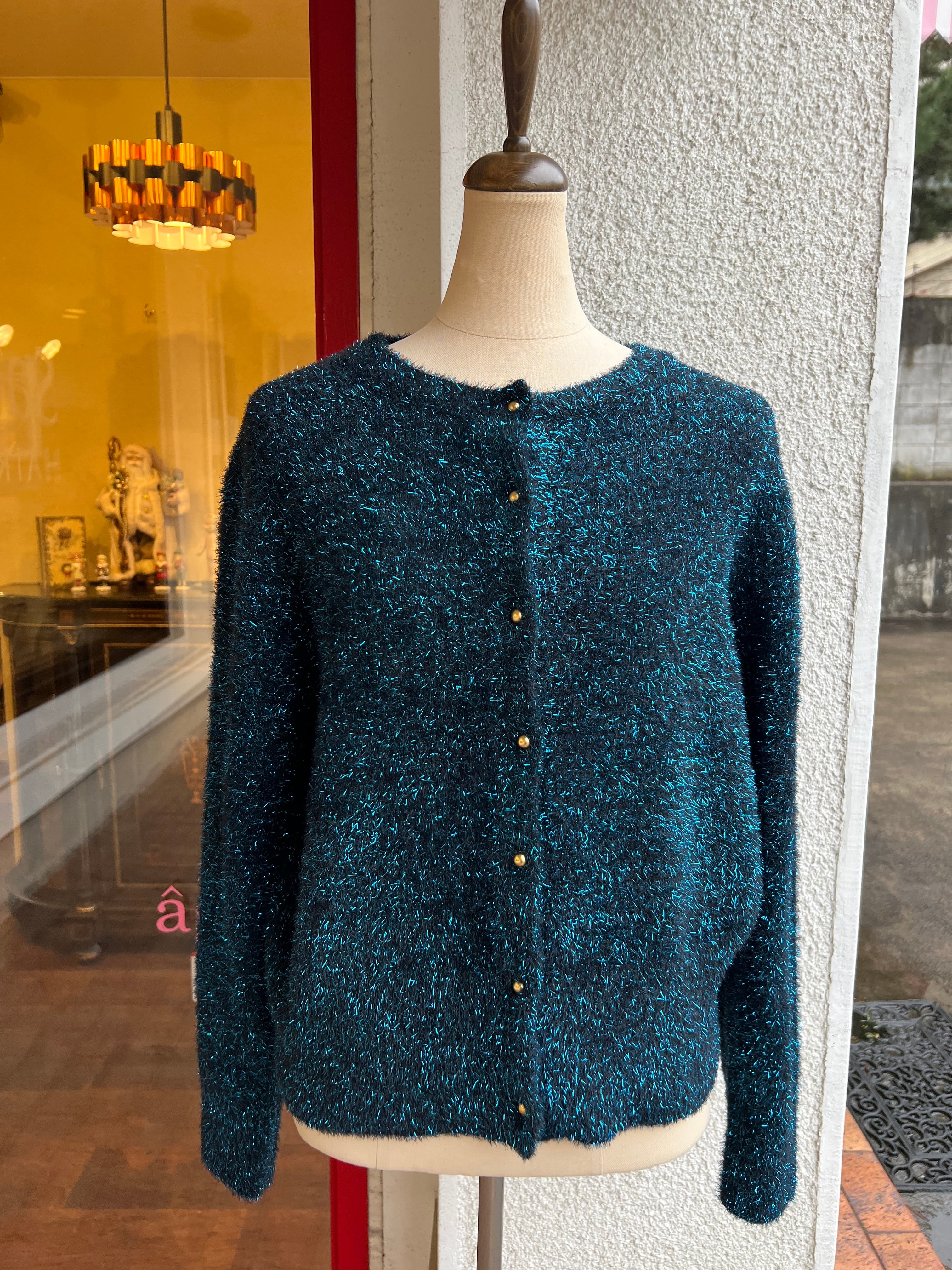 毛足のあるラメ糸が織り込まれた煌びやなカーディガン