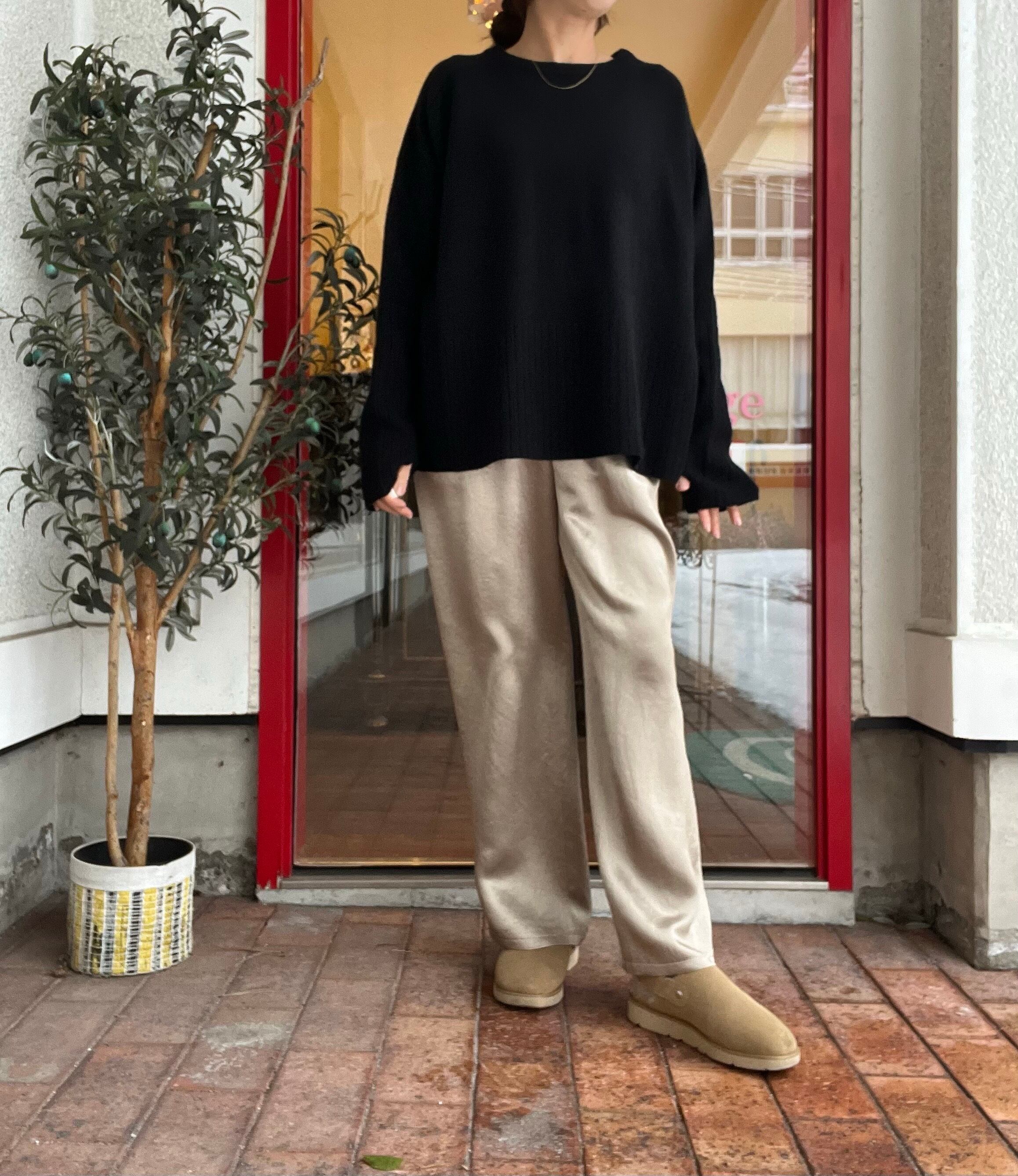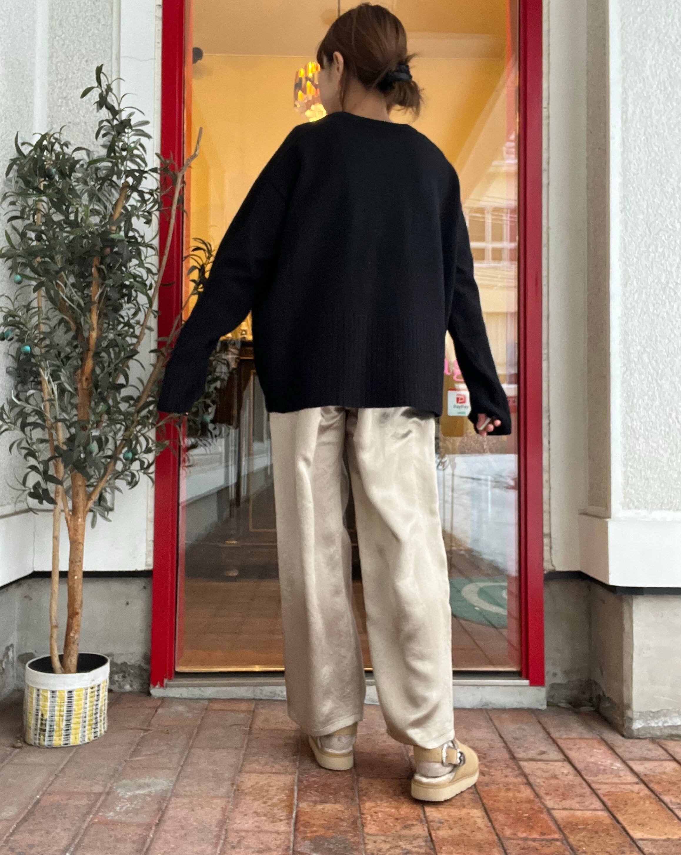 襟元はサイドに開きブラウスやTシャツとのレイヤードも楽しめます